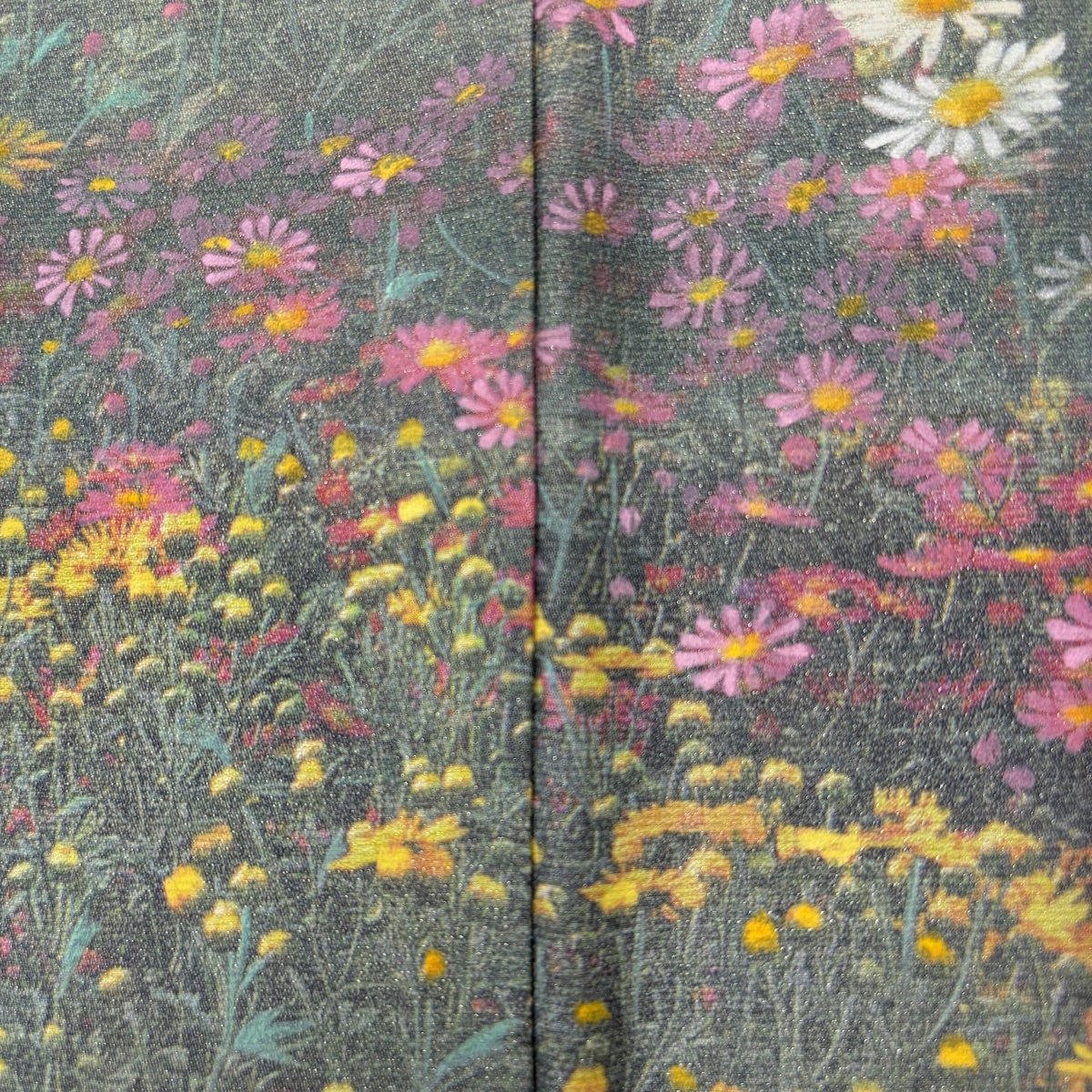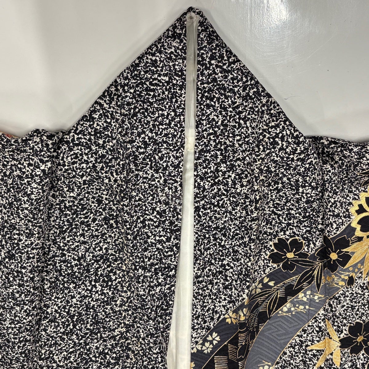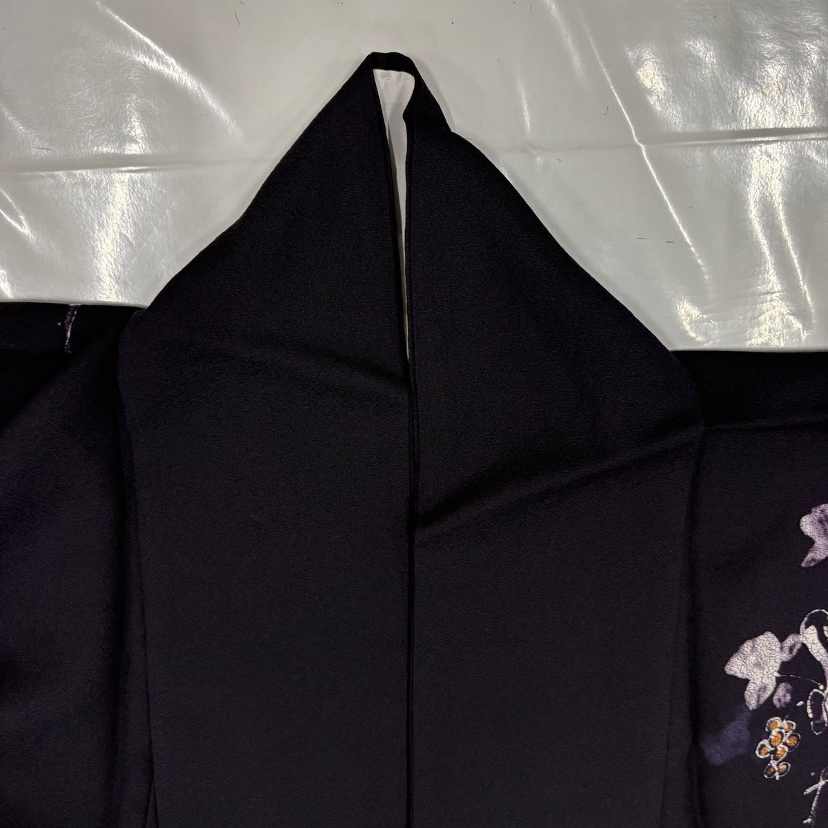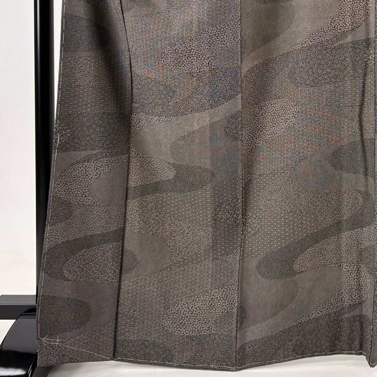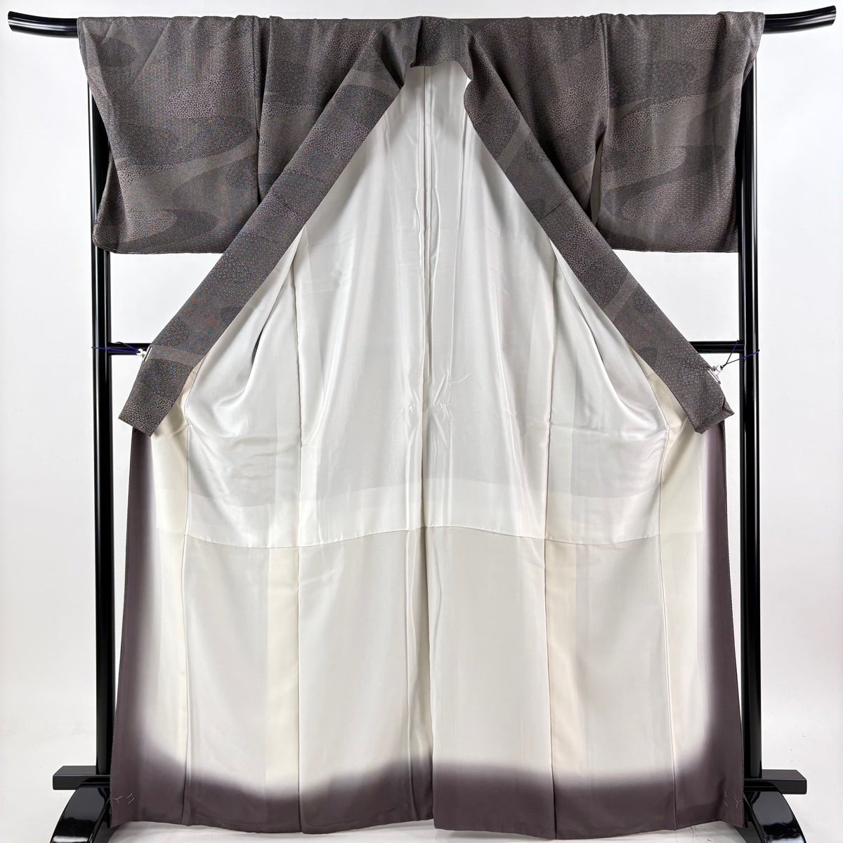 付下げ 身丈169.5cm 裄丈70.5cm L 袷 草花 地紋 刺繍 金糸 黒 正絹 秀品