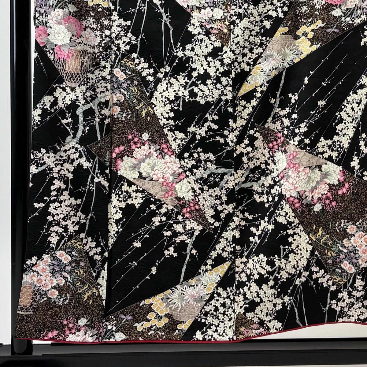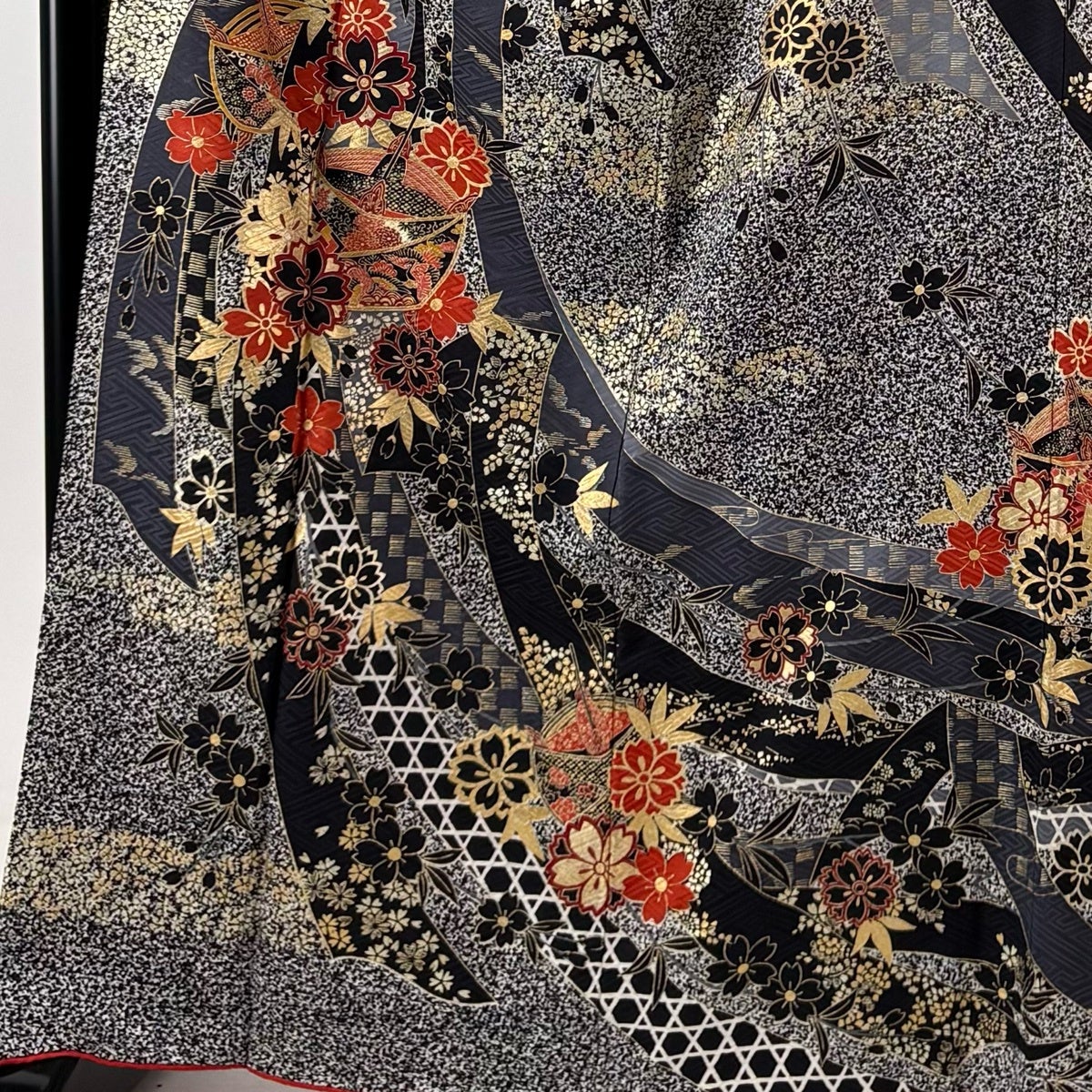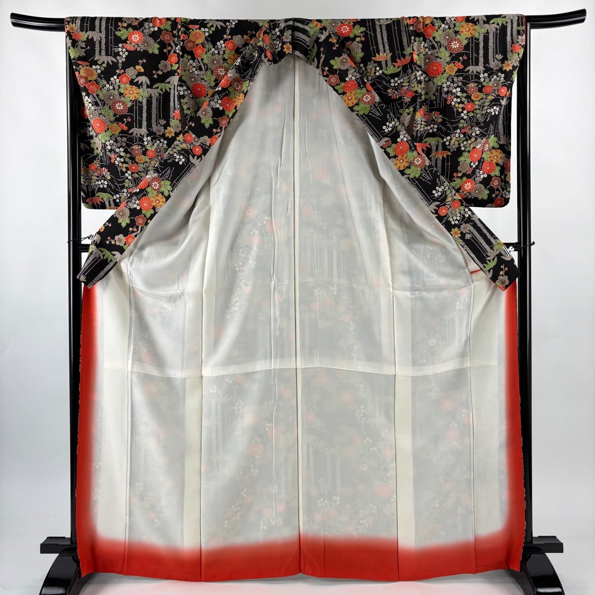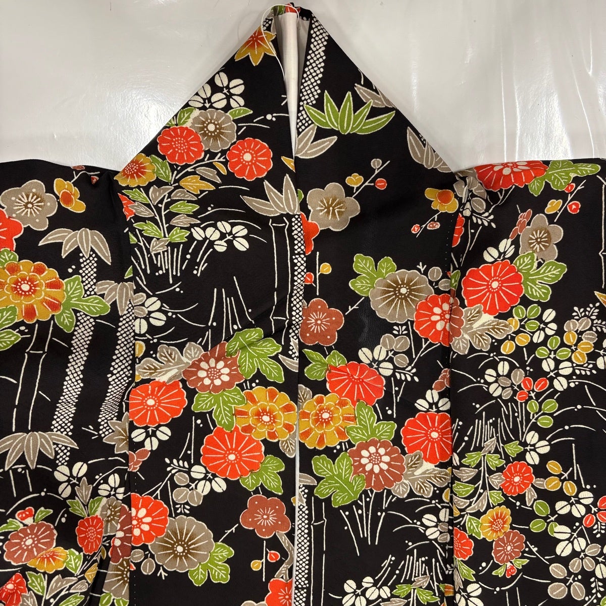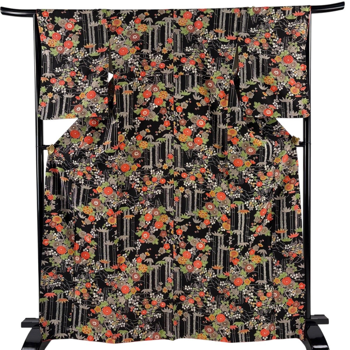 振袖 身丈162cm 裄丈65.5cm M 袷 御所車 草花 金彩 絞り 黒 正絹 名品
