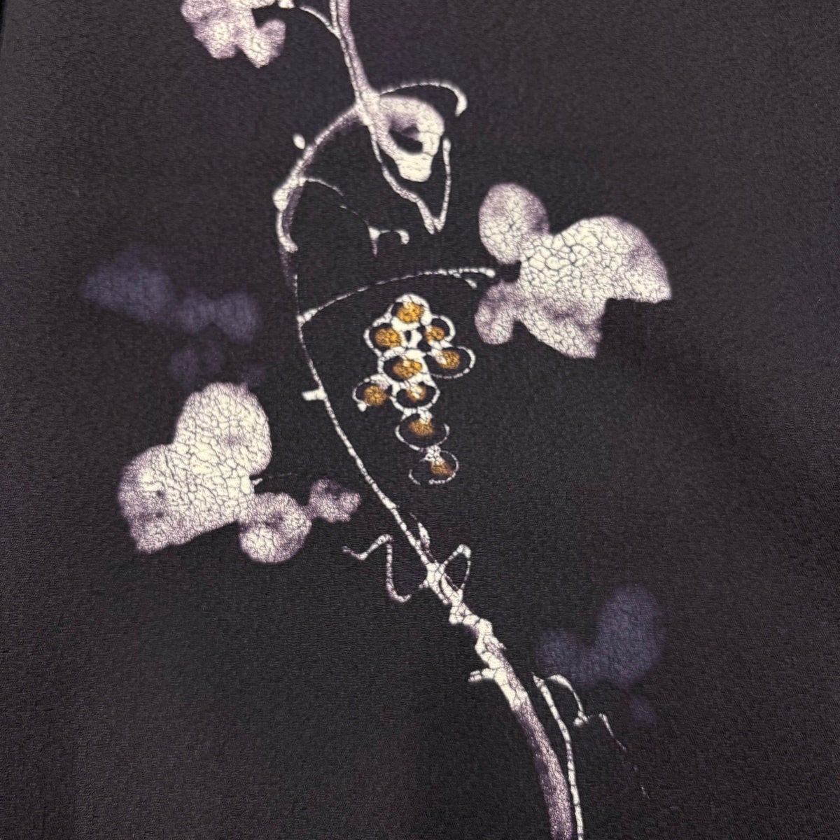 訪問着 身丈160cm 裄丈68cm L 袷 更紗 金彩 絞り 黒 正絹 秀品