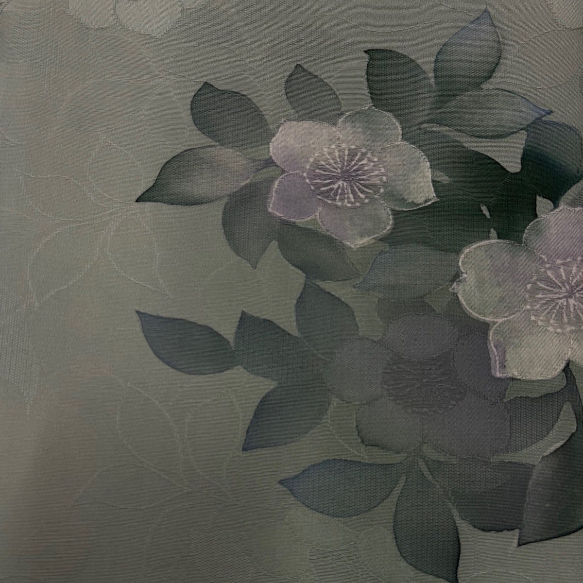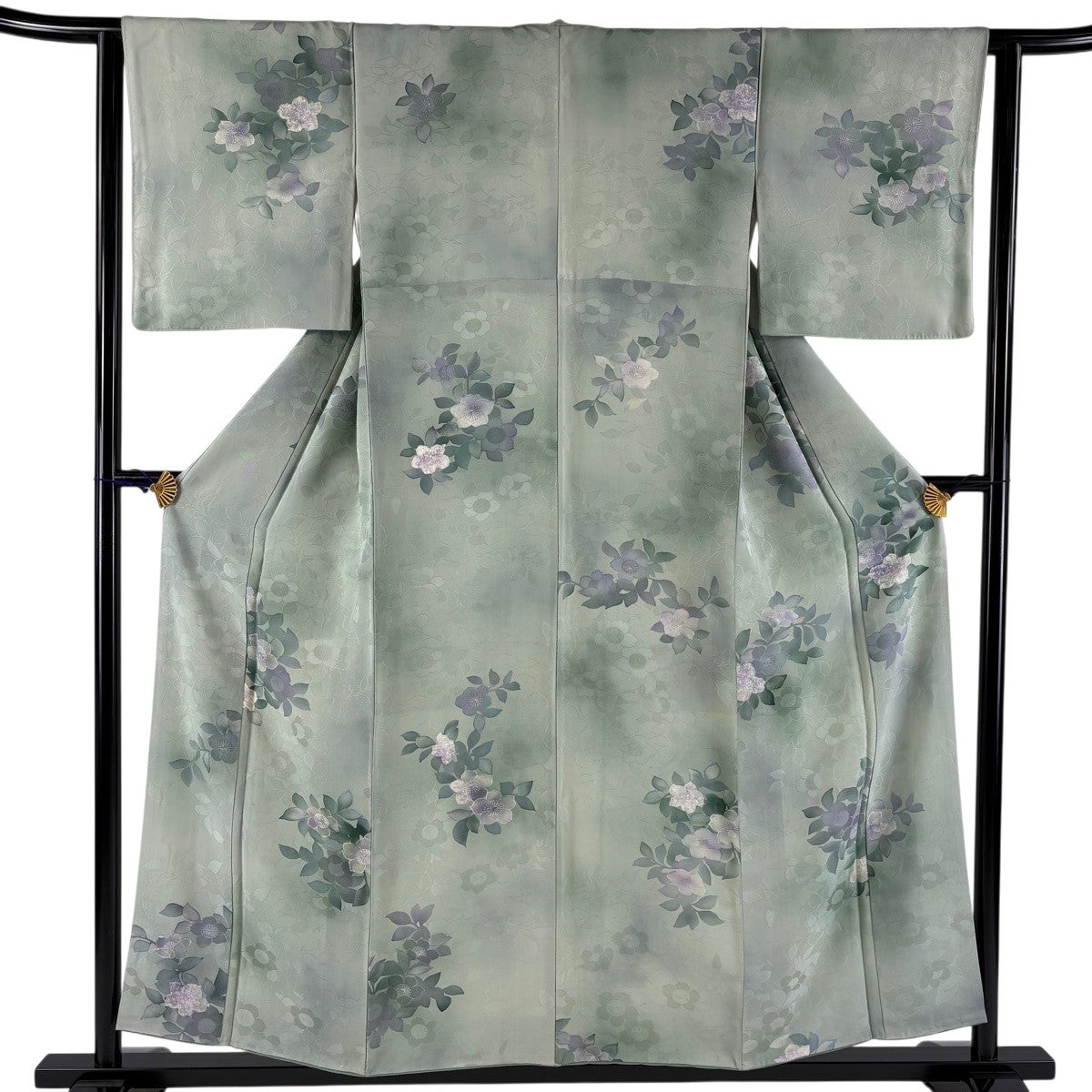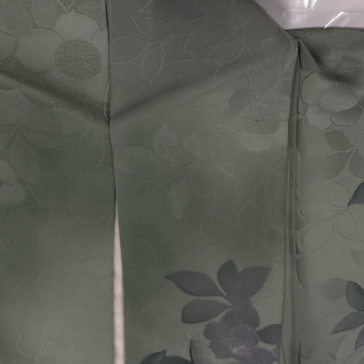 【美品】 訪問着 身丈173.5cm 裄丈71cm L 袷 草花 地紋 金彩 裾ぼかし 薄緑 正絹 秀品