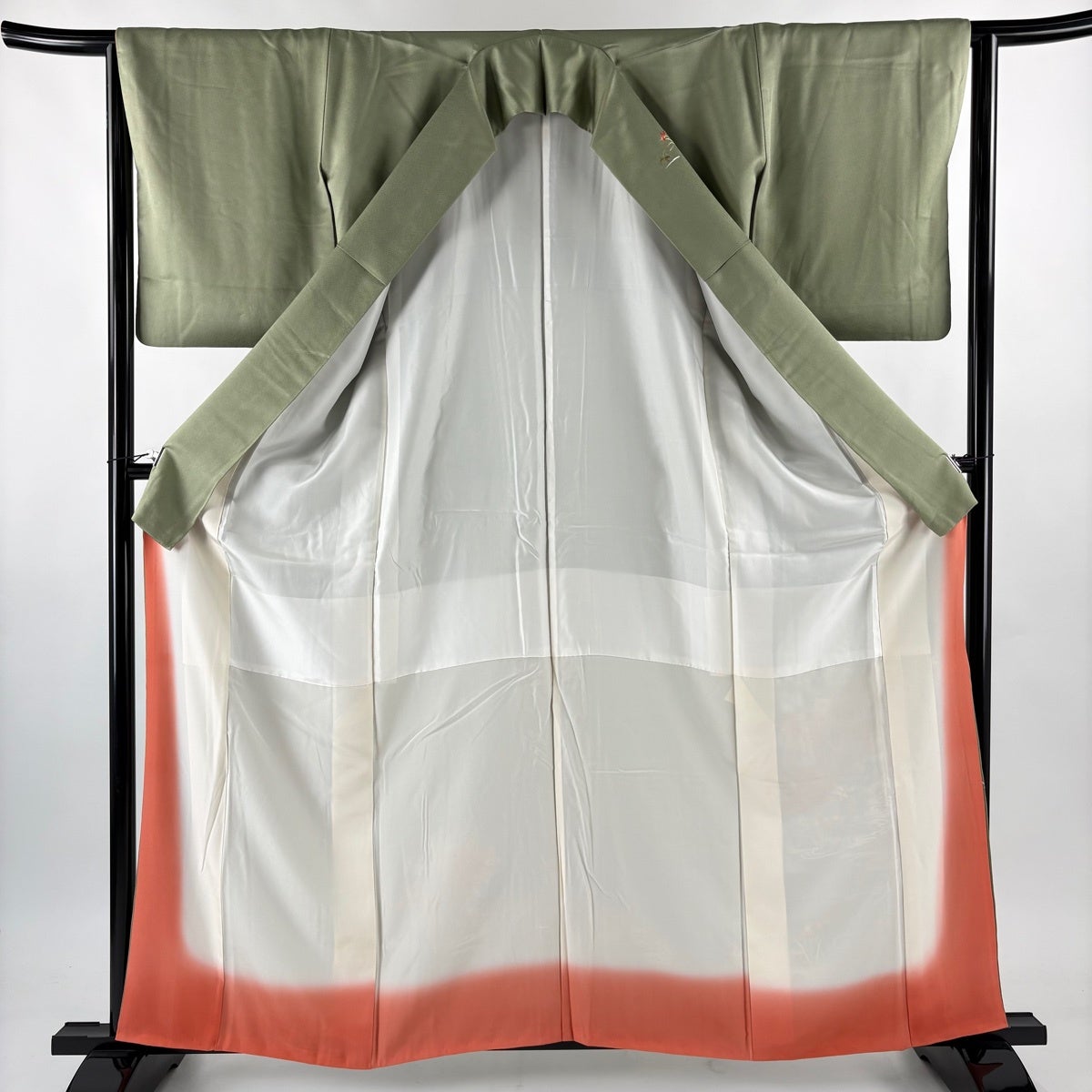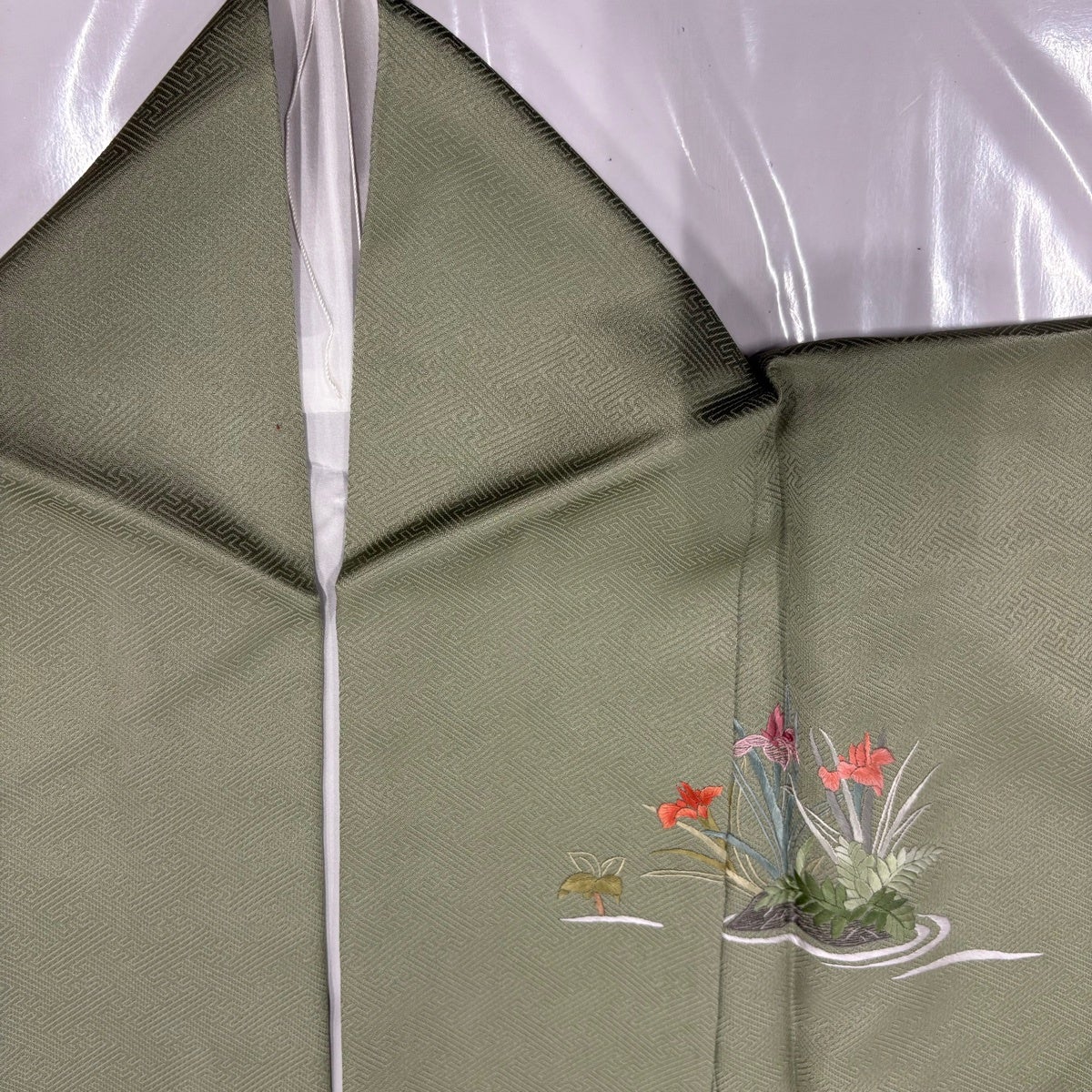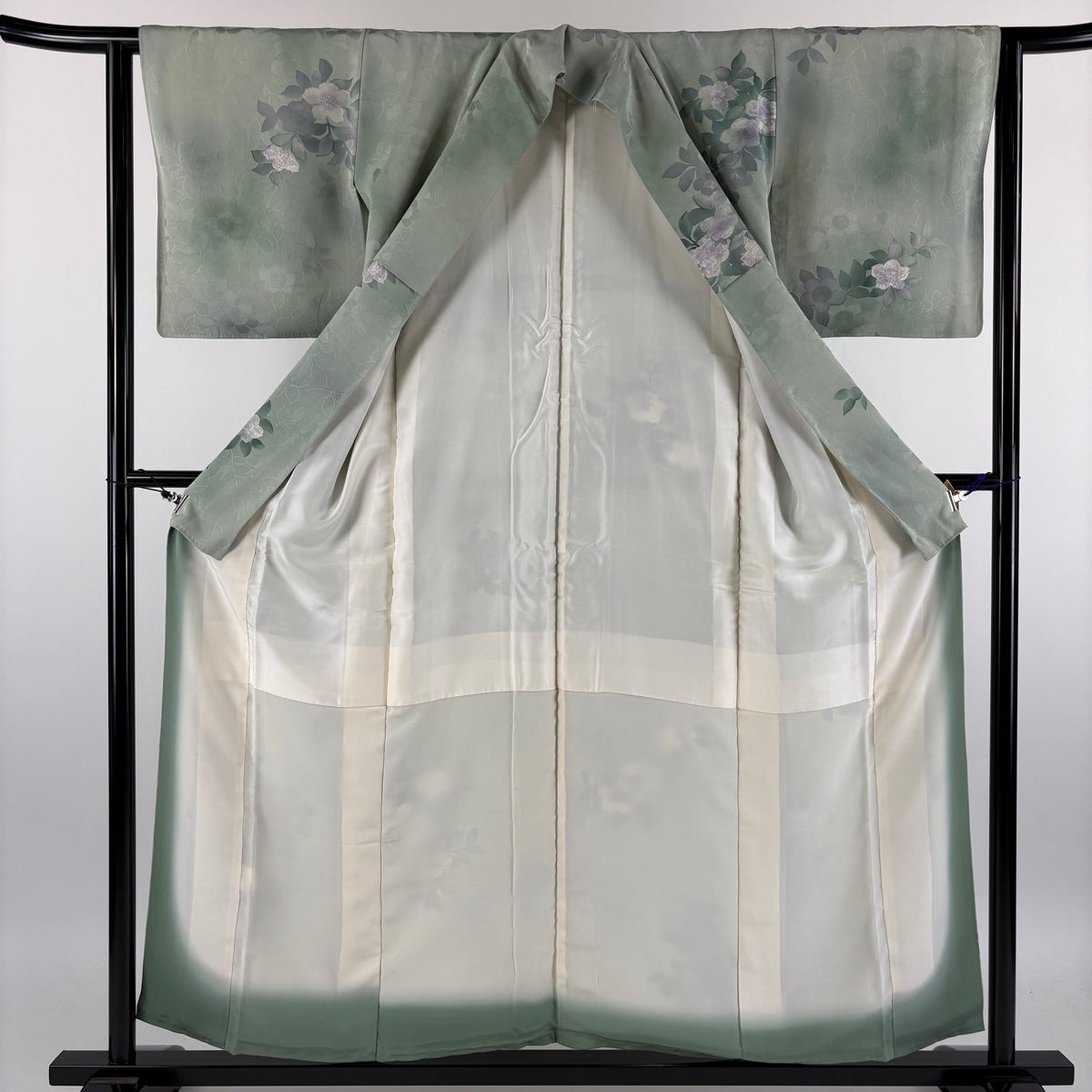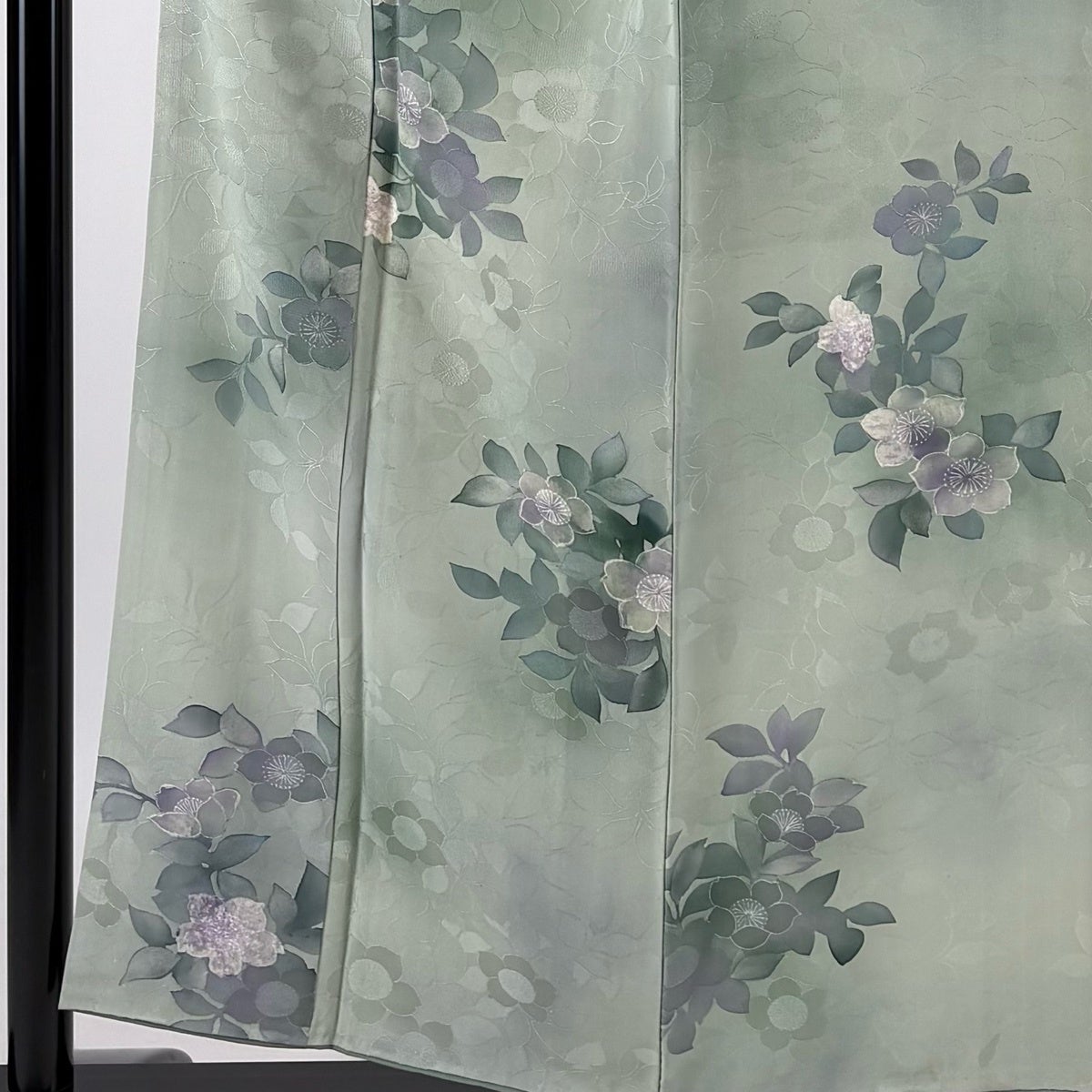 【美品】 訪問着 身丈173.5cm 裄丈71cm L 袷 草花 地紋 金彩 裾ぼかし 薄緑 正絹 秀品