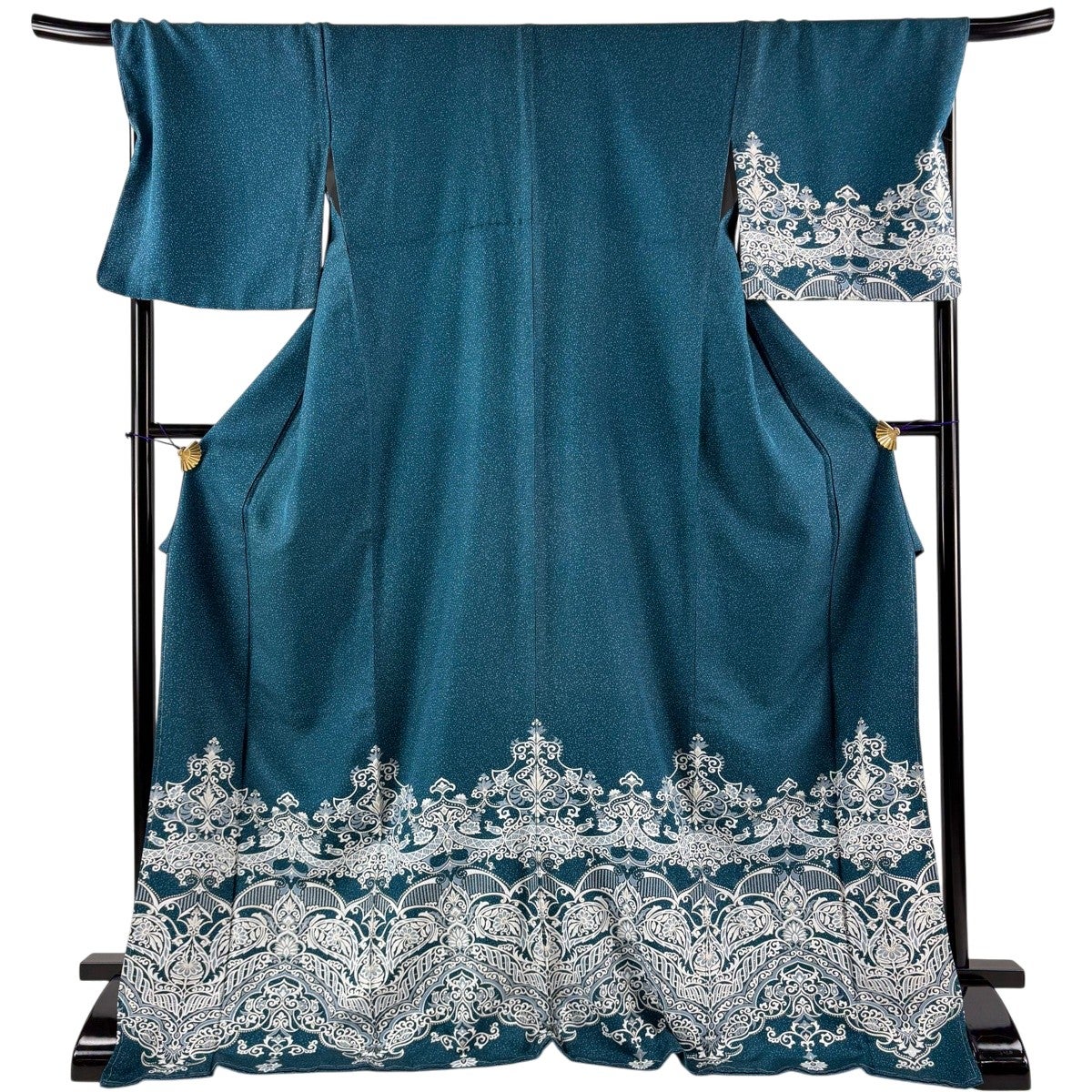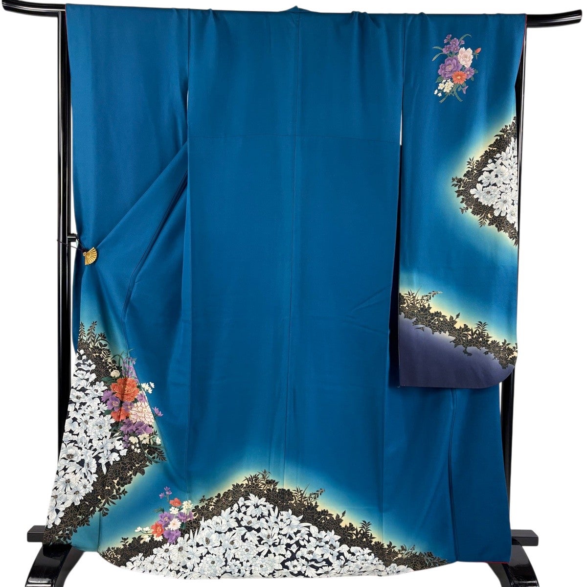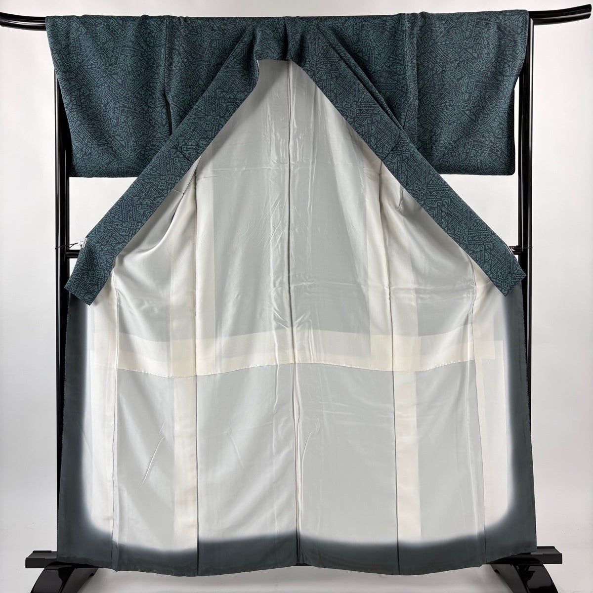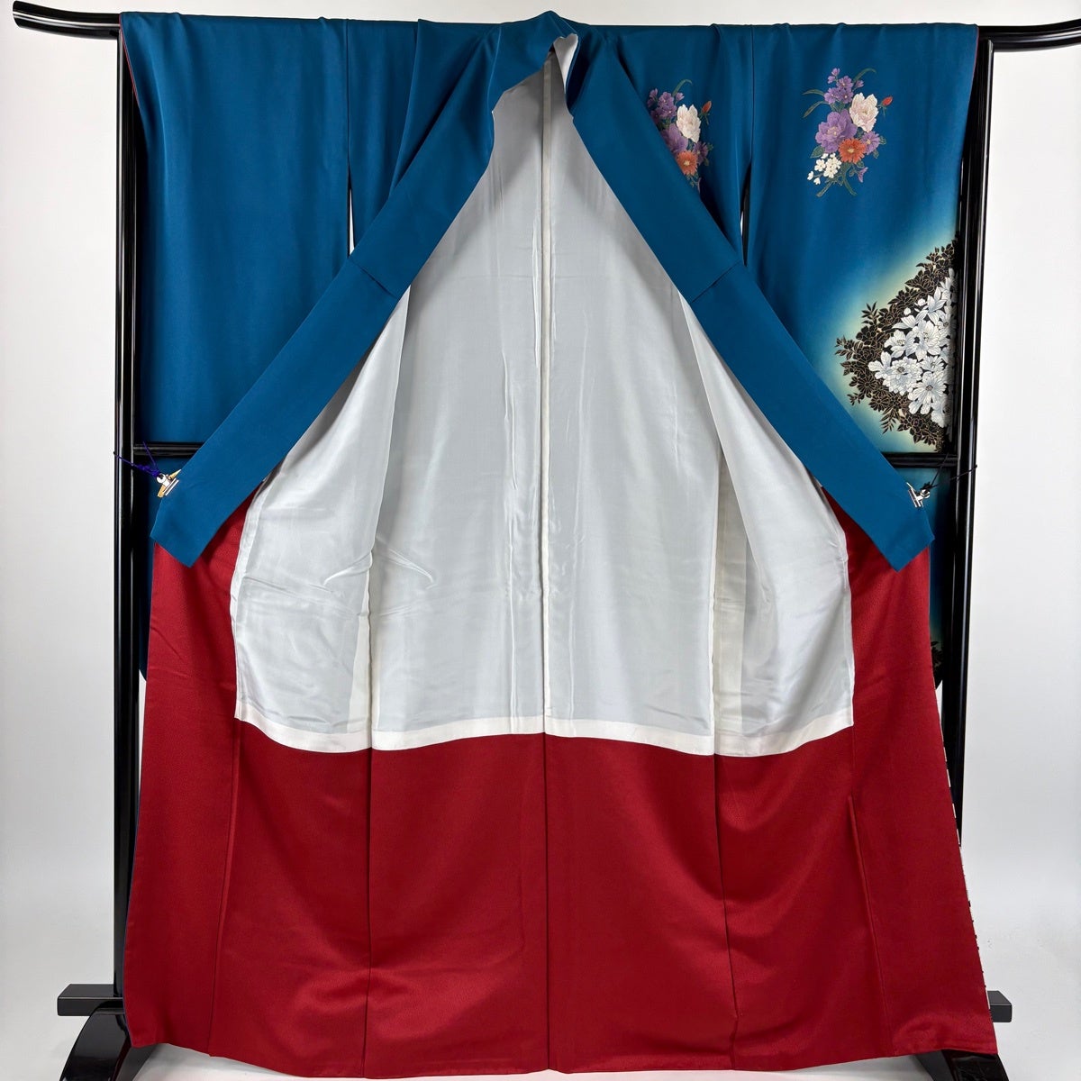 【美品】 振袖 身丈168cm 裄丈66.5cm M 袷 乱菊 銀通し ぼかし 青緑 正絹 名品