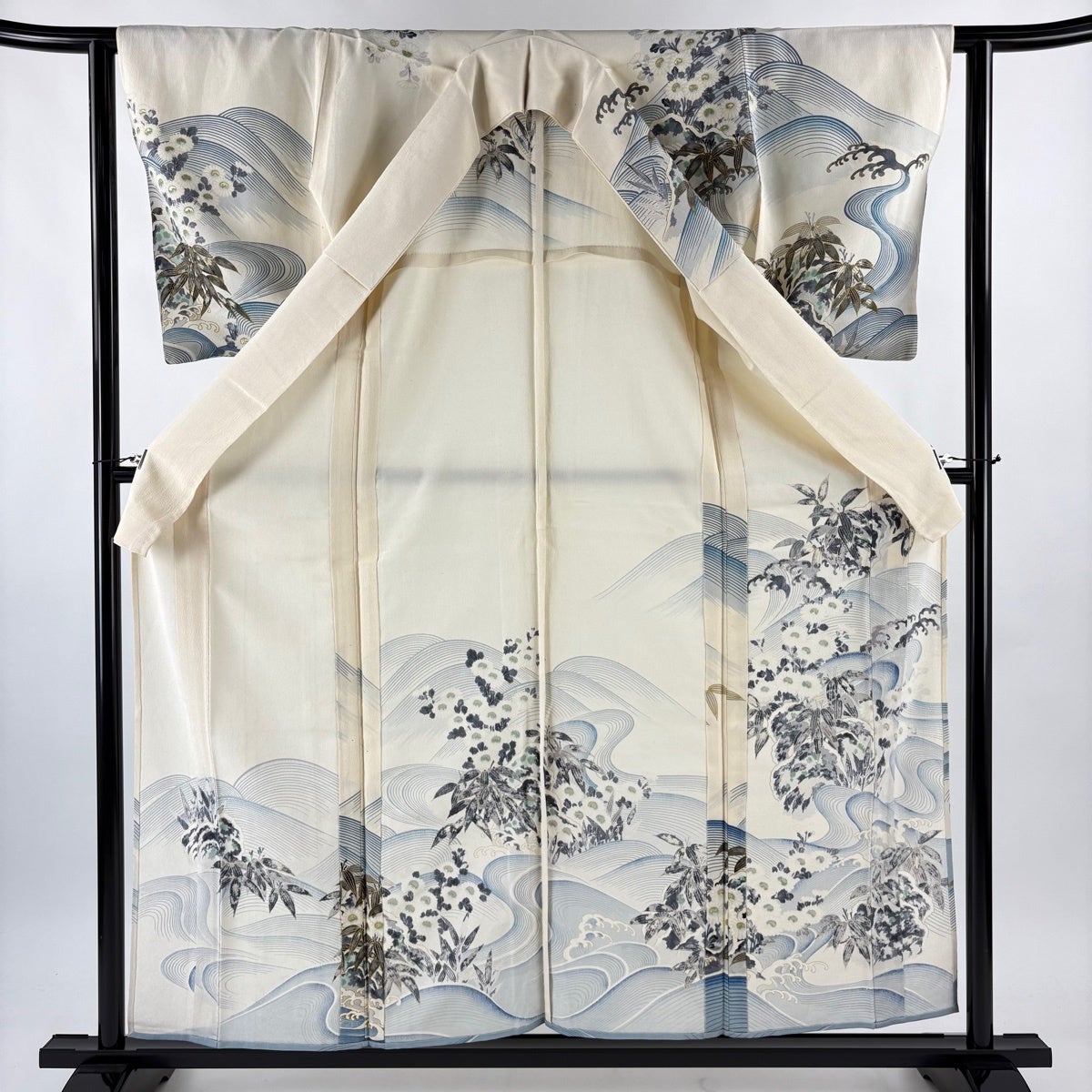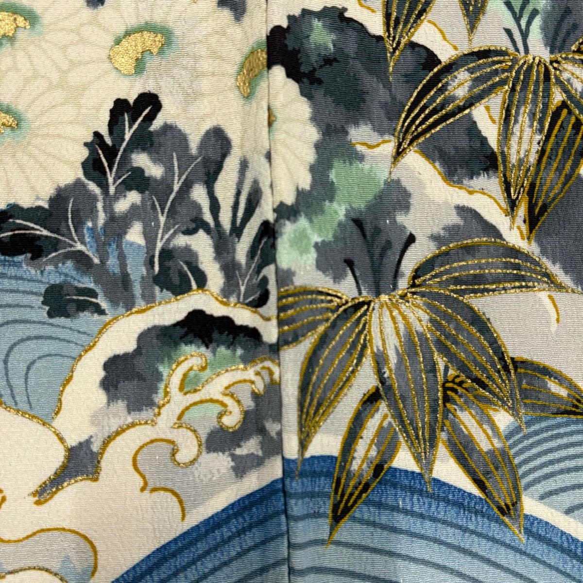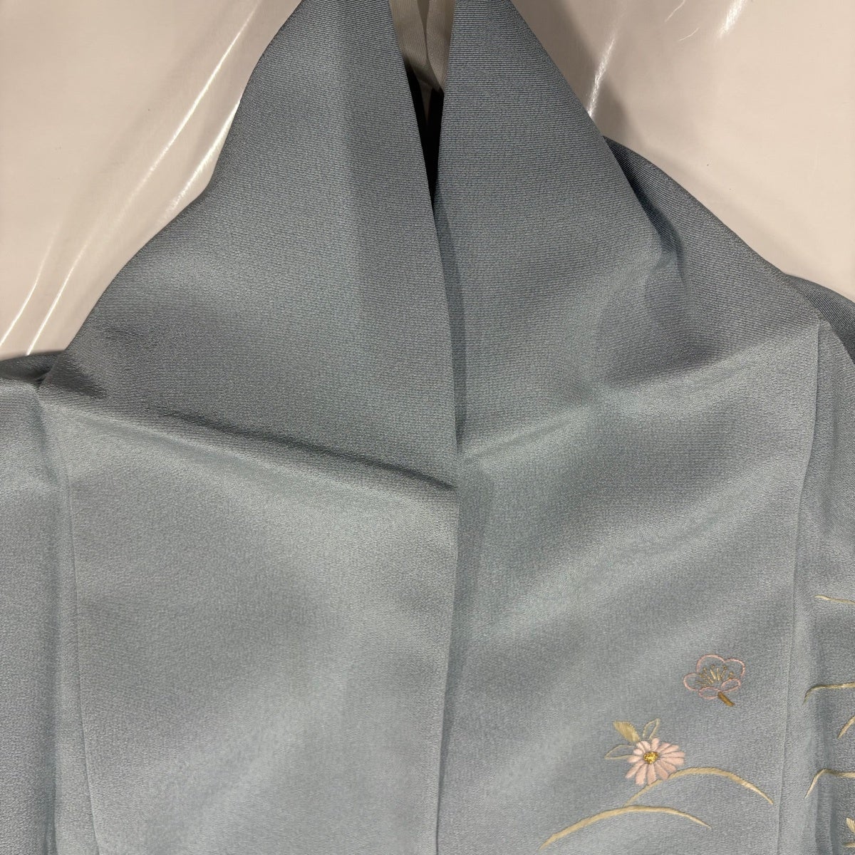 訪問着 身丈164cm 裄丈66cm M 袷 草花 動物 刺繍 金糸 青灰色 正絹 秀品