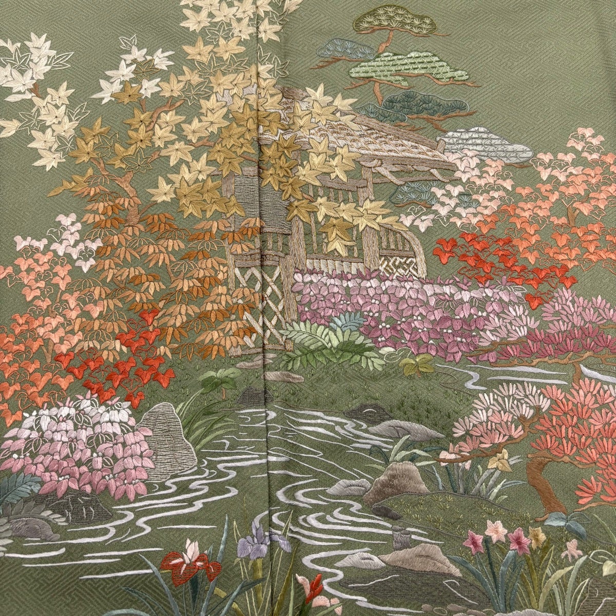 付下げ 身丈168.5cm 裄丈69cm L 袷 桜 楓 刺繍 箔 赤茶 正絹 秀品