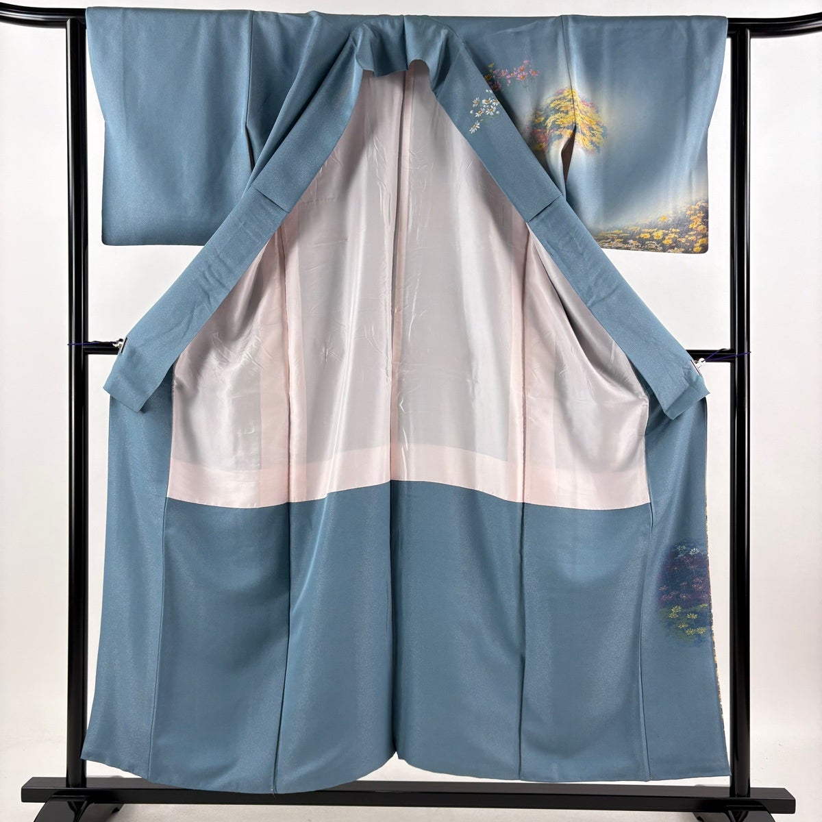 付下げ 身丈166cm 裄丈69cm L 袷 落款あり 草花 水色 正絹 秀品