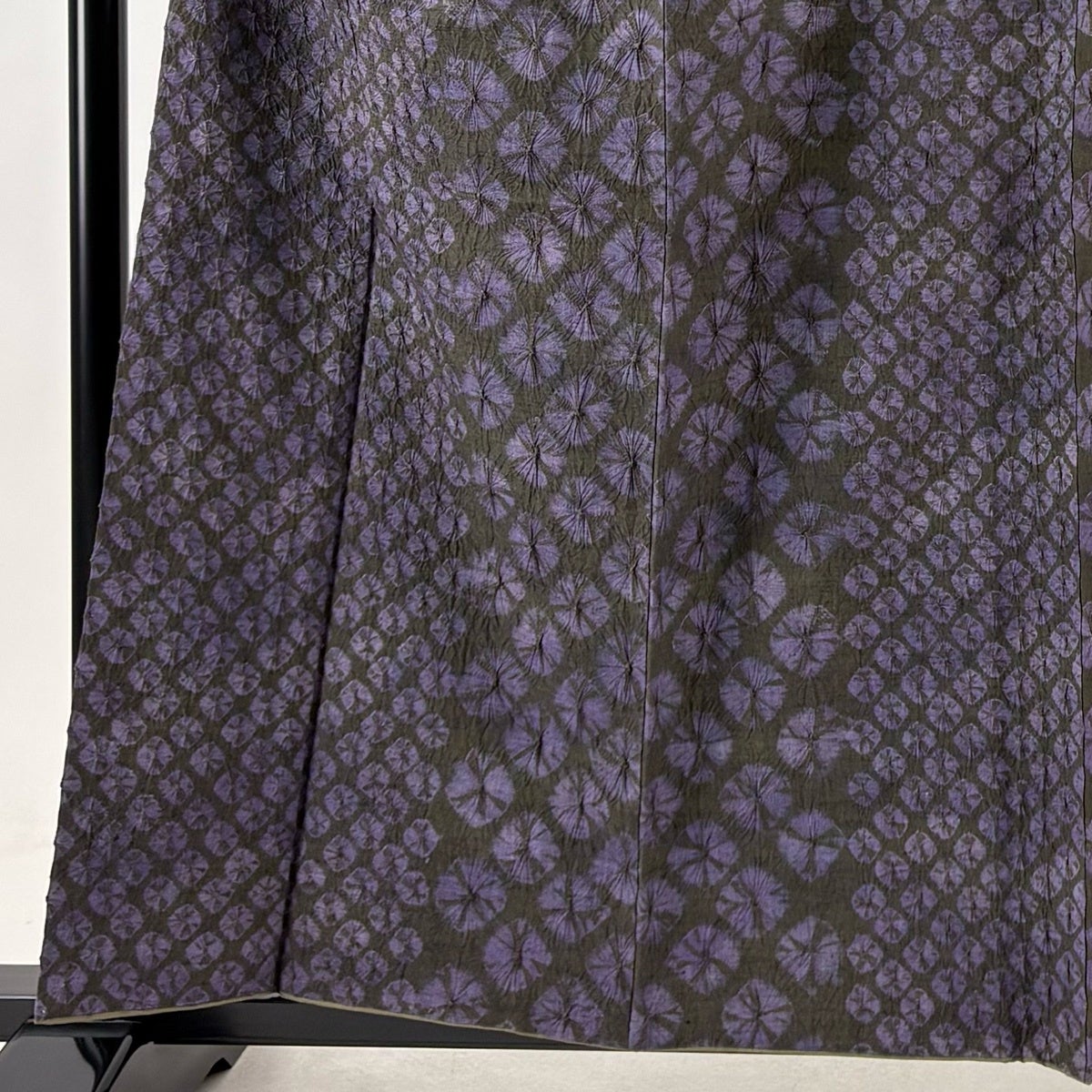 【美品】 浴衣 身丈160cm 裄丈62cm S 絞り浴衣 幾何学模様 縞 紫 綿 名品