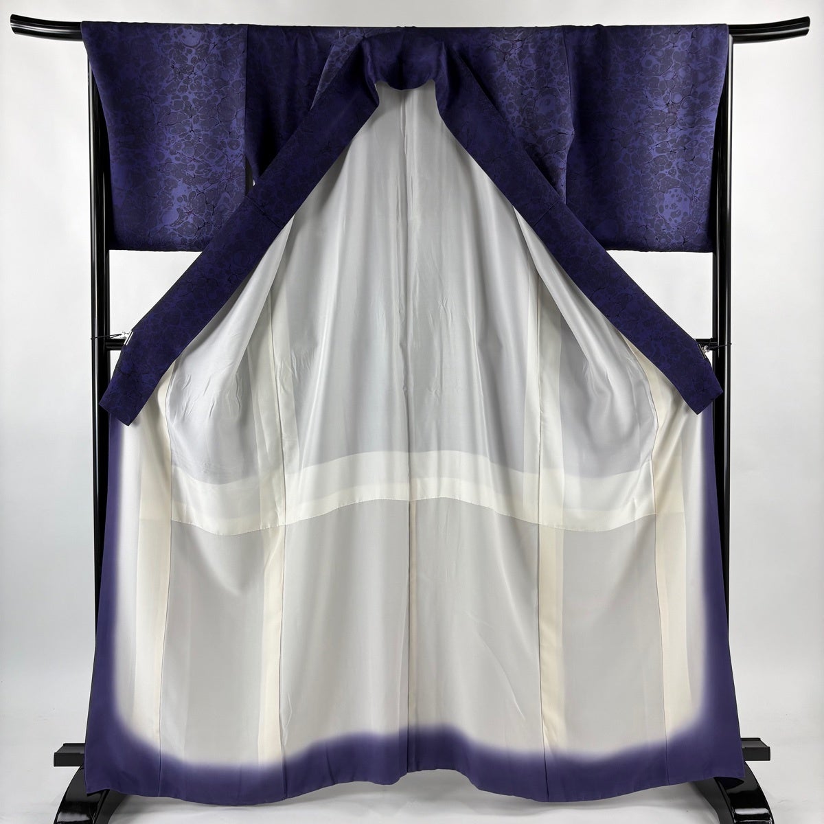 訪問着 身丈167cm 裄丈68cm L 袷 桜 花びら 染め分け ぼかし 青紫 正絹 秀品