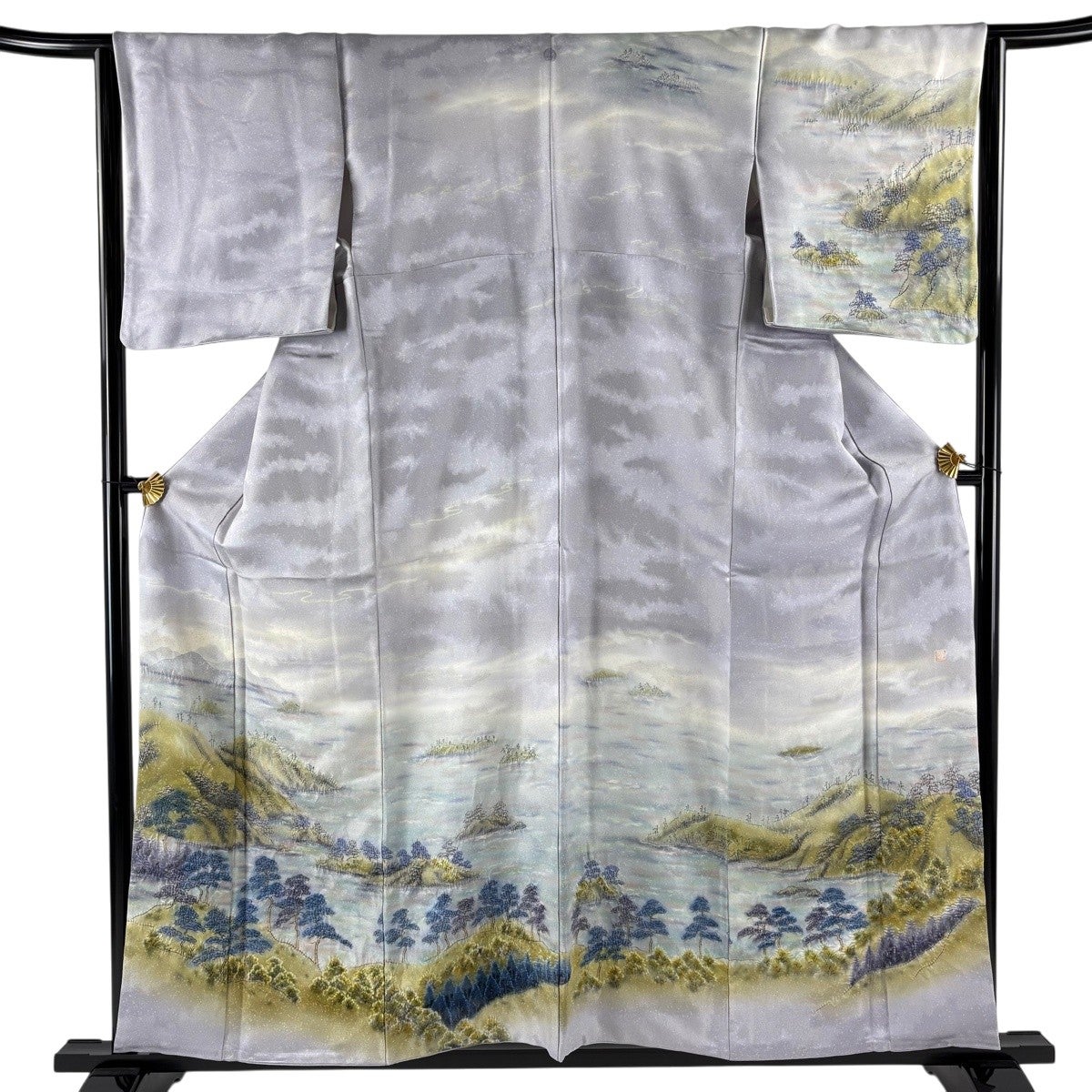 訪問着 身丈169.5cm 裄丈70.5cm L 袷 袋帯セット 水谷滉 落款あり 宝尽くし 寄せ柄 灰白 正絹 秀品