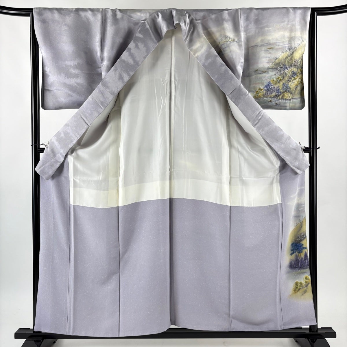 訪問着 身丈160.5cm 裄丈70.5cm L 袷 落款あり 霞 地紋 ぼかし 薄紫 正絹 秀品