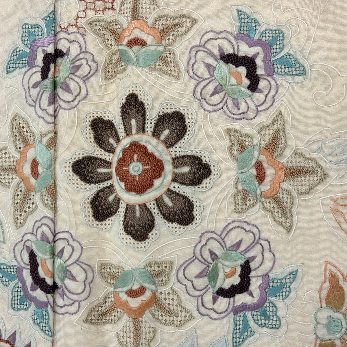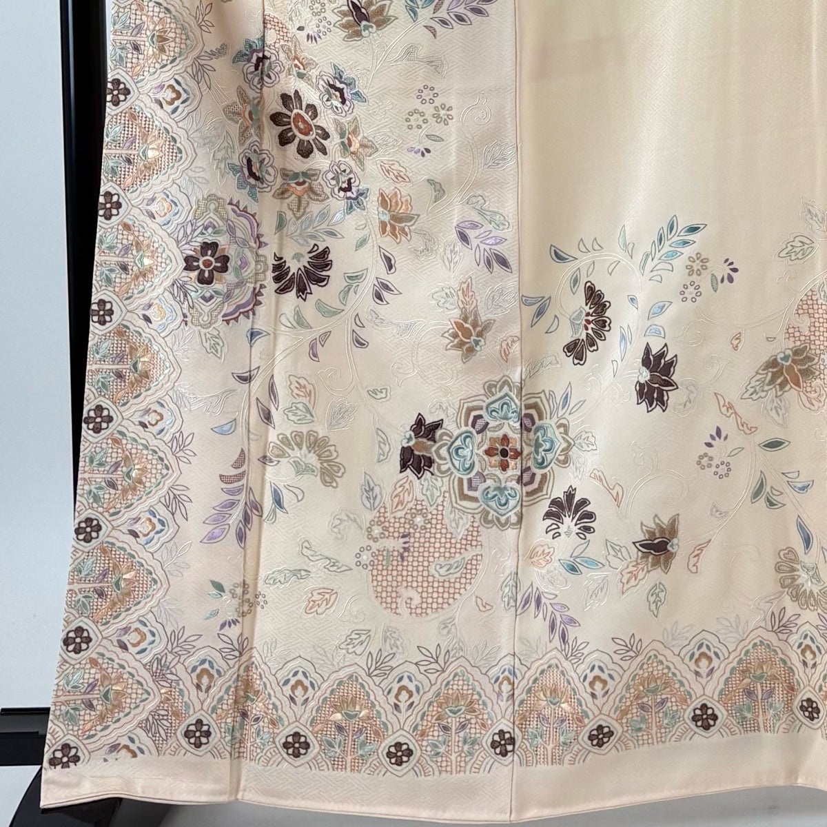 付下げ 身丈166.5cm 裄丈68cm L 袷 胡蝶蘭 刺繍 金銀糸 クリーム 正絹 秀品