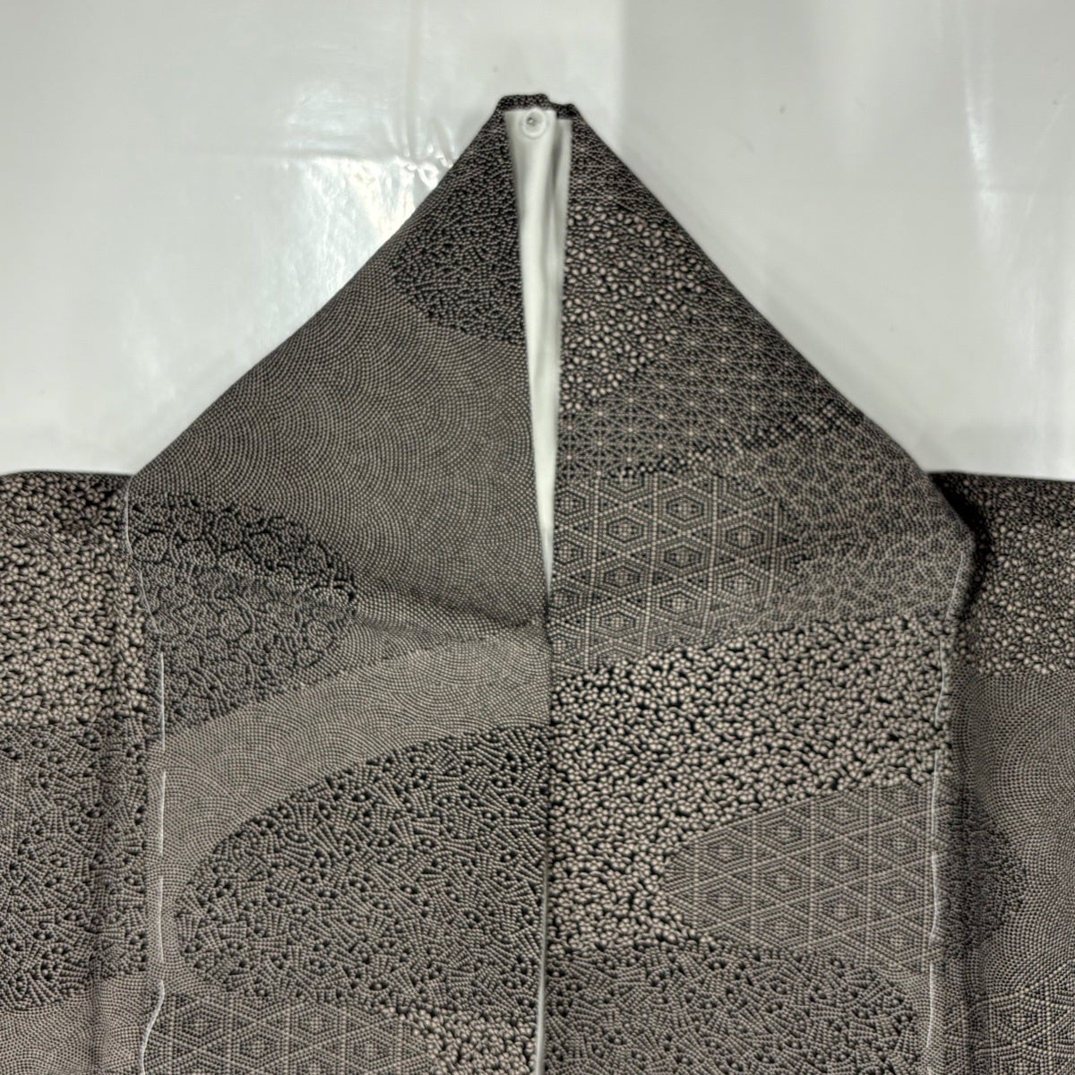 江戸小紋 身丈160cm 裄丈66.5cm M 袷 落款あり 鮫 灰紫 正絹 秀品