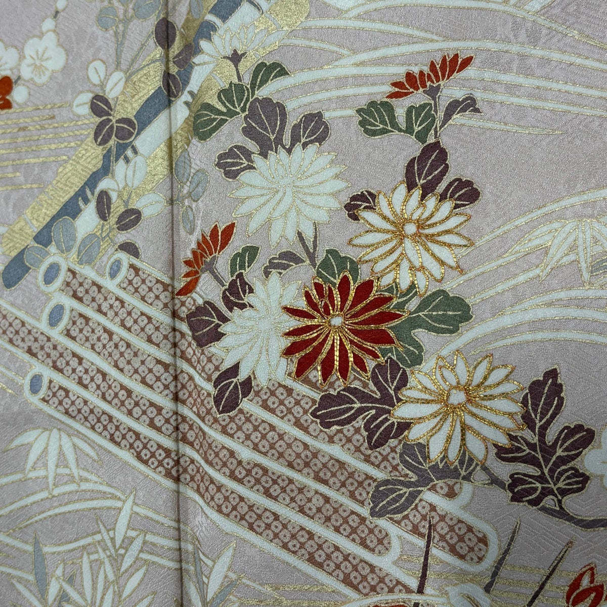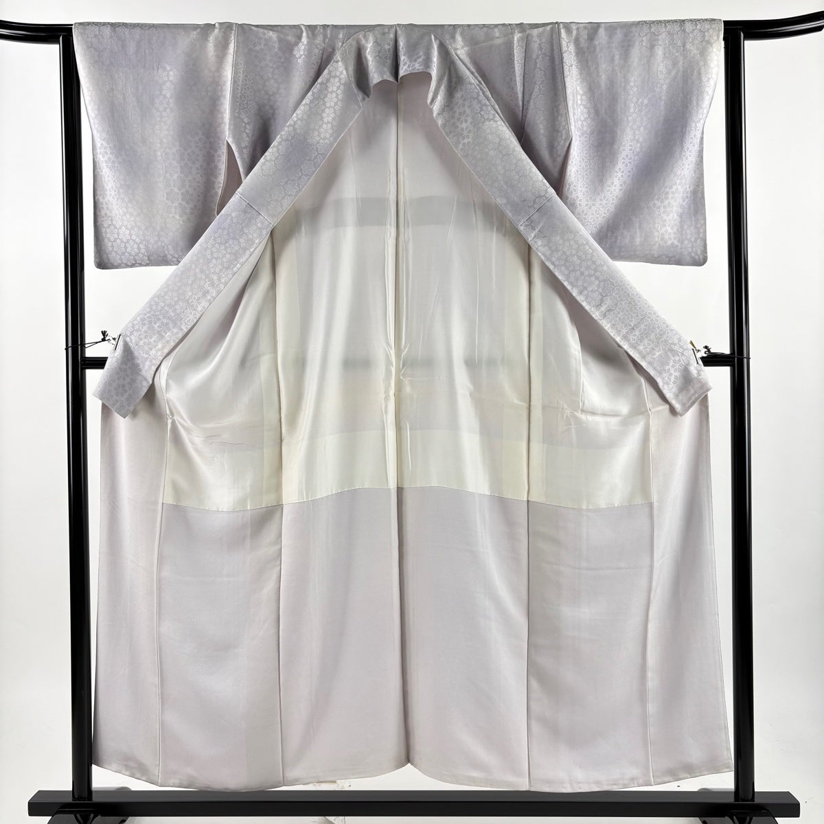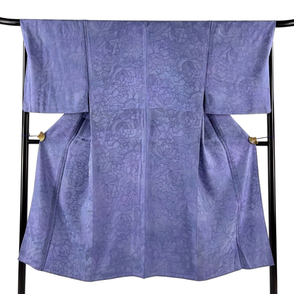 小紋 身丈154cm 裄丈63cm S 袷 地紋 ぼかし 薄紫 正絹 名品