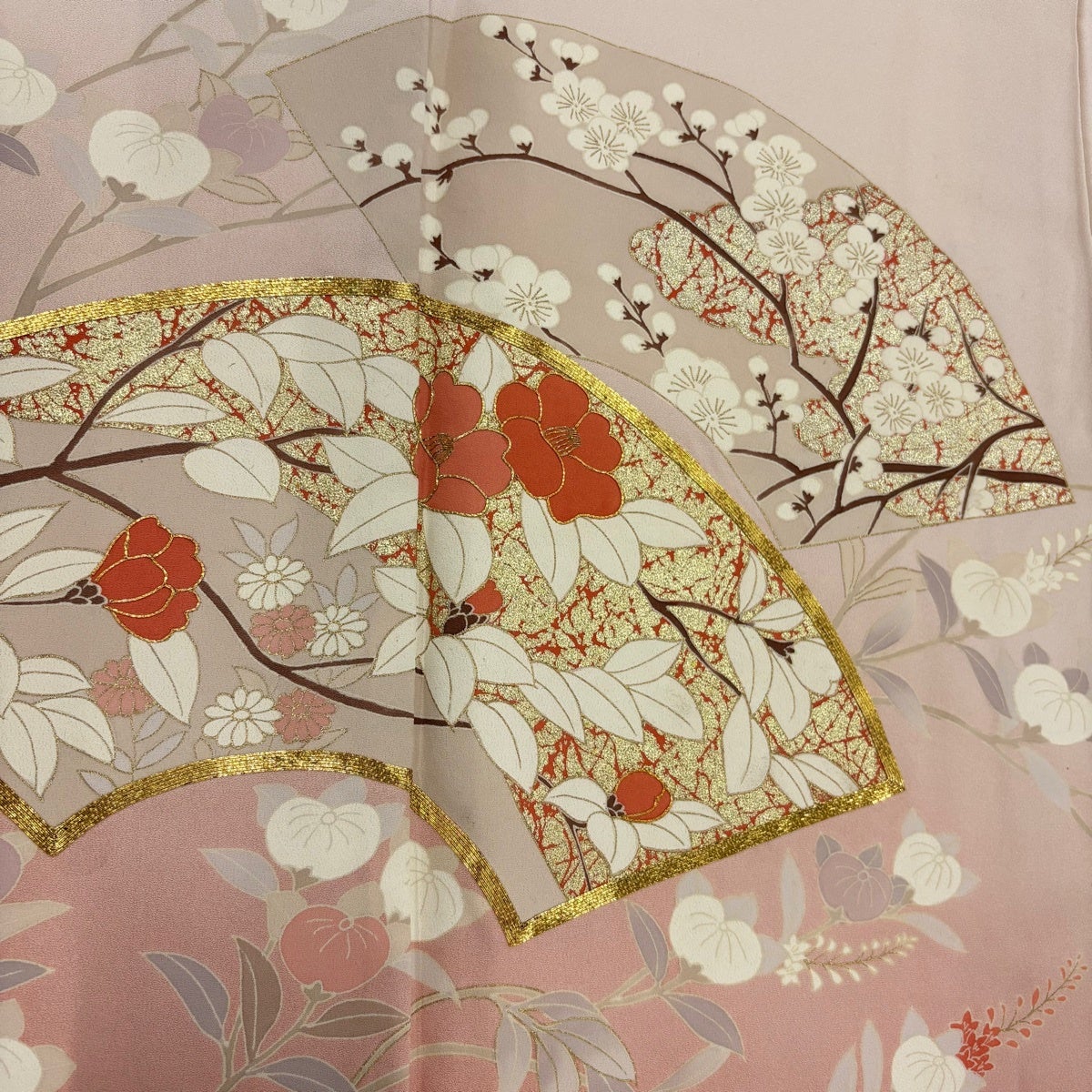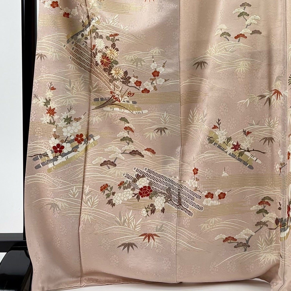 訪問着 身丈171cm 裄丈69.5cm L 袷 花筏 波 金糸 金彩 薄ピンク 正絹 名品