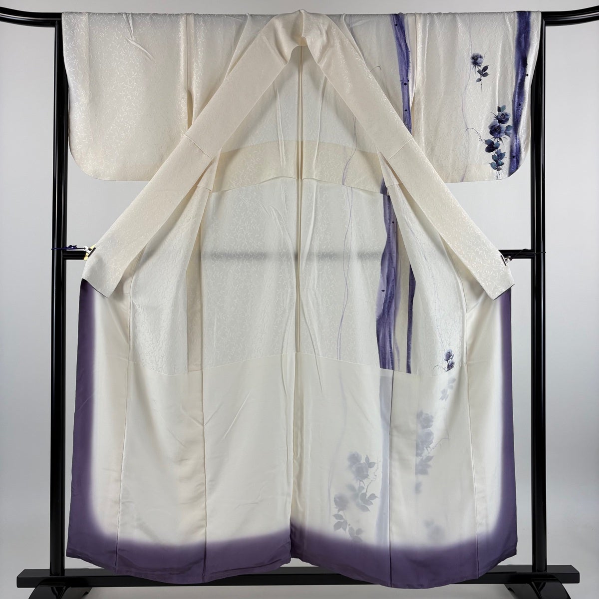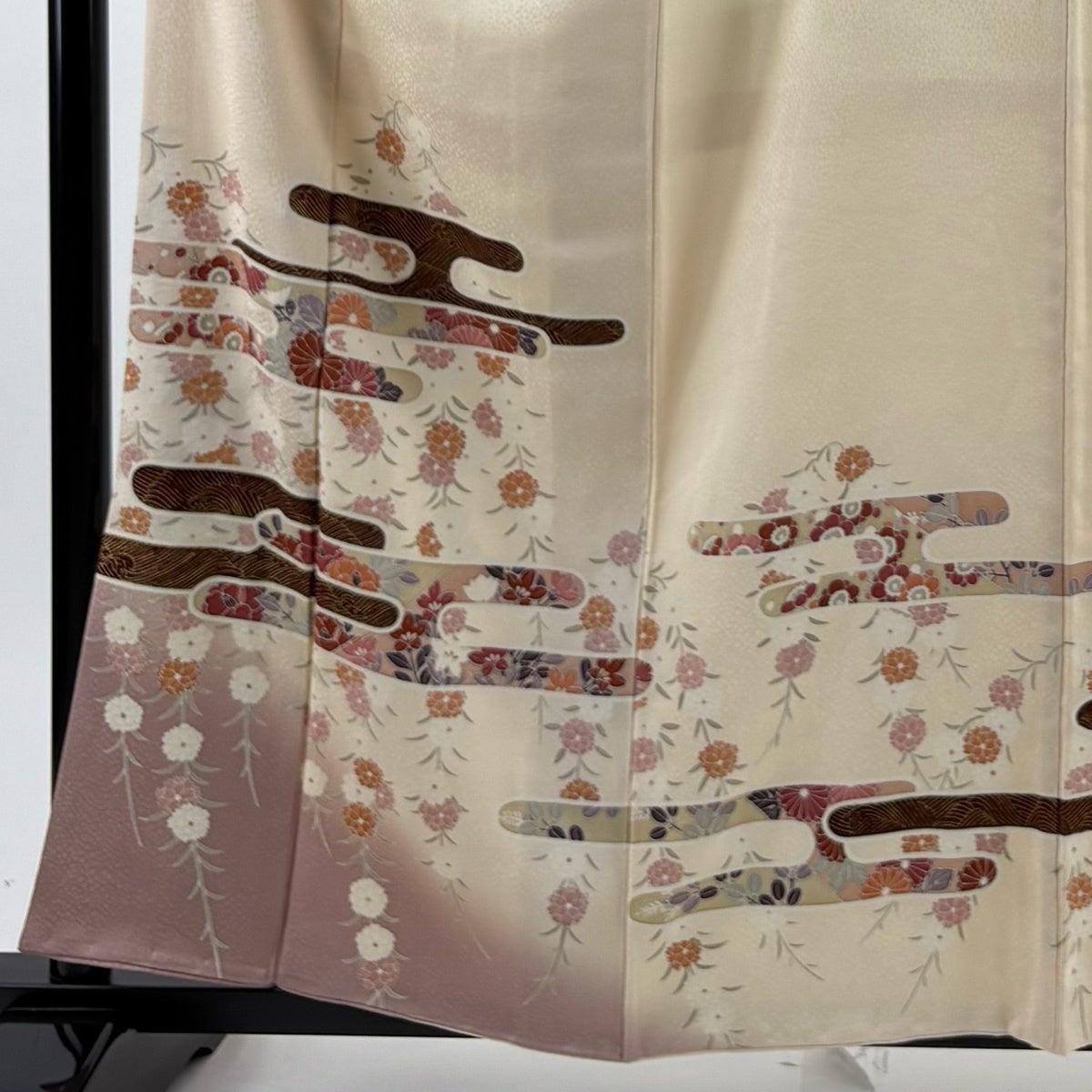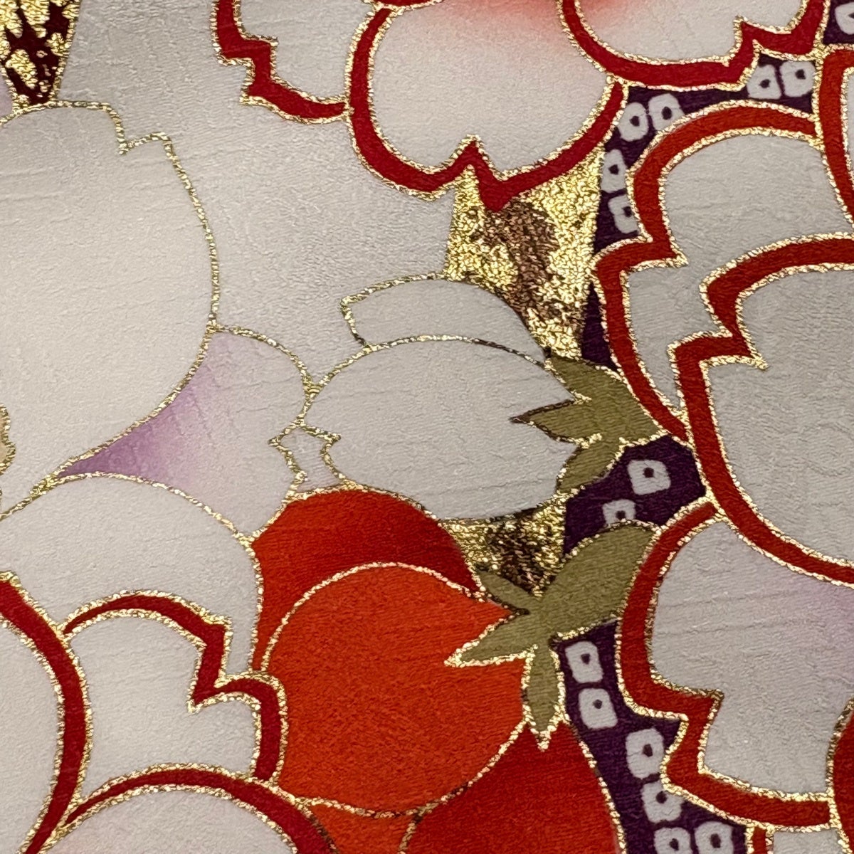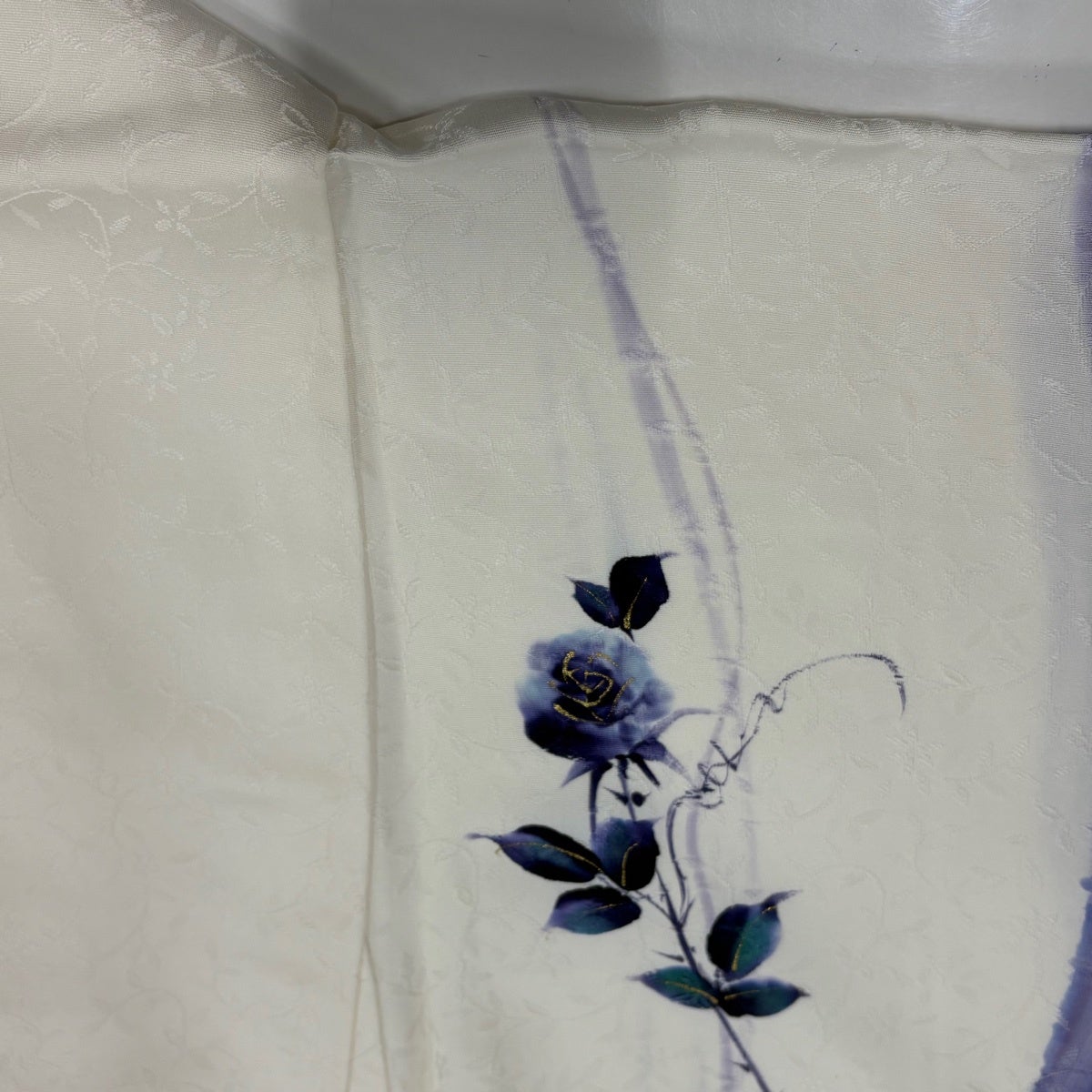 付下げ 身丈155.5cm 裄丈67cm M 単衣 薔薇 金彩 地紋 クリーム 正絹 秀品