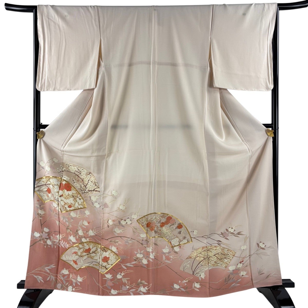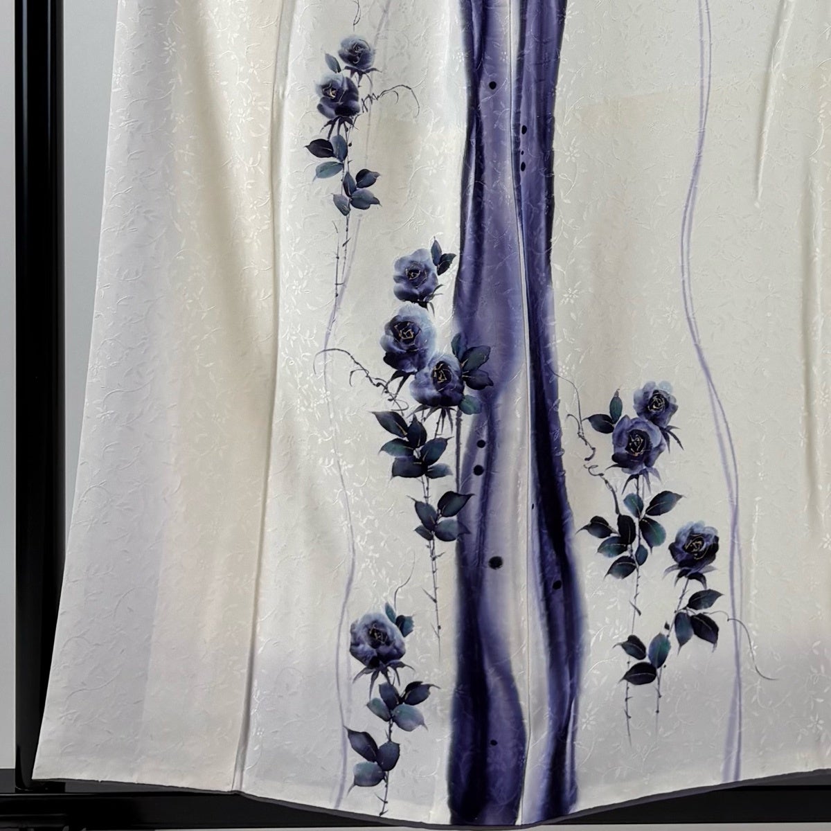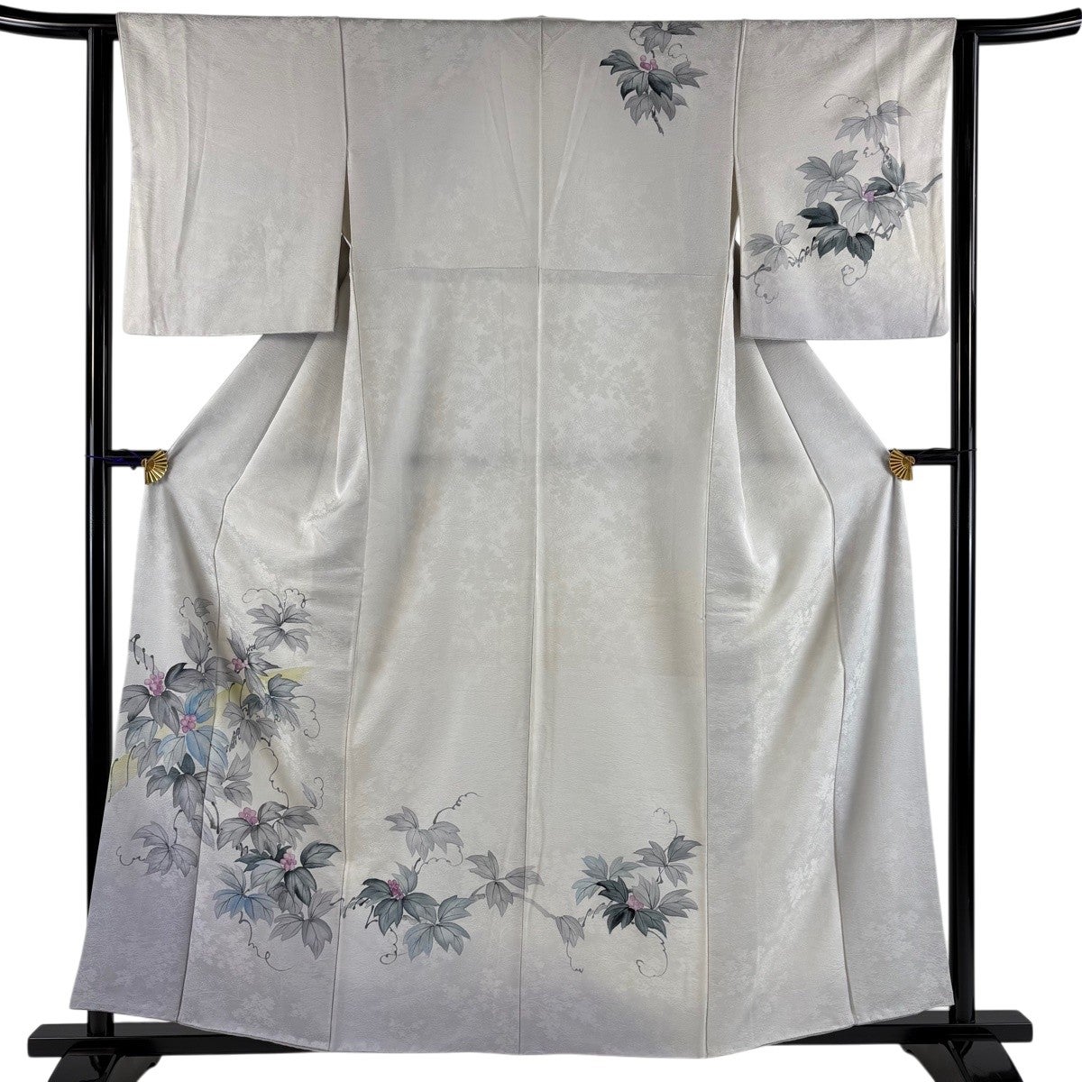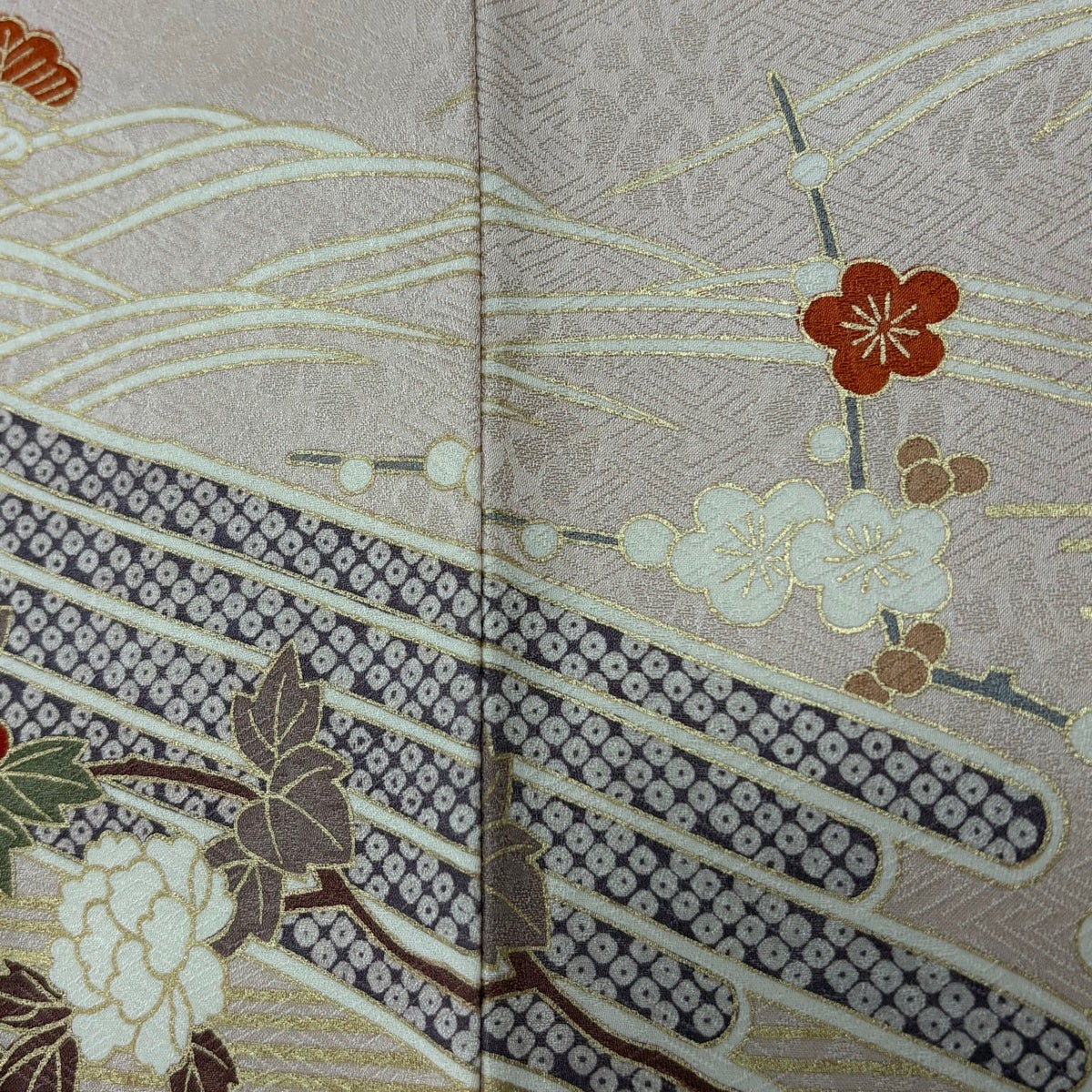 付下げ 身丈155.5cm 裄丈67cm M 単衣 薔薇 金彩 地紋 クリーム 正絹 秀品