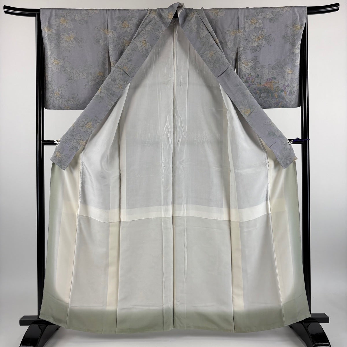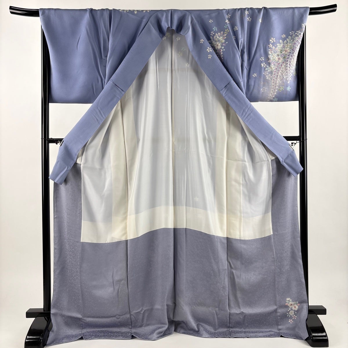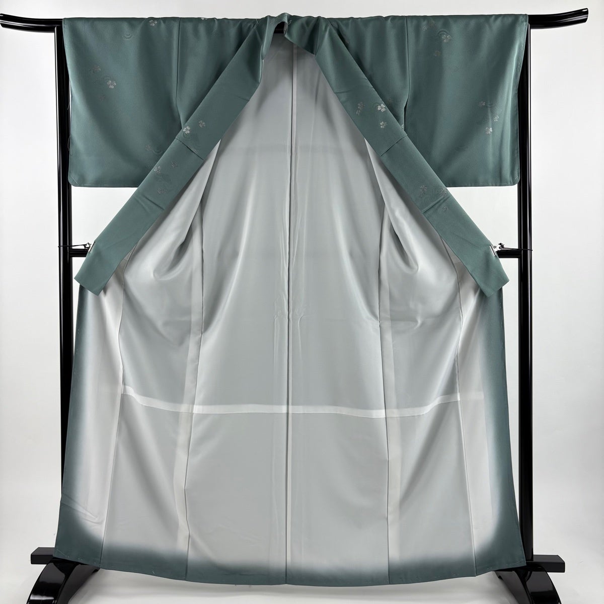 訪問着 身丈154cm 裄丈65cm M 袷 桜 地紋 染め分け ぼかし 青灰色 正絹 名品