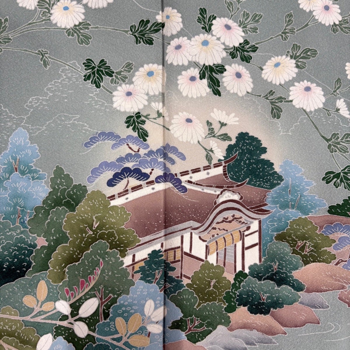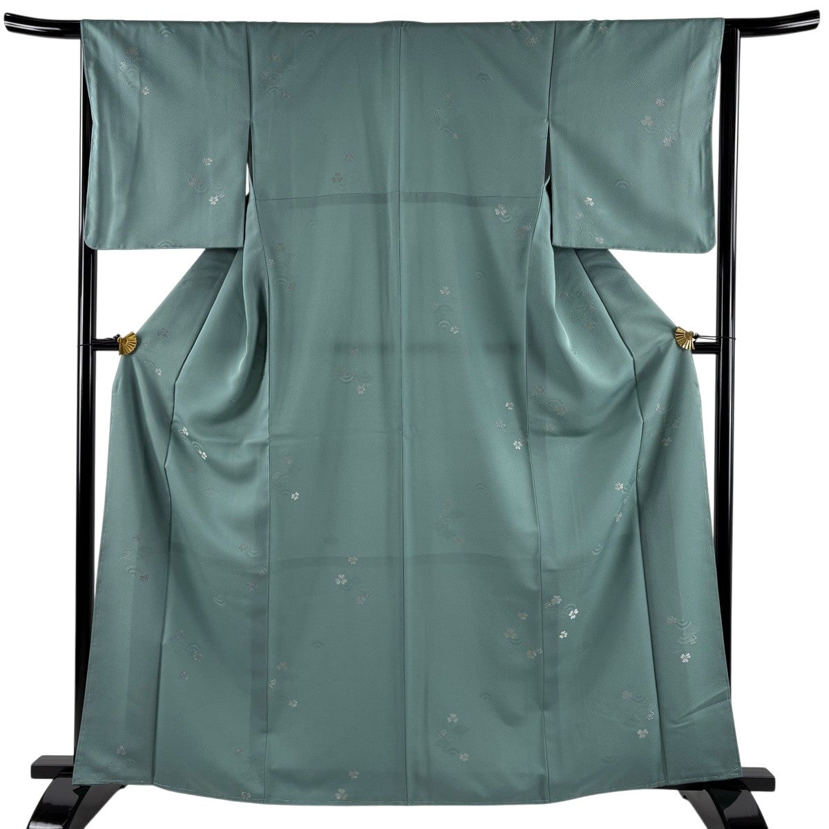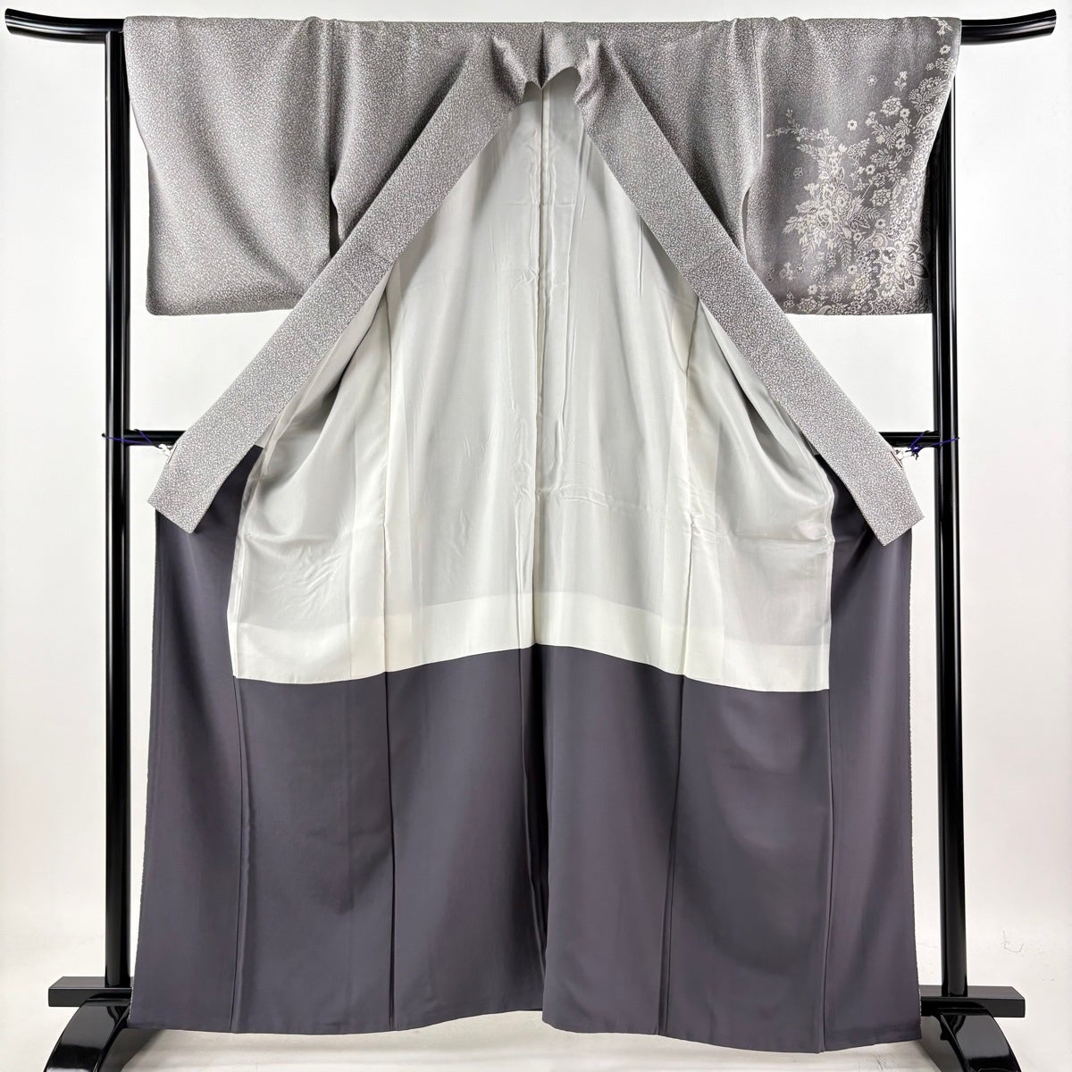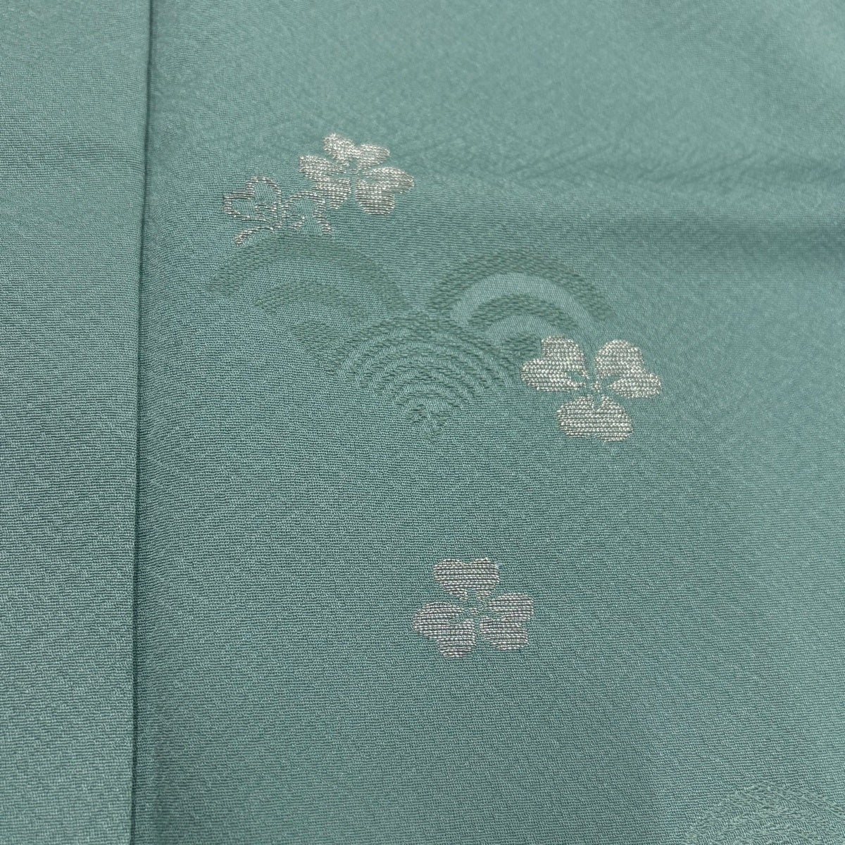 訪問着 身丈154cm 裄丈65cm M 袷 桜 地紋 染め分け ぼかし 青灰色 正絹 名品