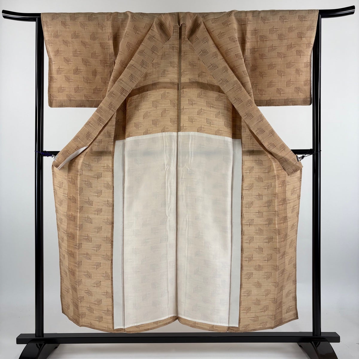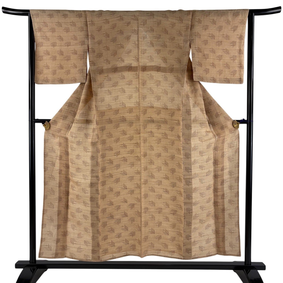 【美品】 紬 身丈152.5cm 裄丈64cm M 薄物 夏紬 幾何学 薄茶色 正絹 逸品