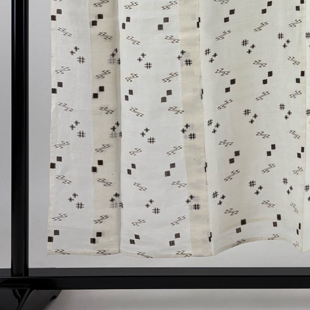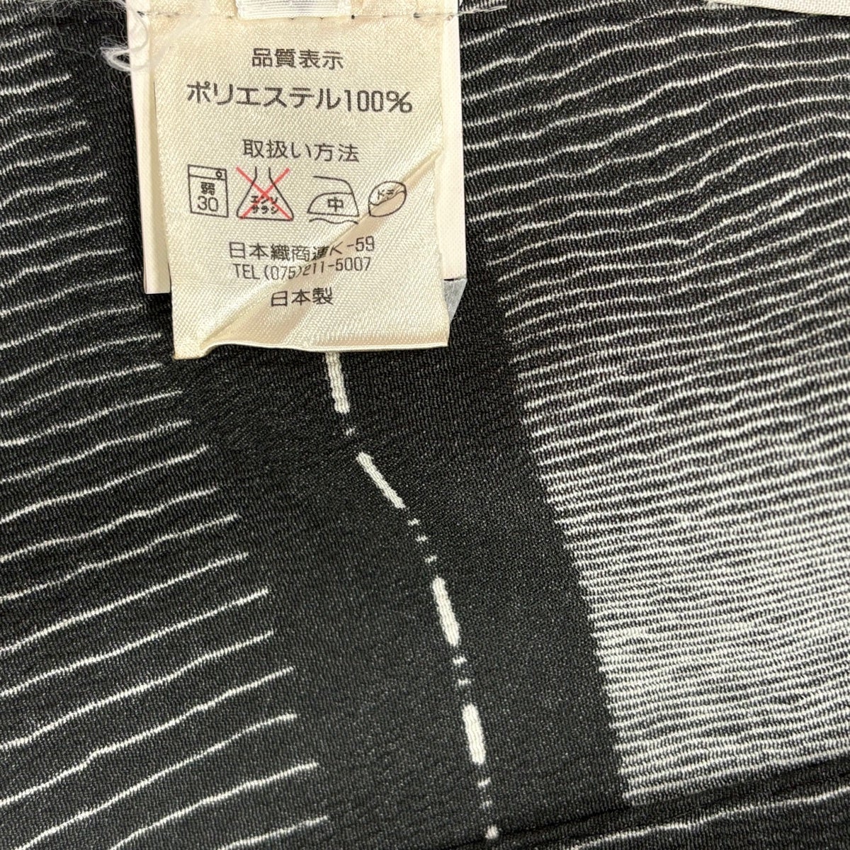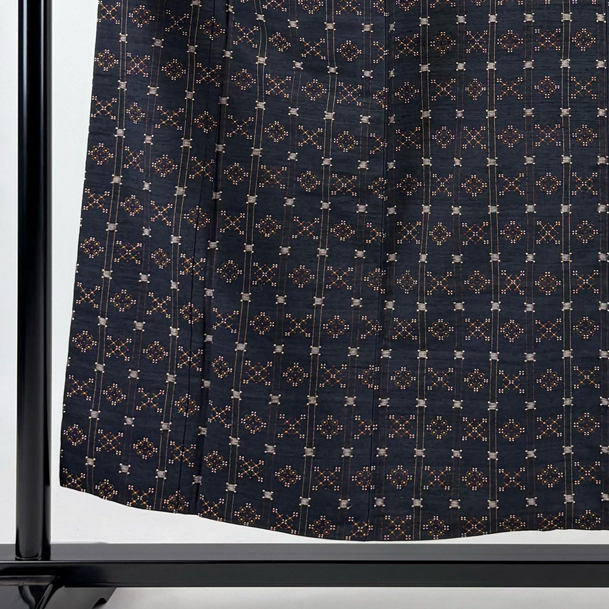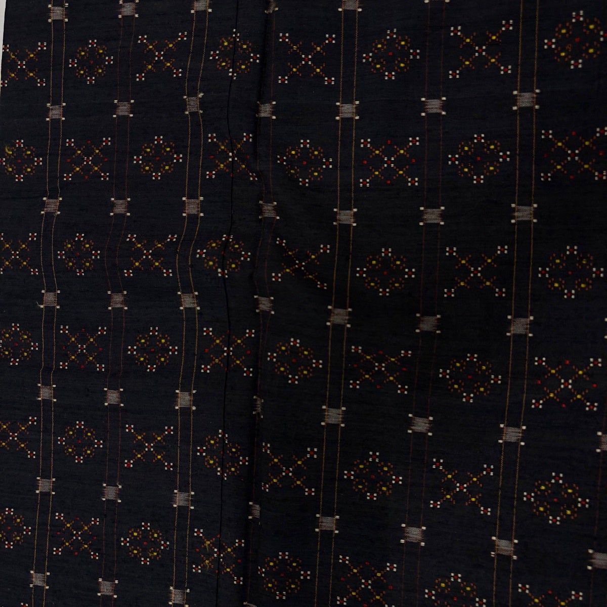 【美品】 紬 身丈154.5cm 裄丈63.5cm S 袷 花織 縦縞 幾何学模様 黒灰 正絹 逸品
