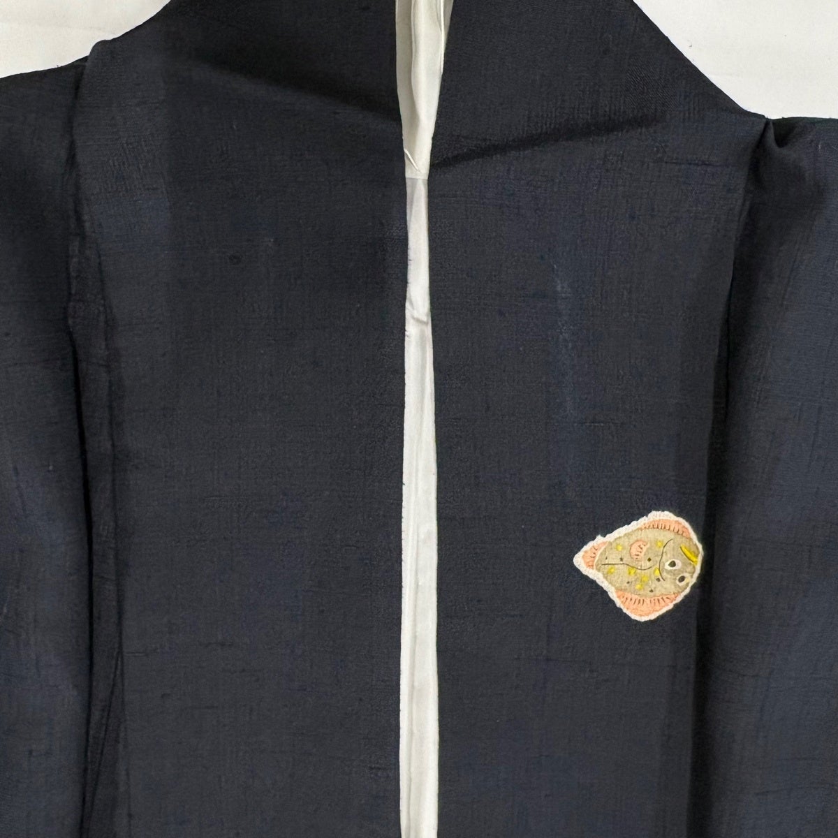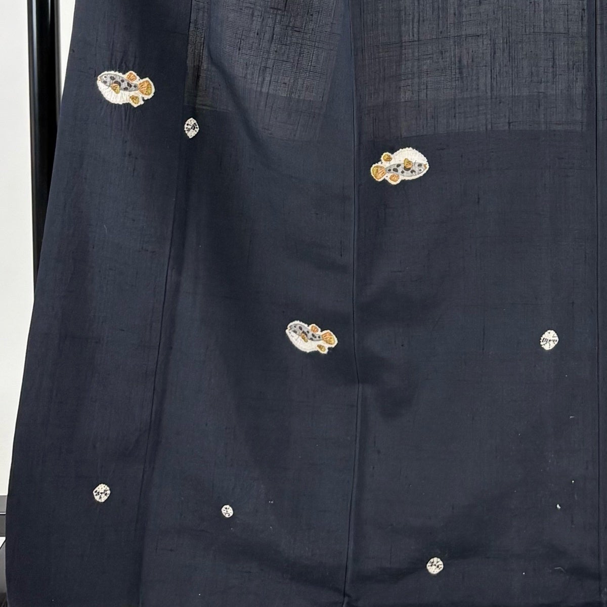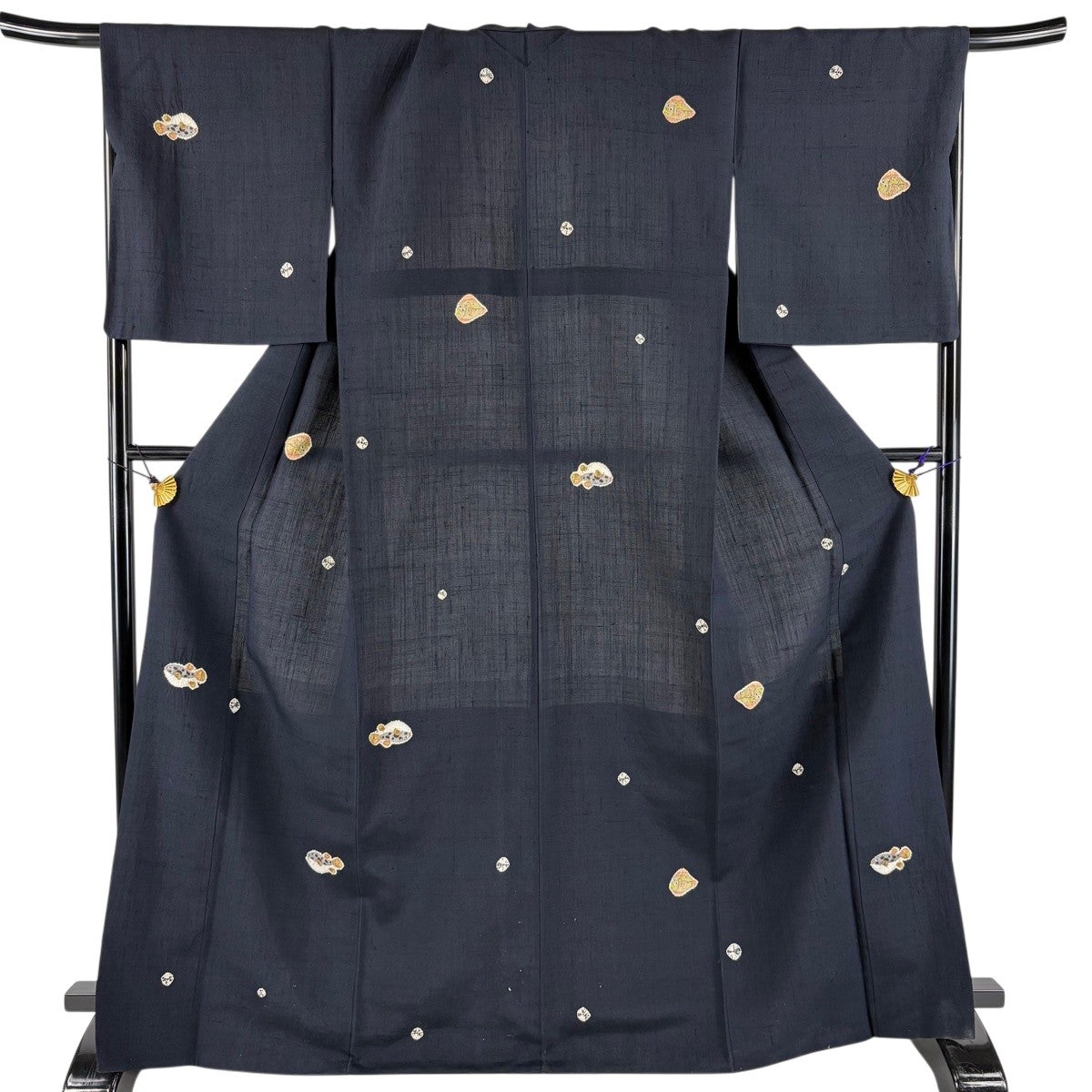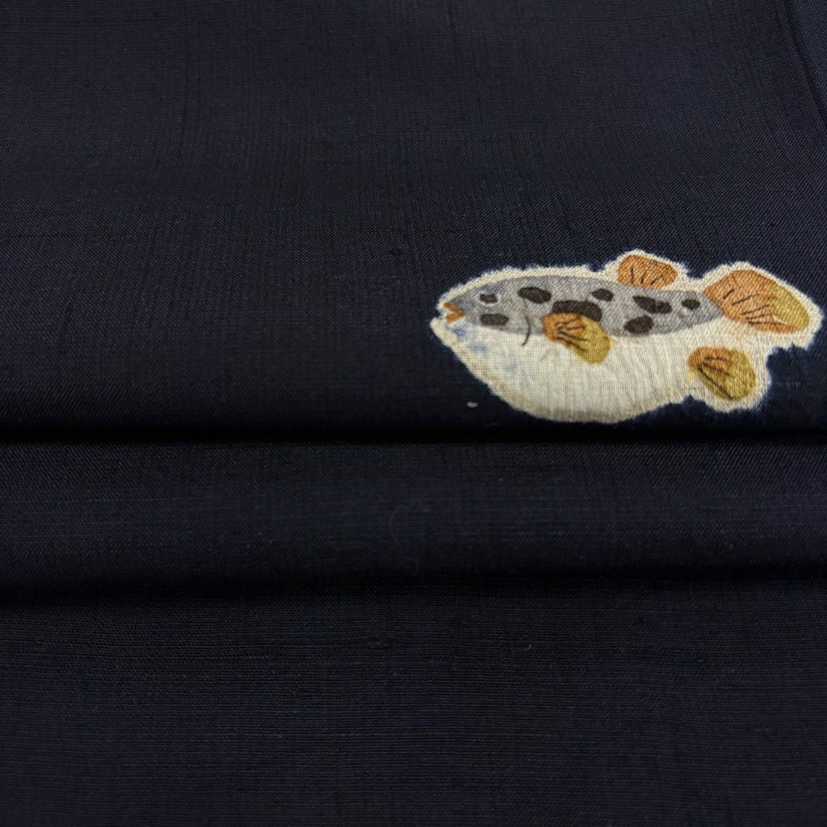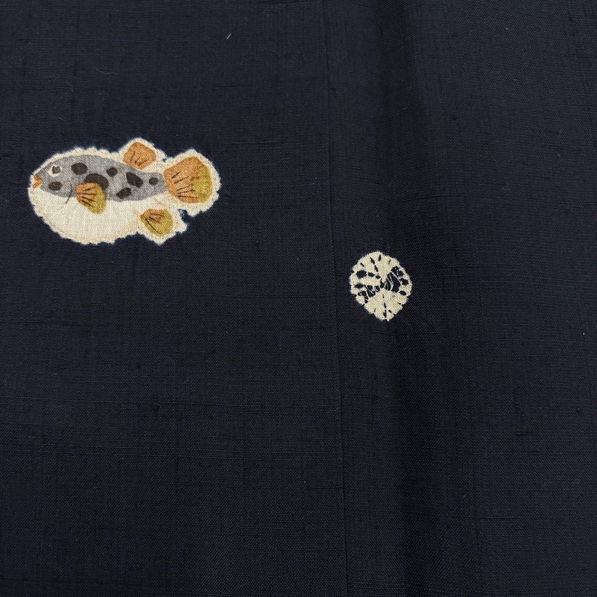 小紋 身丈168.5cm 裄丈69cm L 袷 紬地 フグ 魚 絞り 濃紺 正絹 逸品