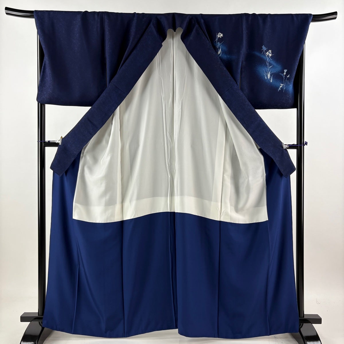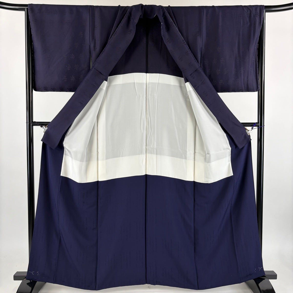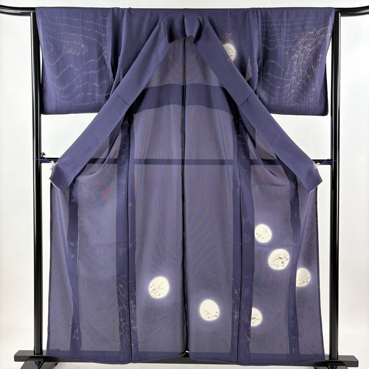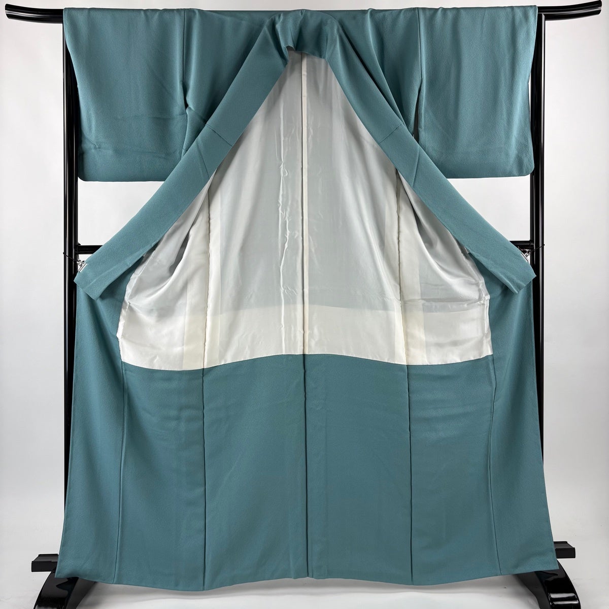 色無地 身丈162.5cm 裄丈66cm M 袷 天然藍染 背抜き 地紋 濃紫 正絹 逸品
