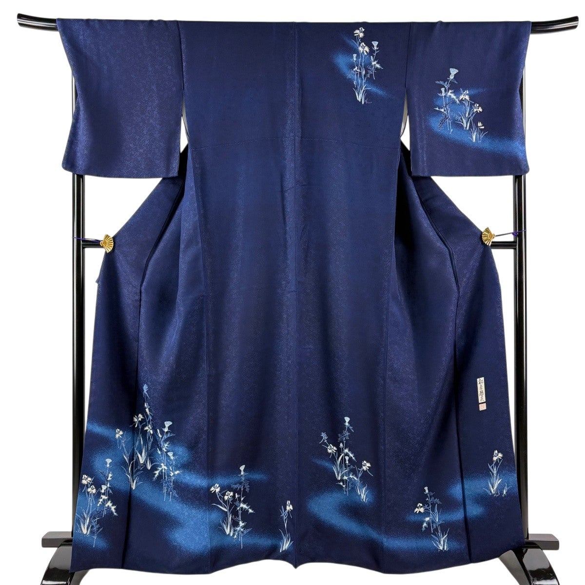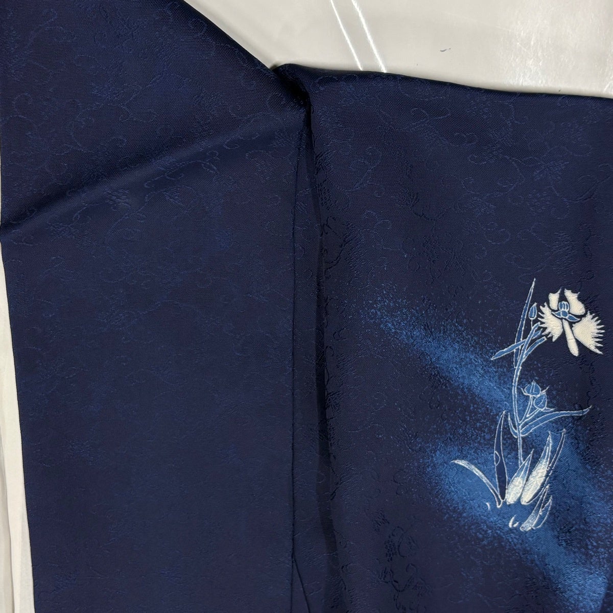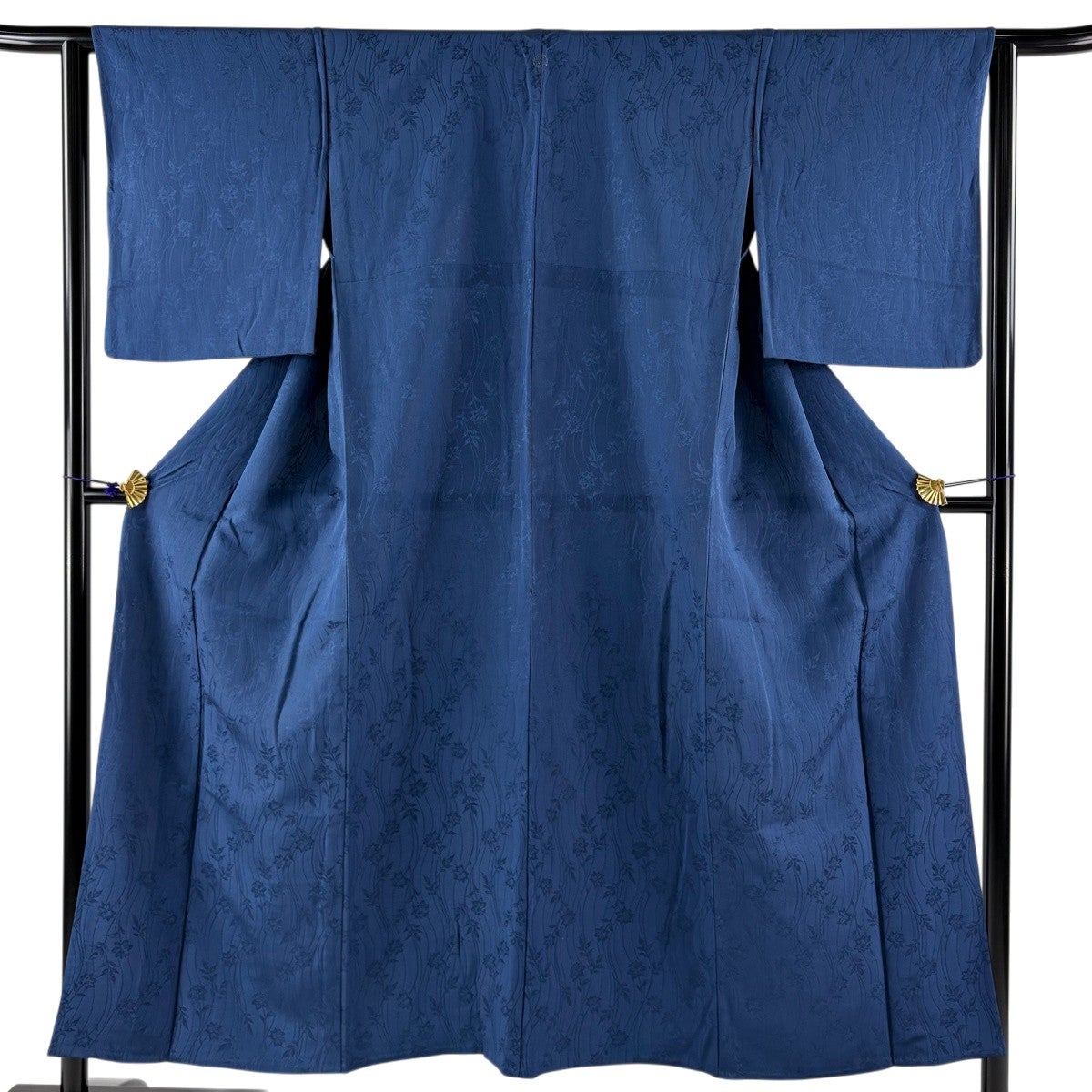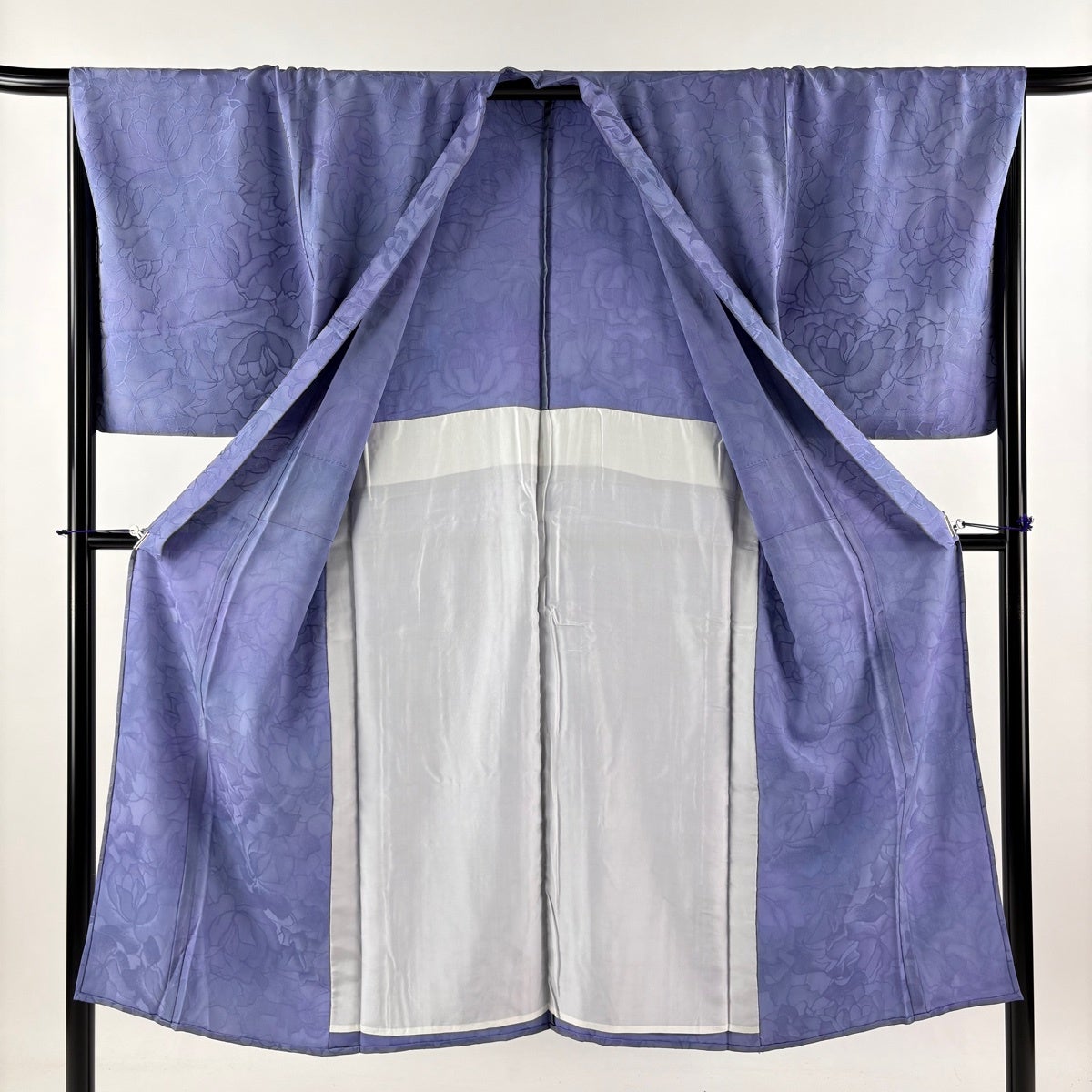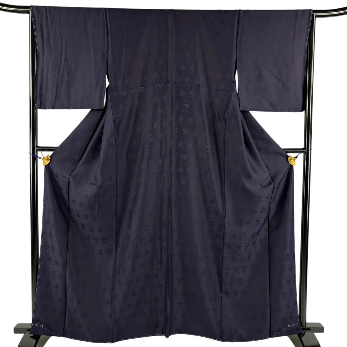 色無地 身丈162.5cm 裄丈66cm M 袷 天然藍染 背抜き 地紋 濃紫 正絹 逸品