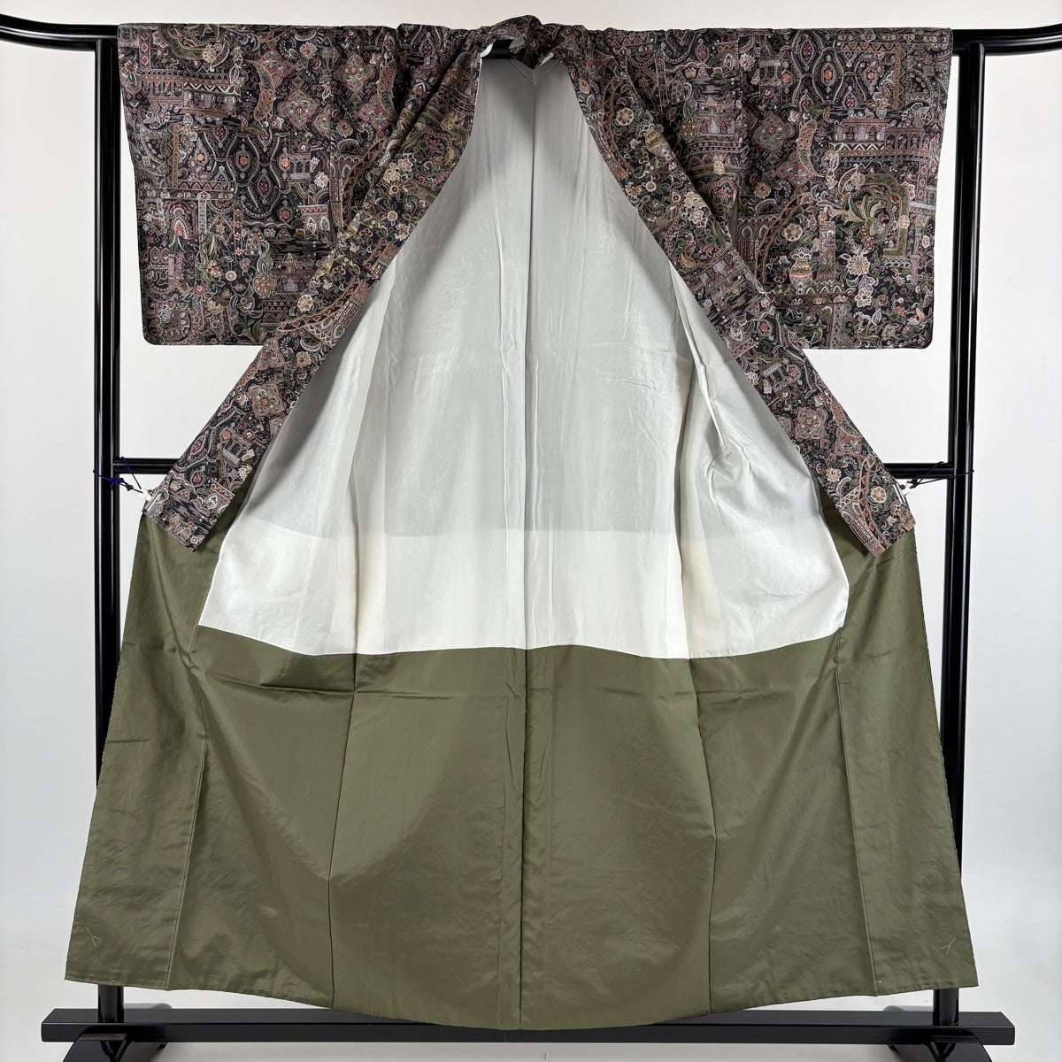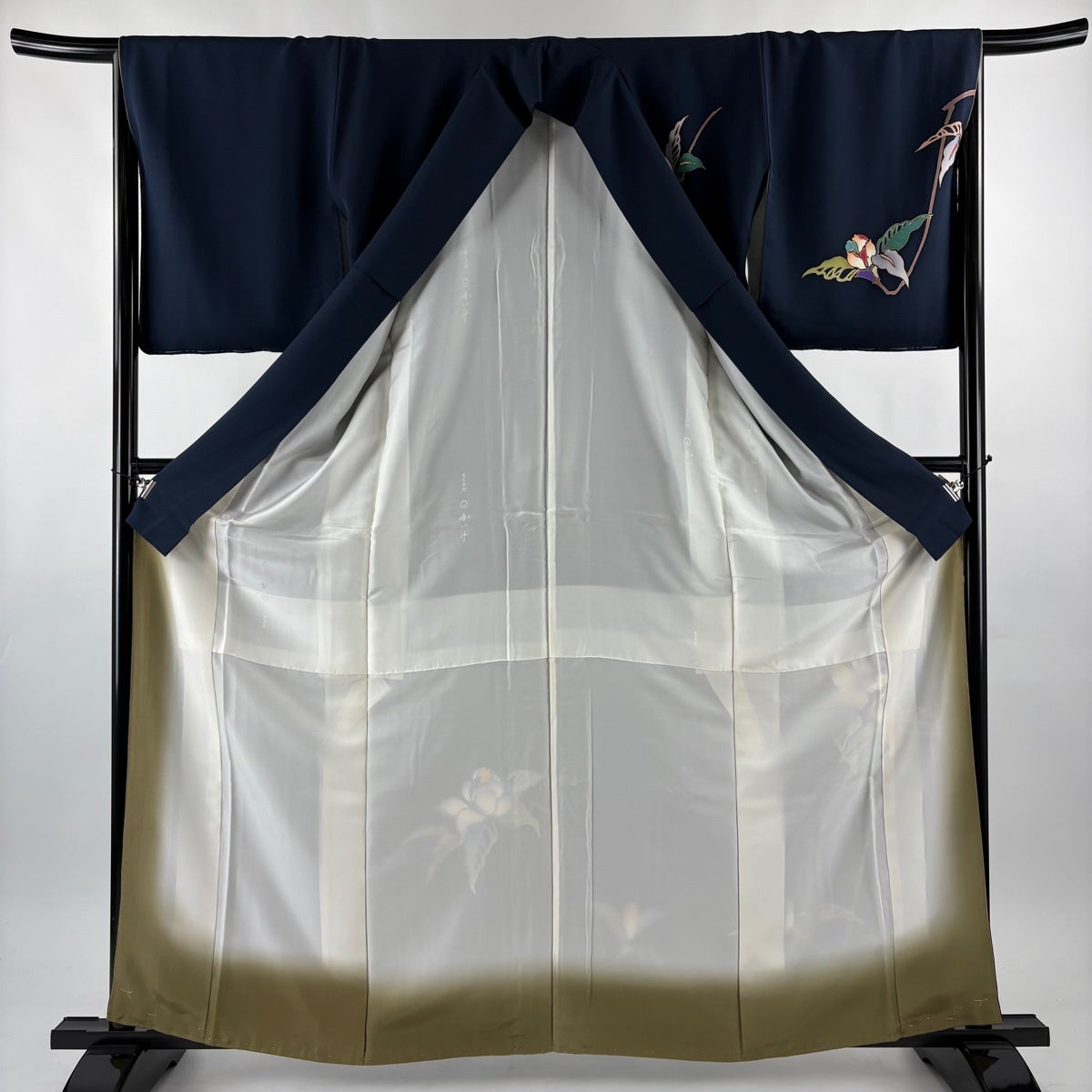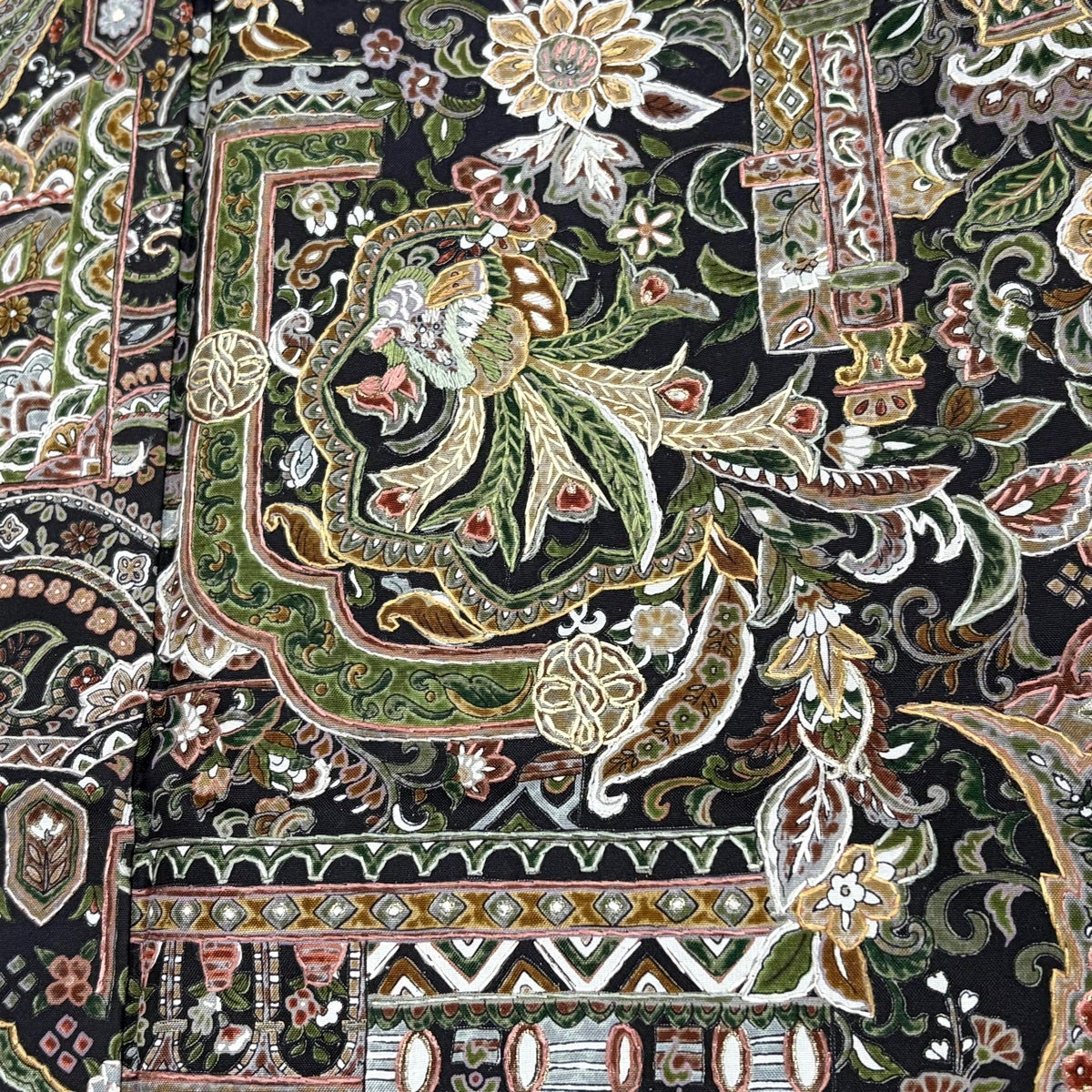 【美品】 小紋 身丈156.5cm 裄丈63cm S 袷 ますいわ屋 鳥 草花 刺繍 墨色 正絹 逸品
