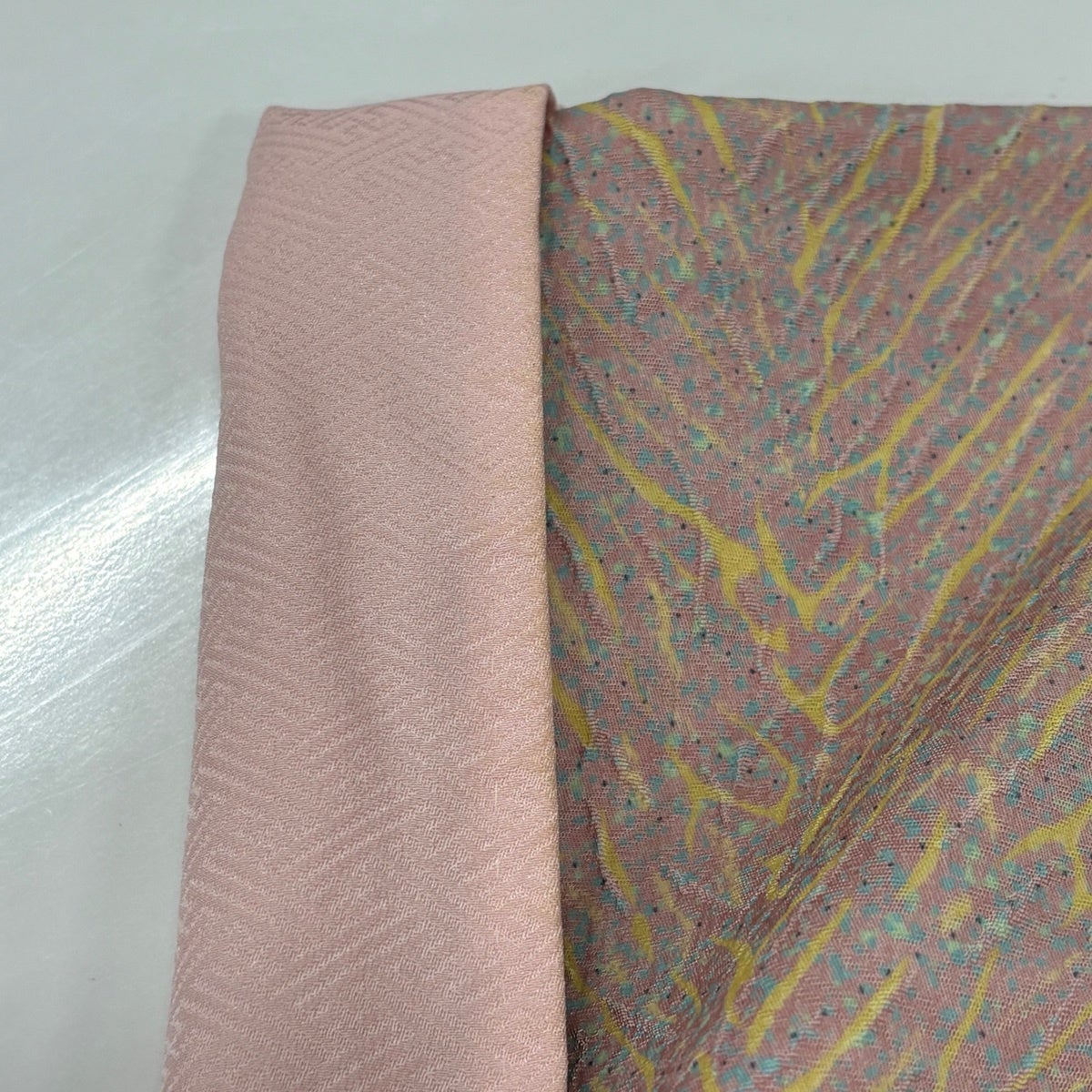 付下げ 身丈169cm 裄丈68cm L 袷 幾何学模様 染分け 絞り 薄ピンク 正絹 秀品
