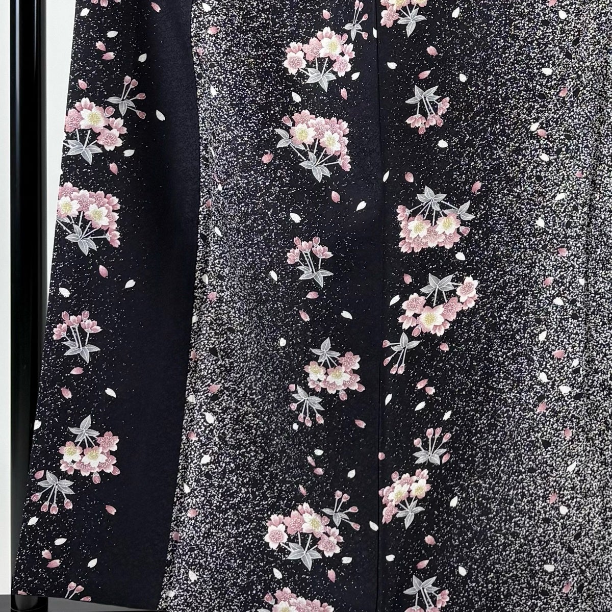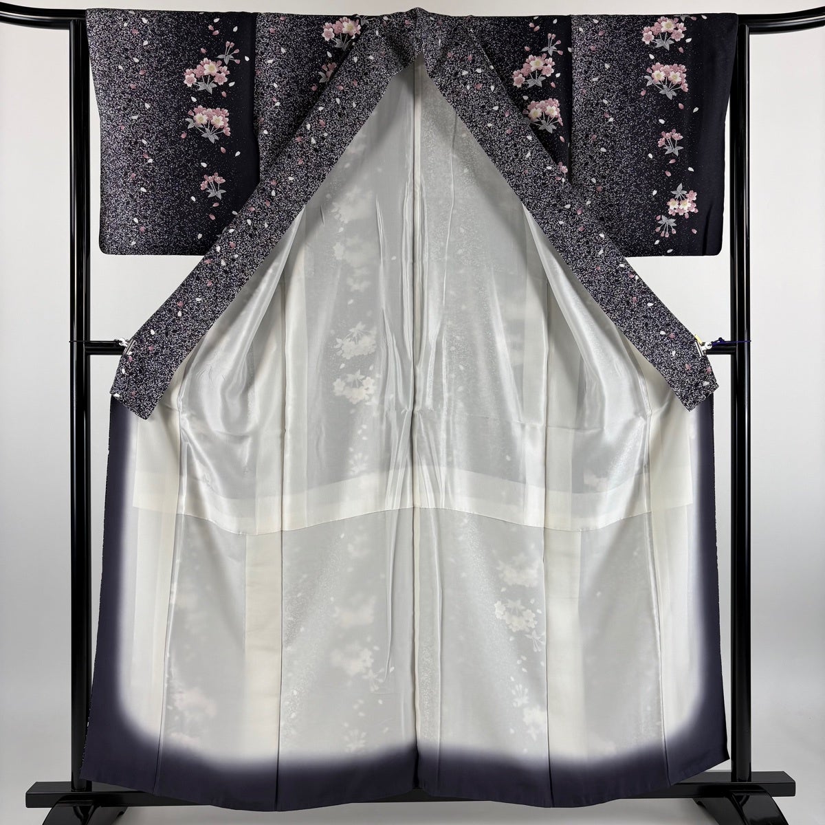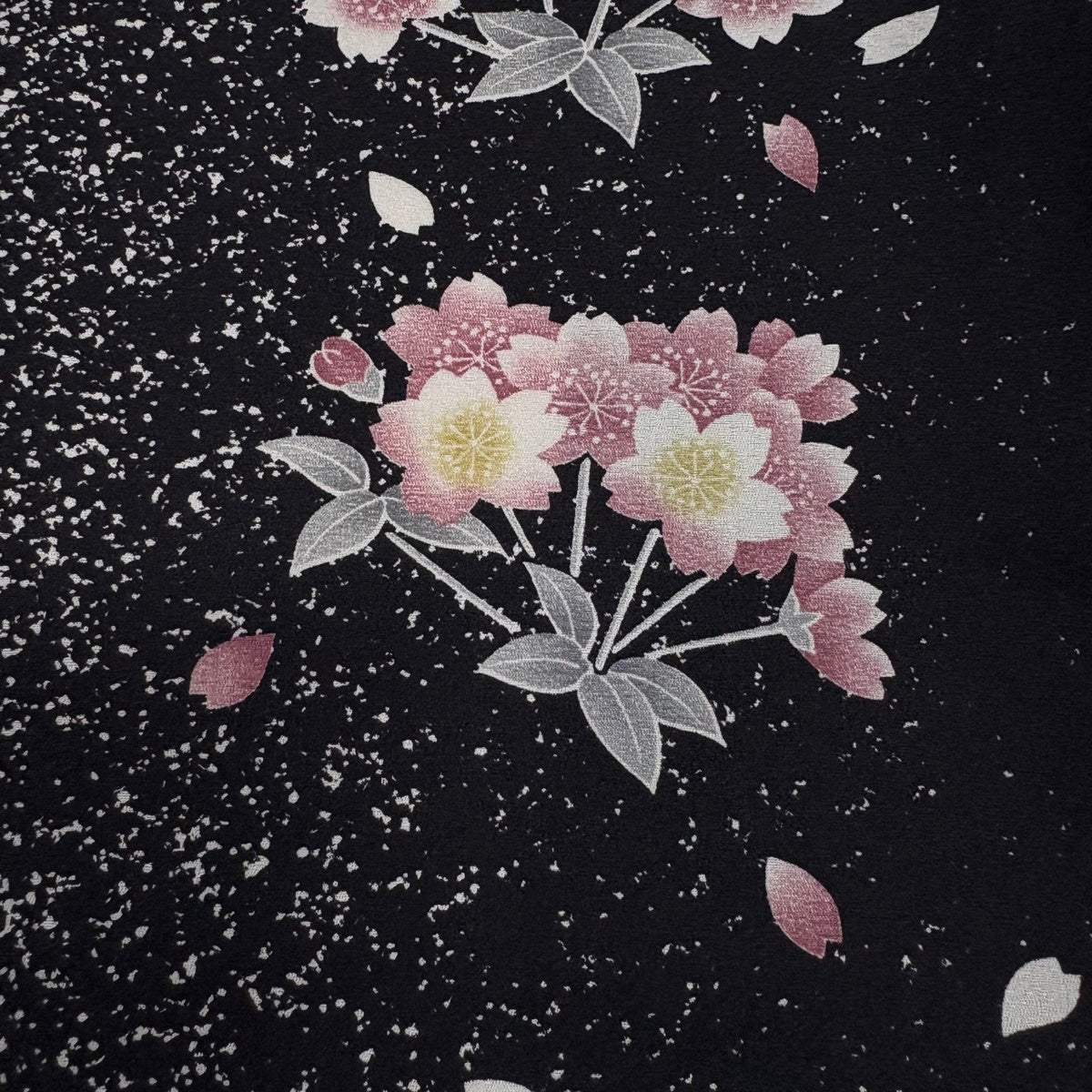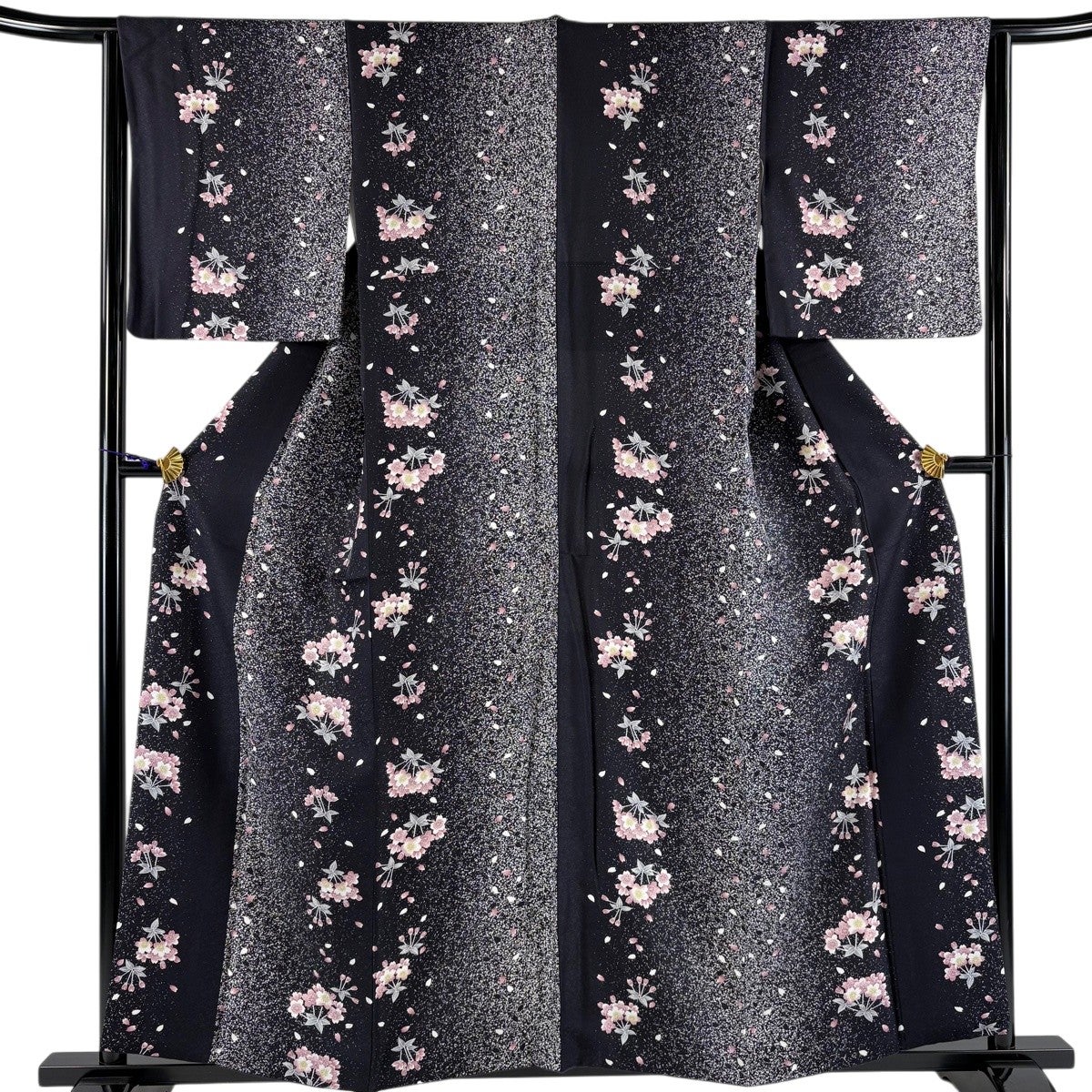 小紋 身丈158cm 裄丈64cm M 袷 桜 花弁 黒 正絹 秀品