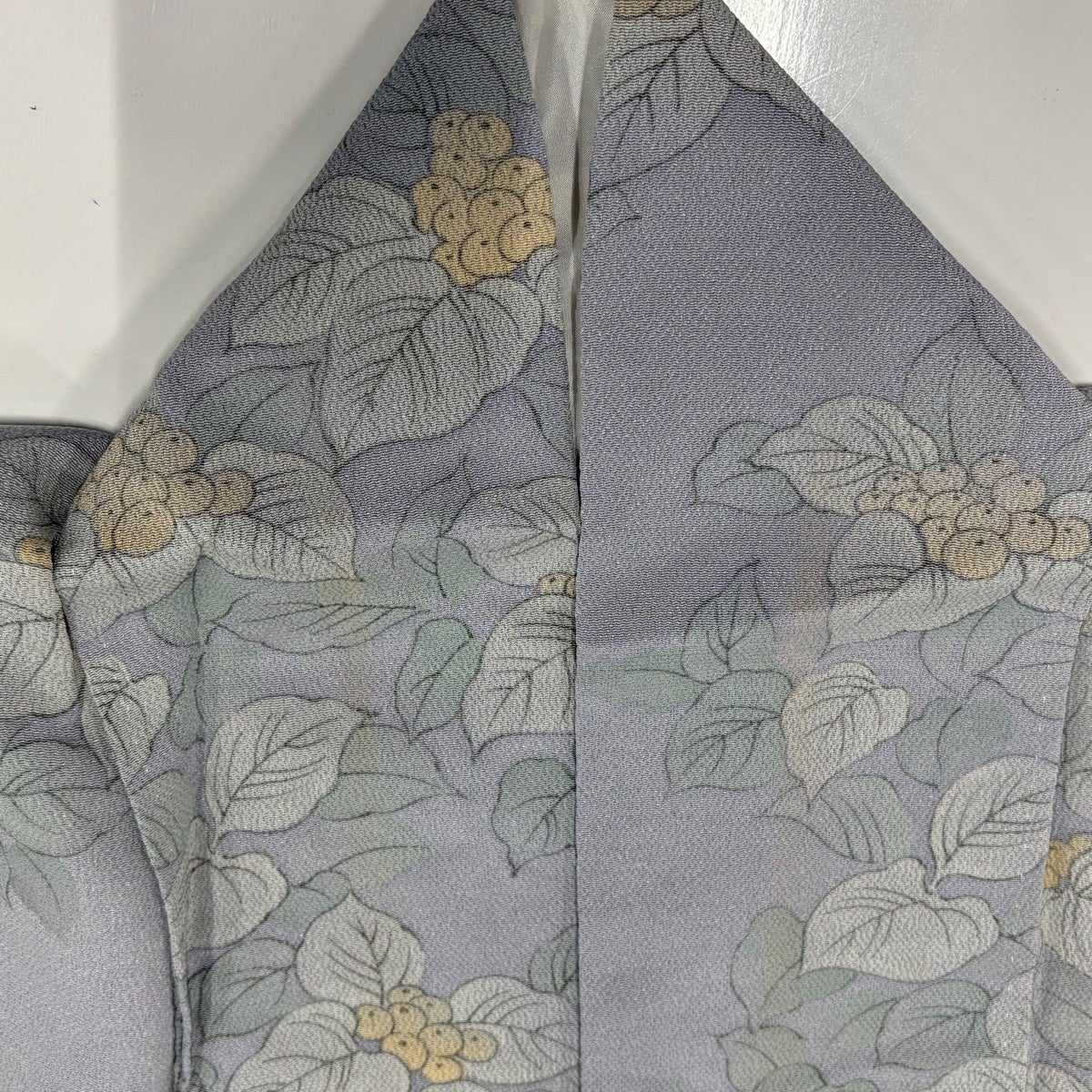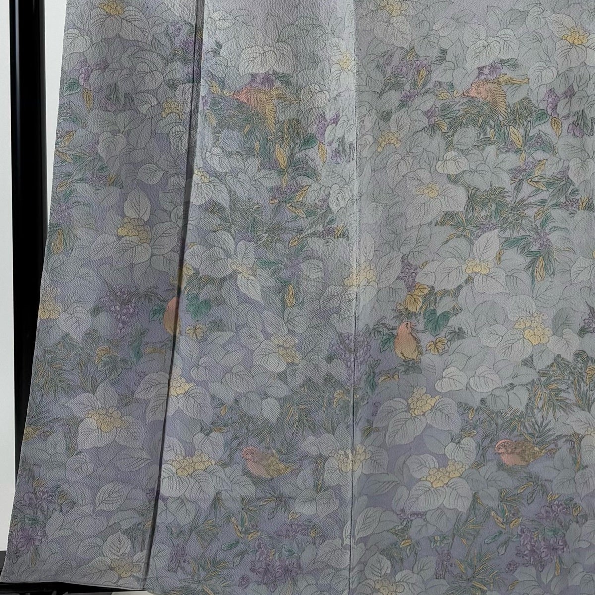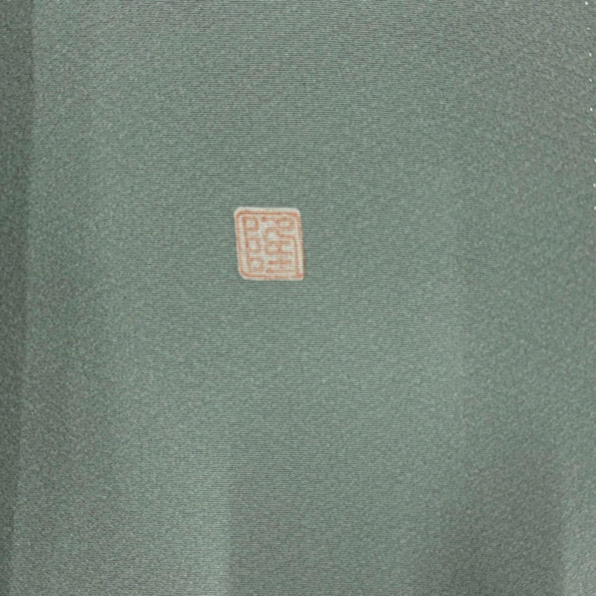 付下げ 身丈160.5cm 裄丈65cm M 袷 葉と実 鳥 縮緬 灰色 正絹 秀品
