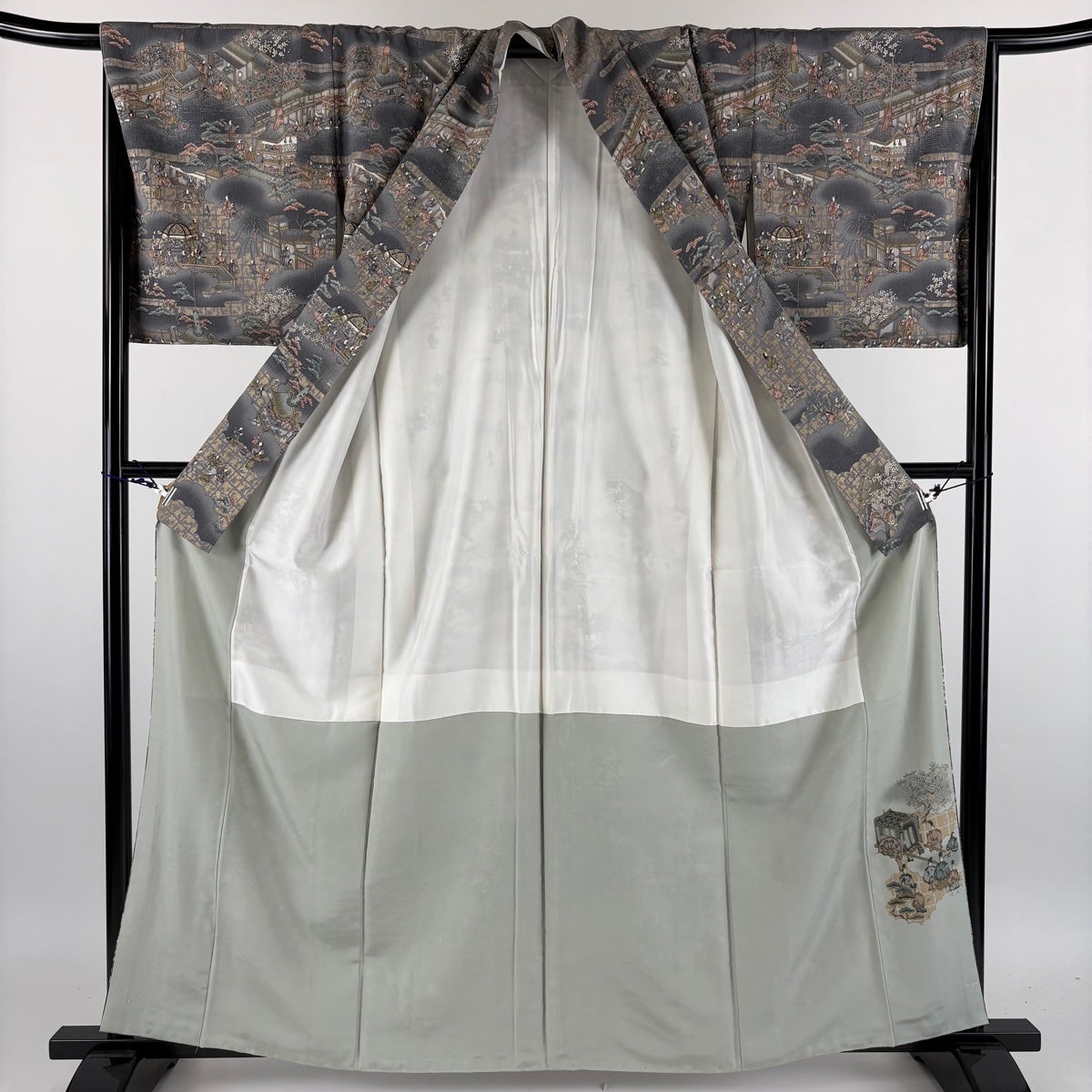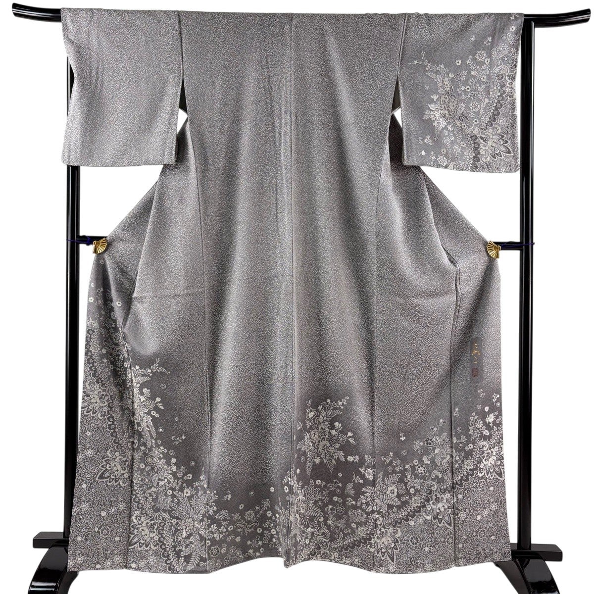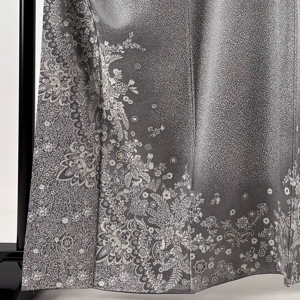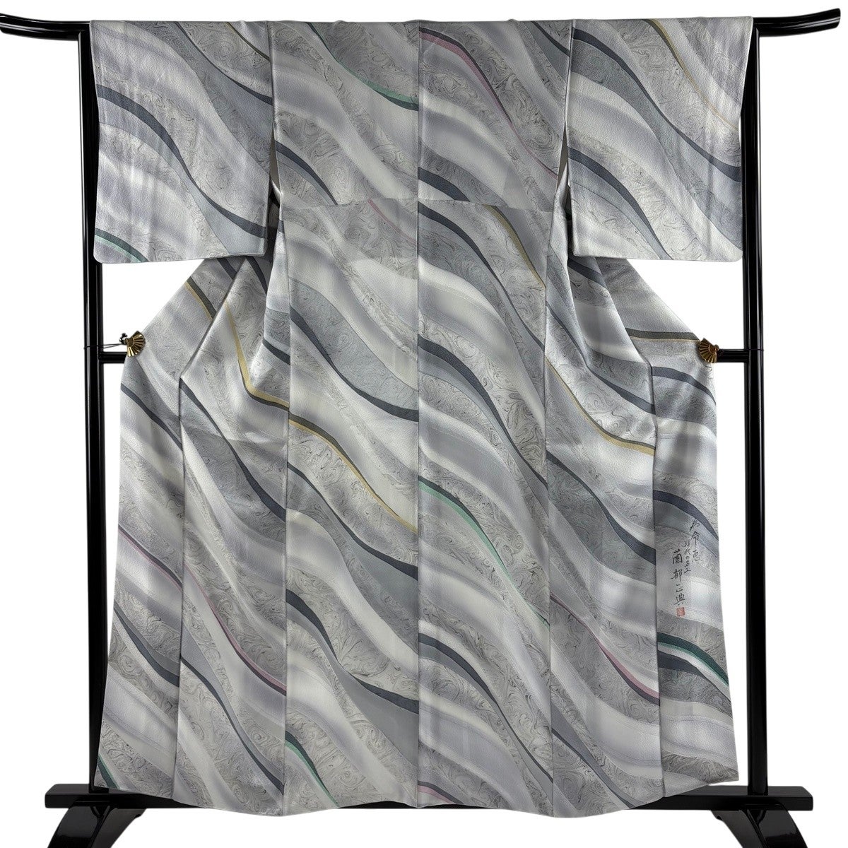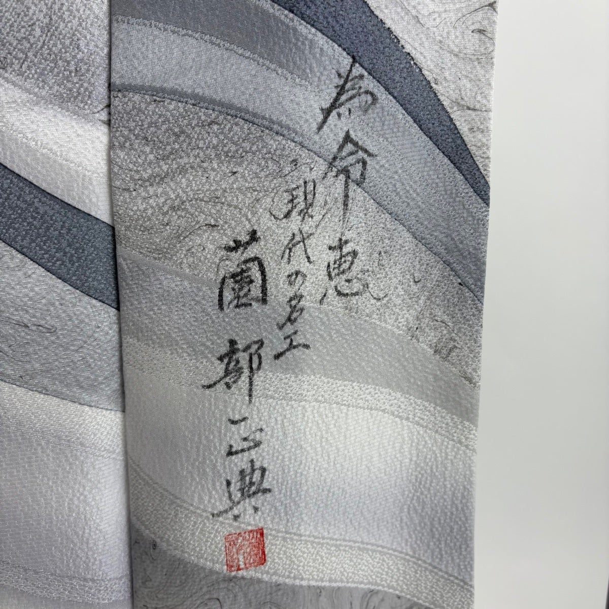 【美品】 小紋 身丈164cm 裄丈69cm L 袷 落款あり 幾何学 ぼかし 灰色 正絹 名品