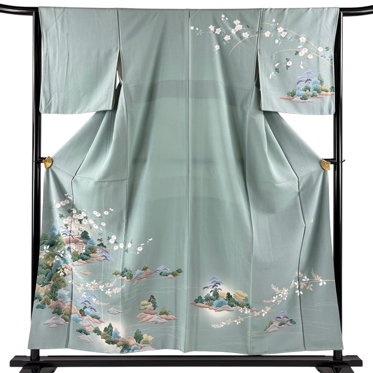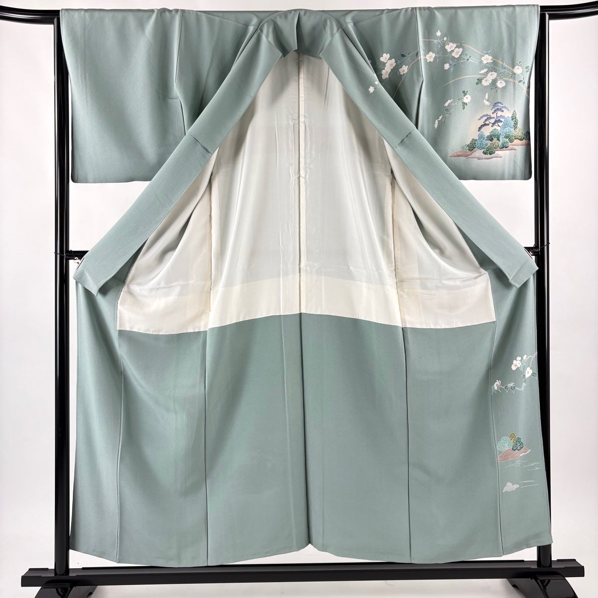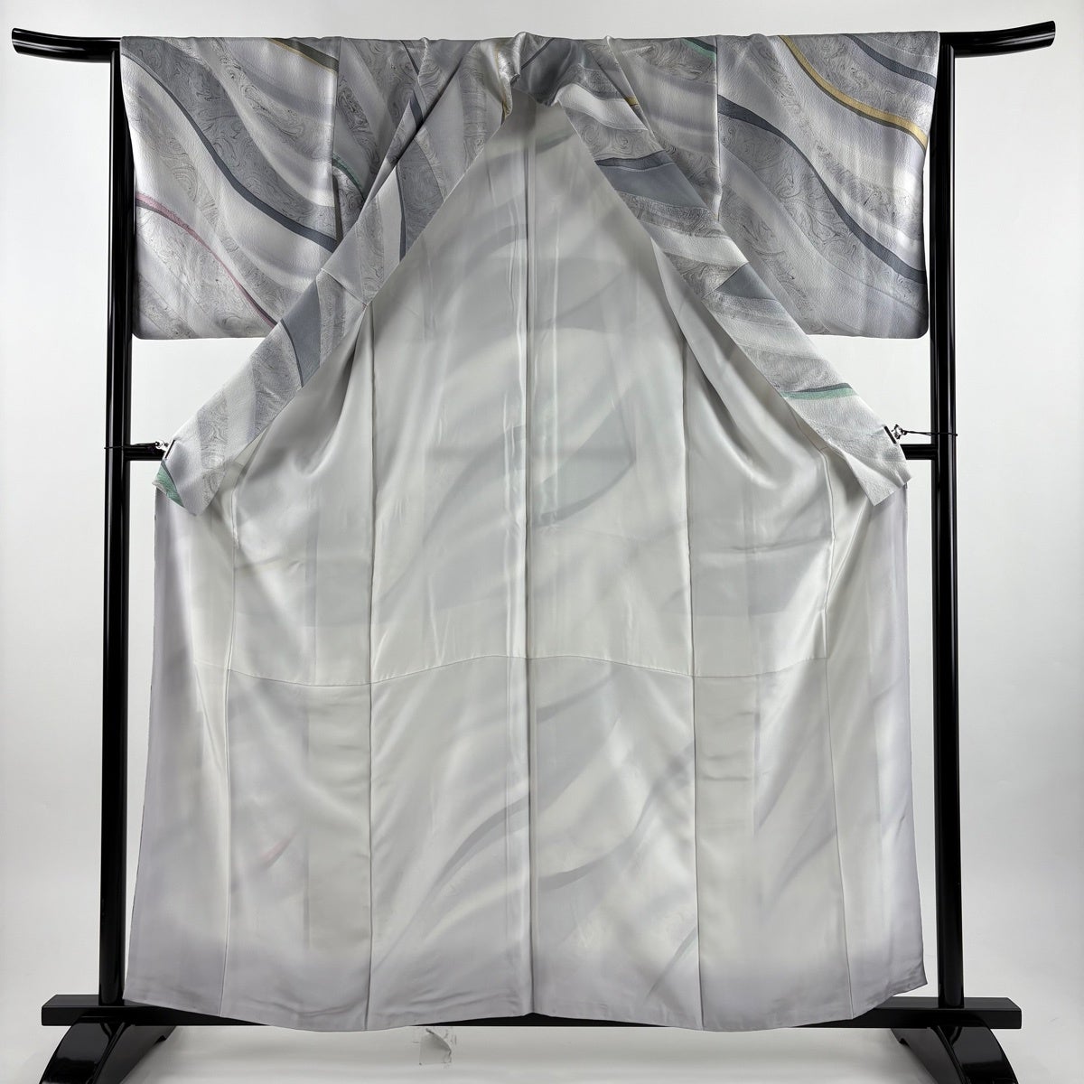振袖 身丈166cm 裄丈67.5cm L 袷 落款あり 辻が花 銀通し ぼかし 薄青緑 正絹 名品