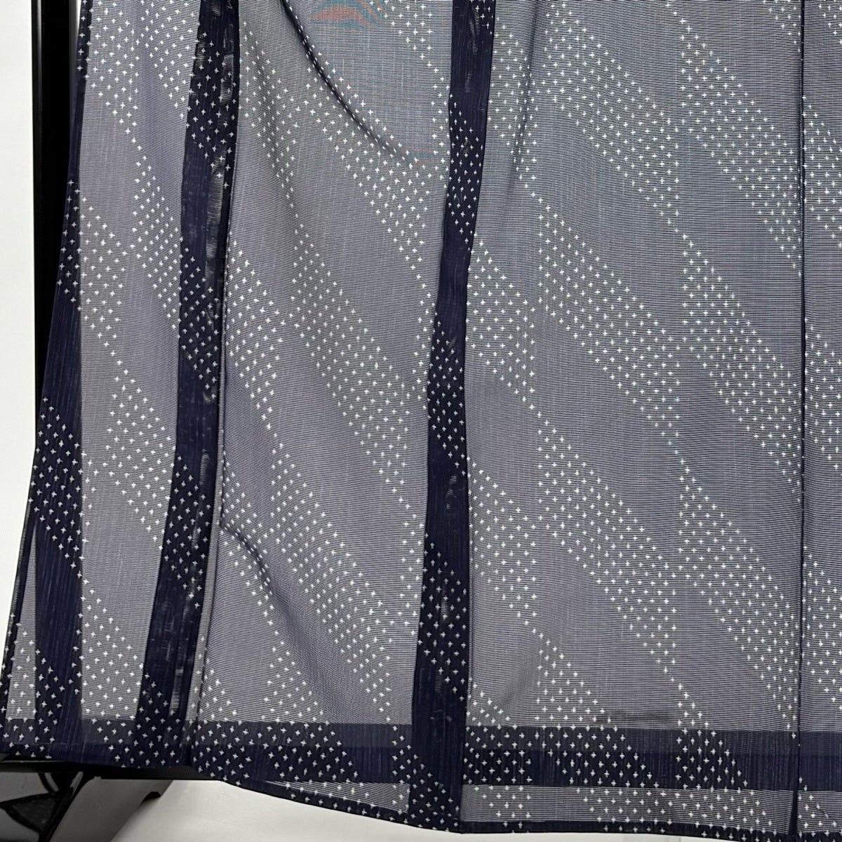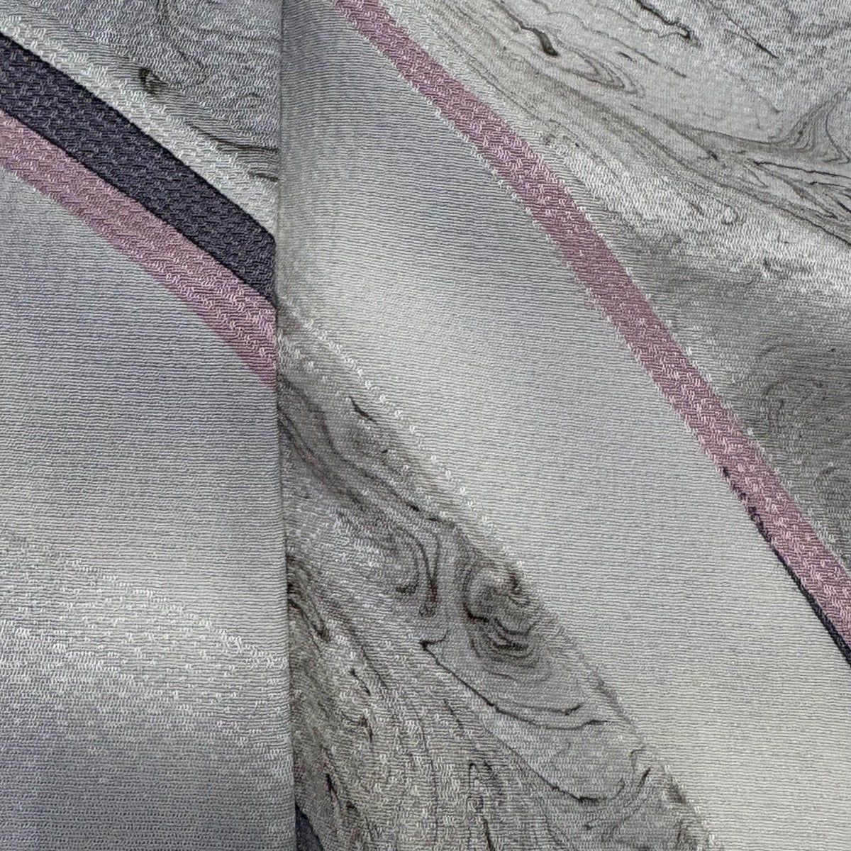 【美品】 小紋 身丈159cm 裄丈68cm L 袷 段縞 幾何学 灰色 正絹 名品