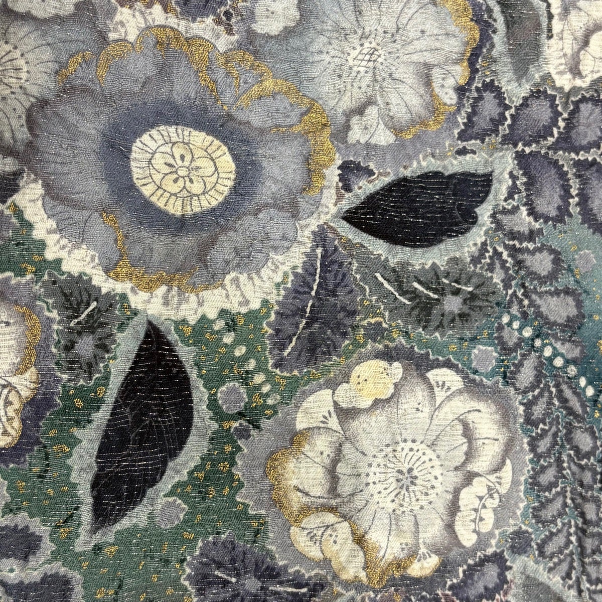 訪問着 身丈174cm 裄丈70cm L 袷 翠山工房 落款あり 辻が花 銀通し 金彩 青灰色 正絹 名品