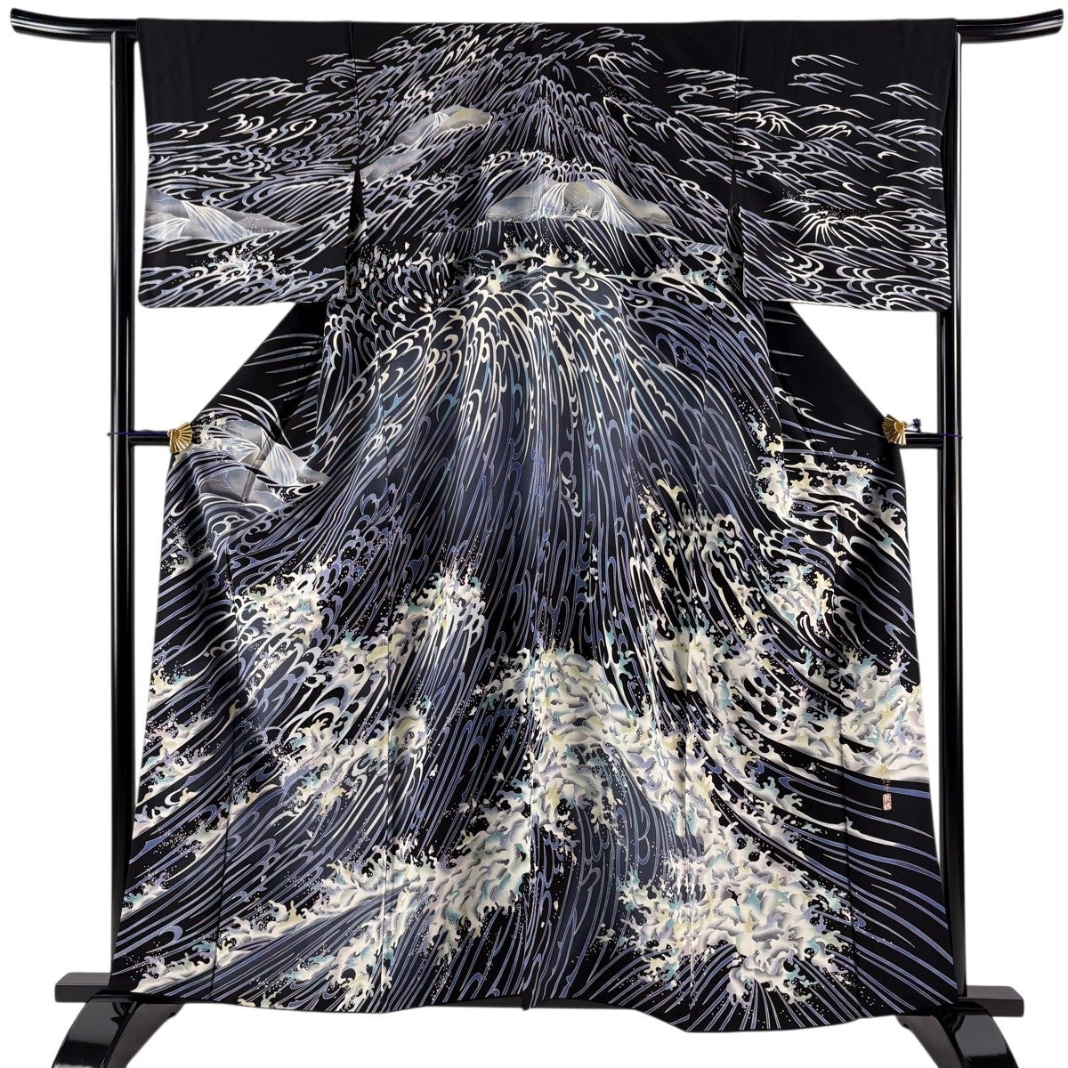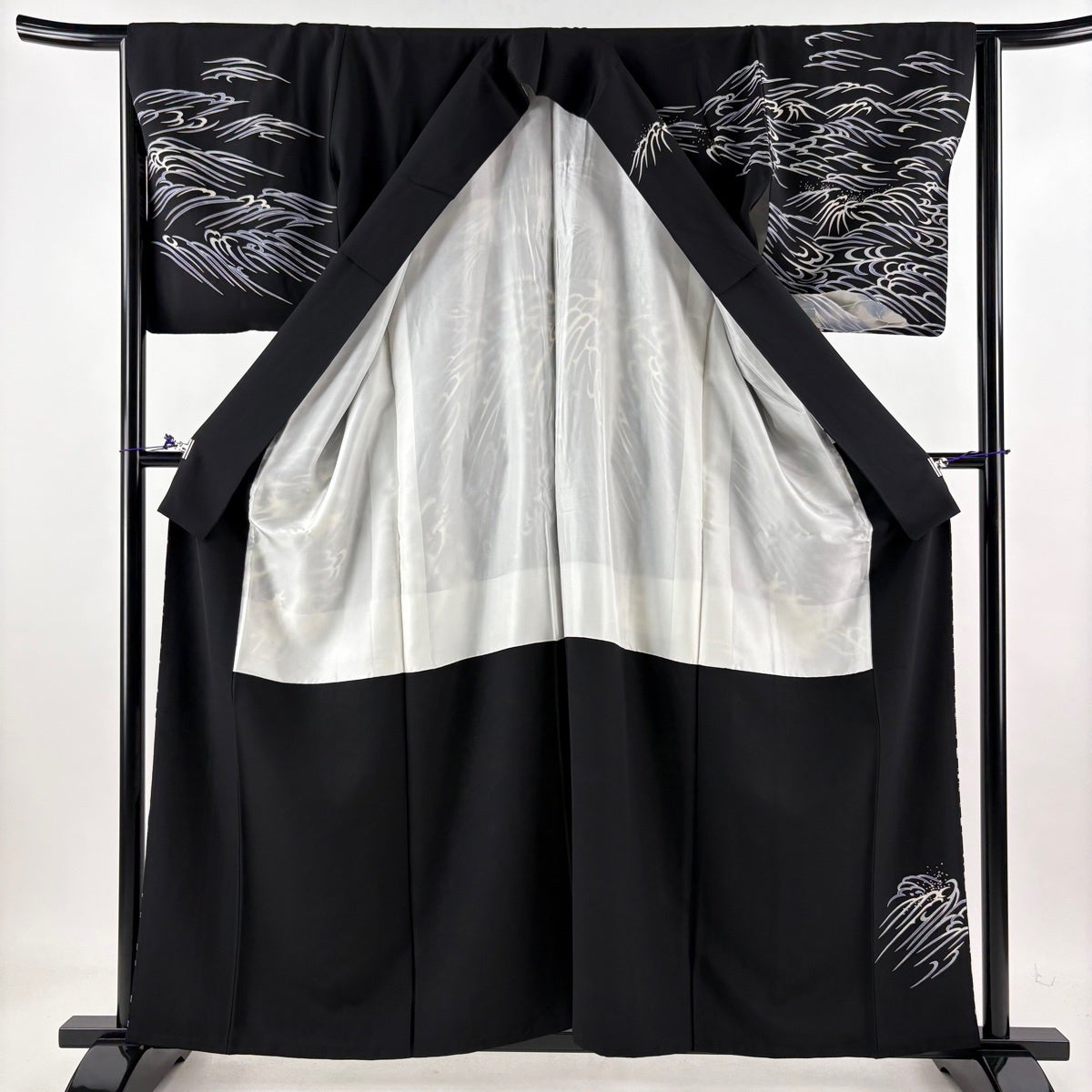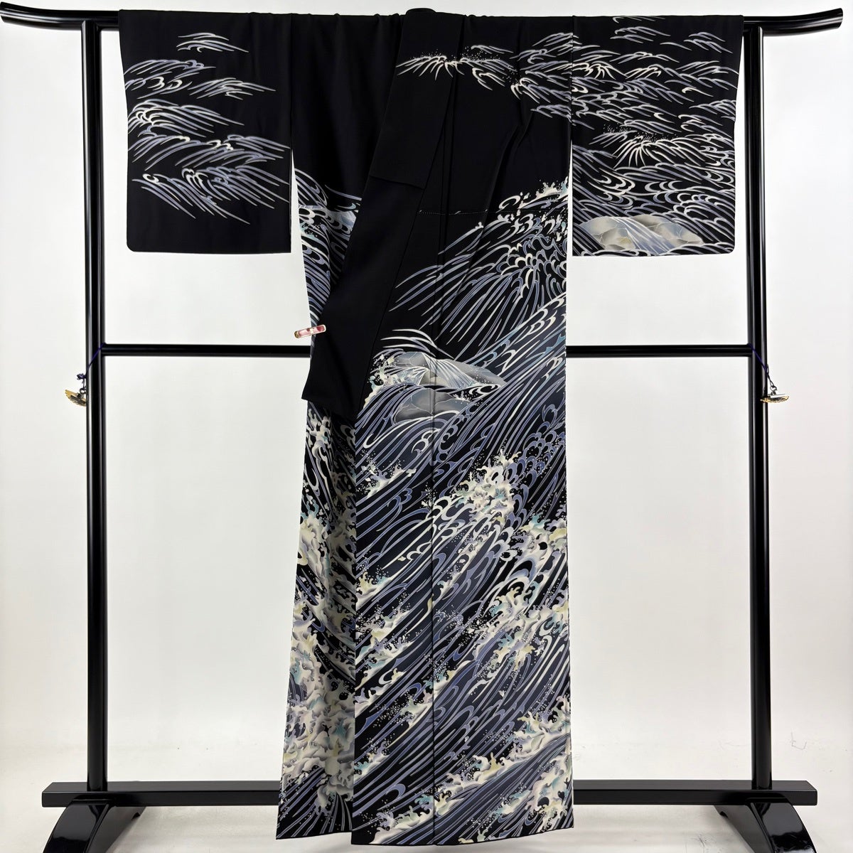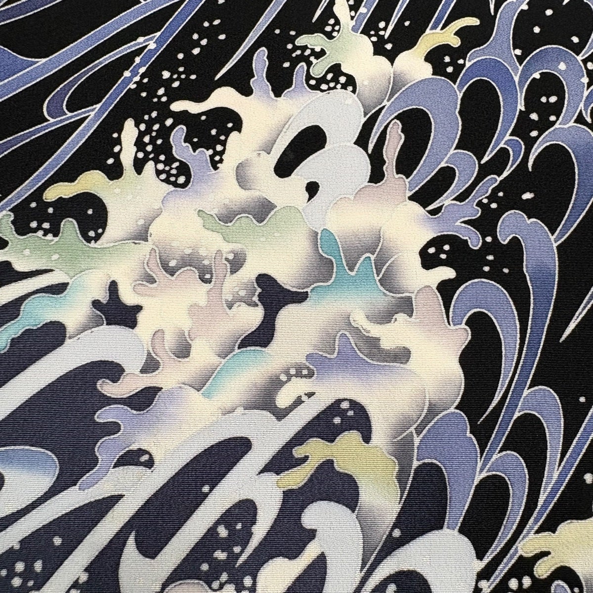 浴衣 身丈145cm 裄丈62cm S 絞り浴衣 波頭 黒 綿 名品