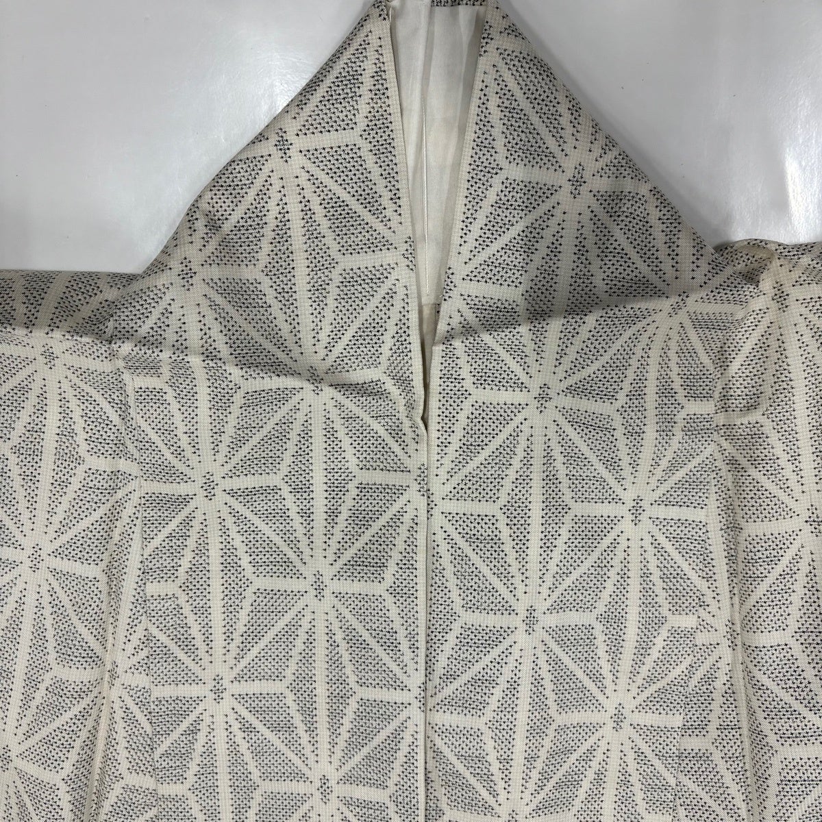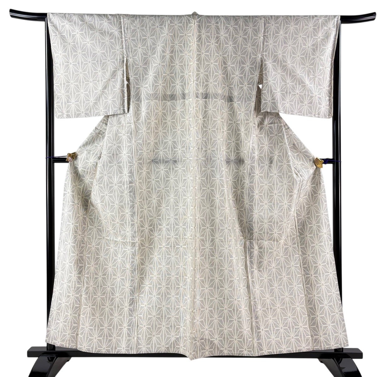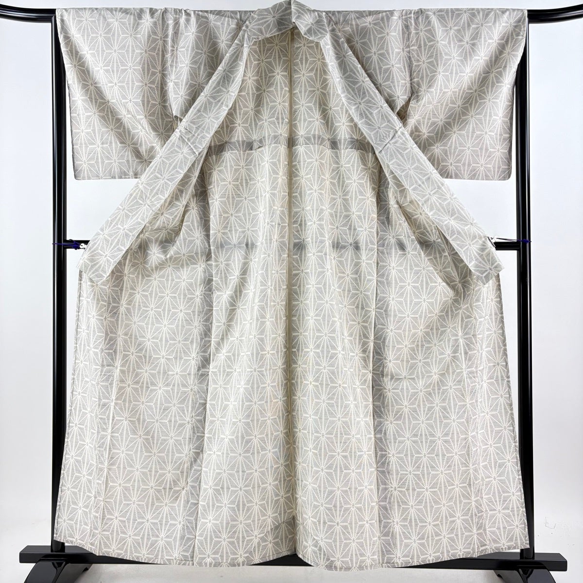 紬 身丈152.5cm 裄丈63cm S 薄物 夏紬 井桁 流水 クリーム 正絹 逸品