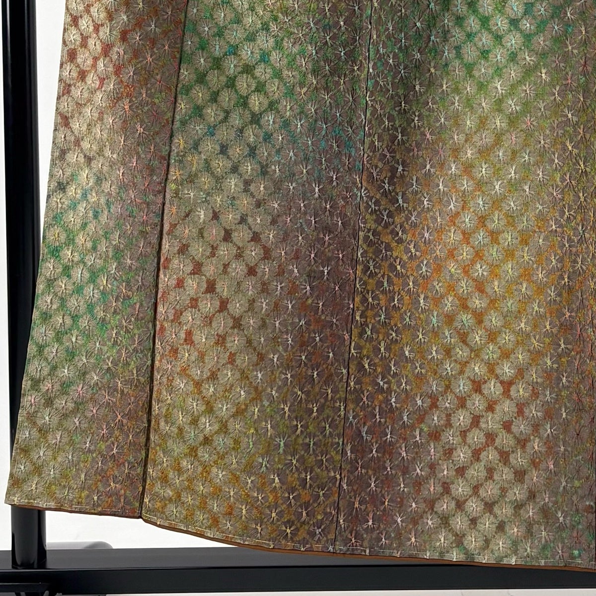 小紋 身丈169.5cm 裄丈69.5cm L 薄物 露芝 ベージュ 正絹 秀品
