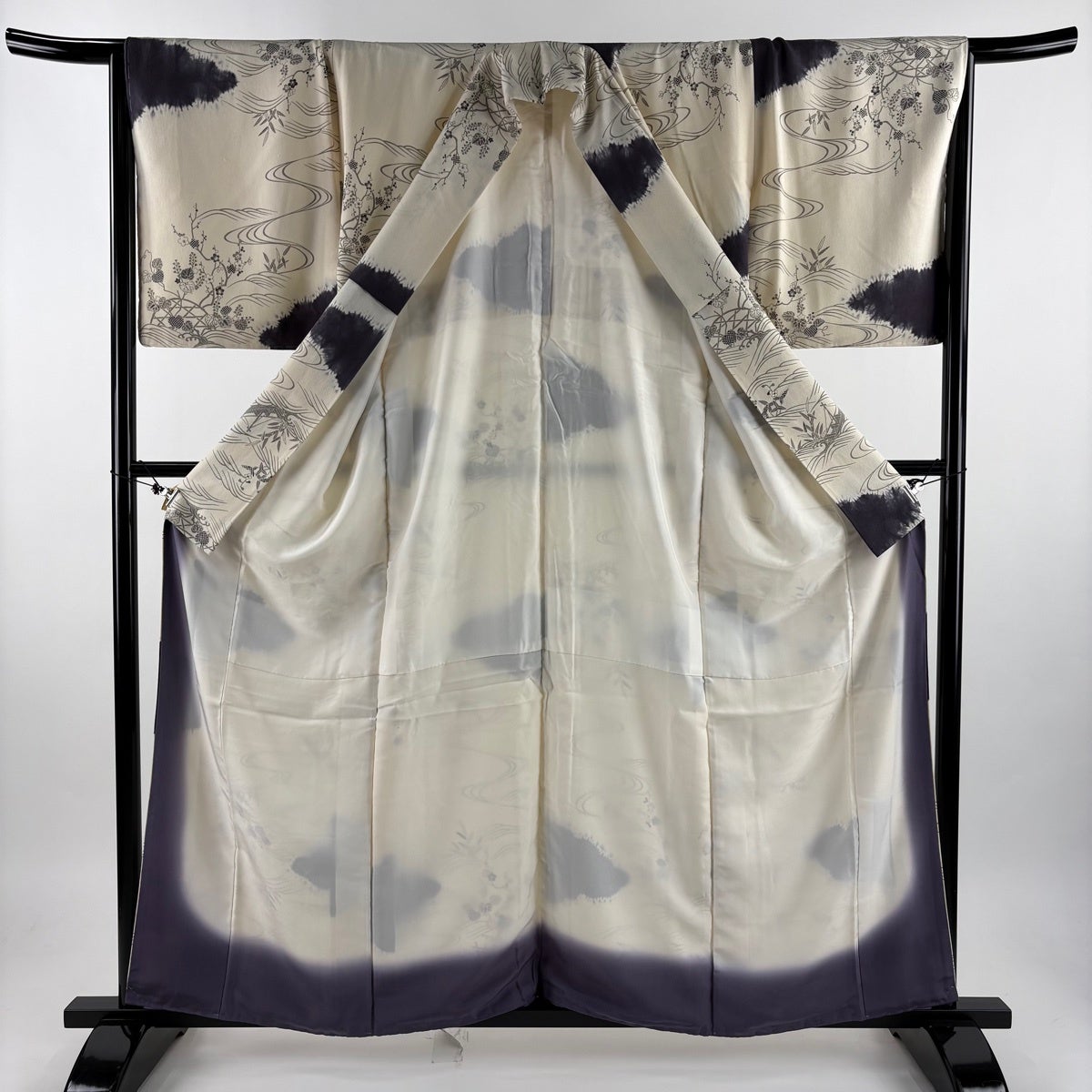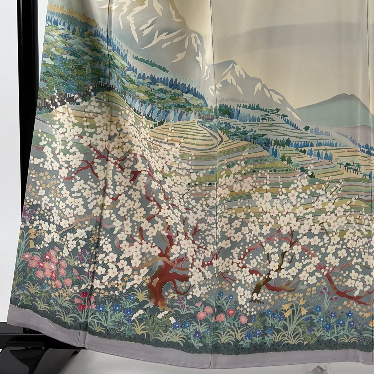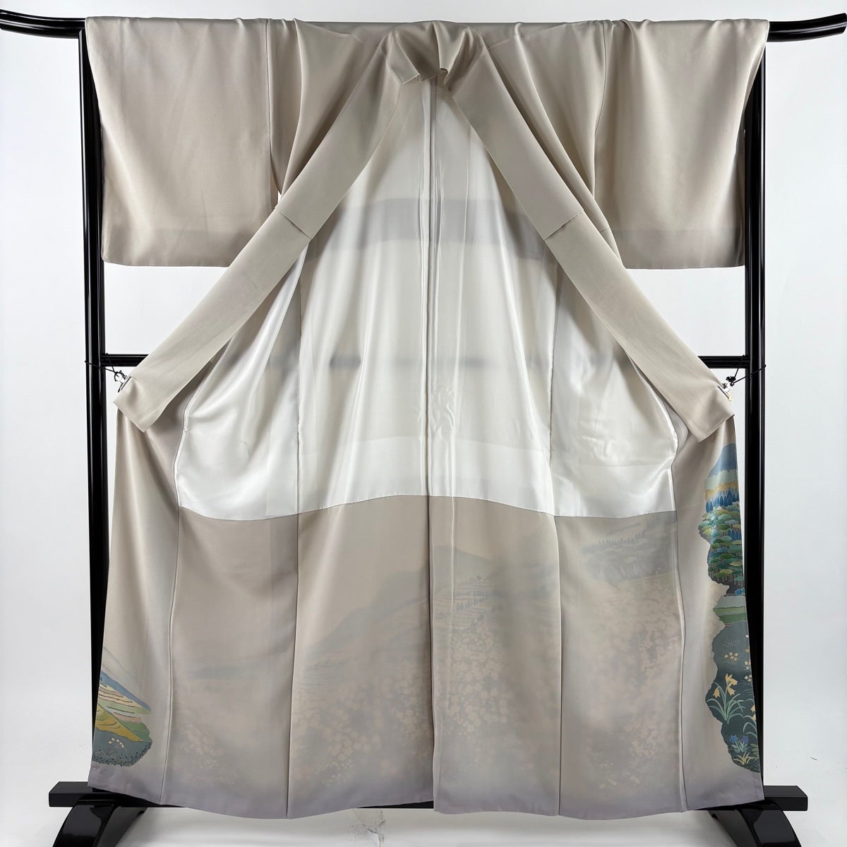 色留袖 身丈160cm 裄丈68cm L 袷 加賀友禅 落款あり 証紙あり 枝梅 風景 灰茶 正絹 名品 一つ紋