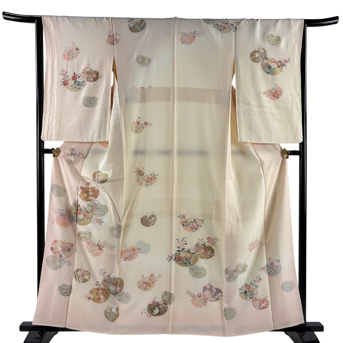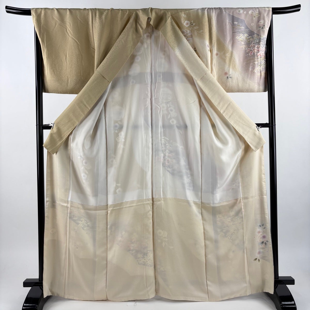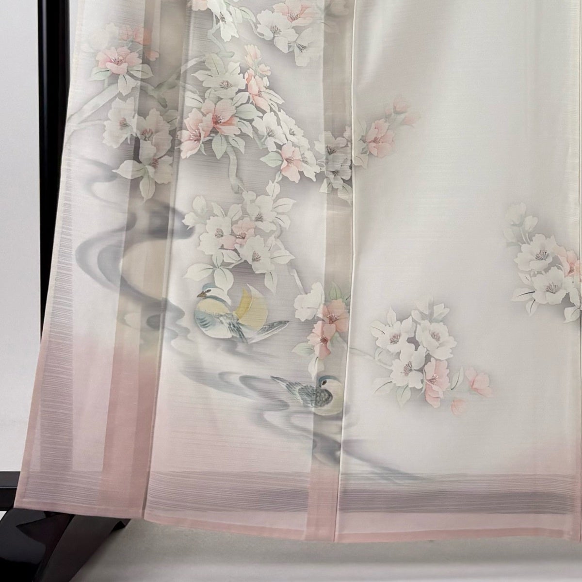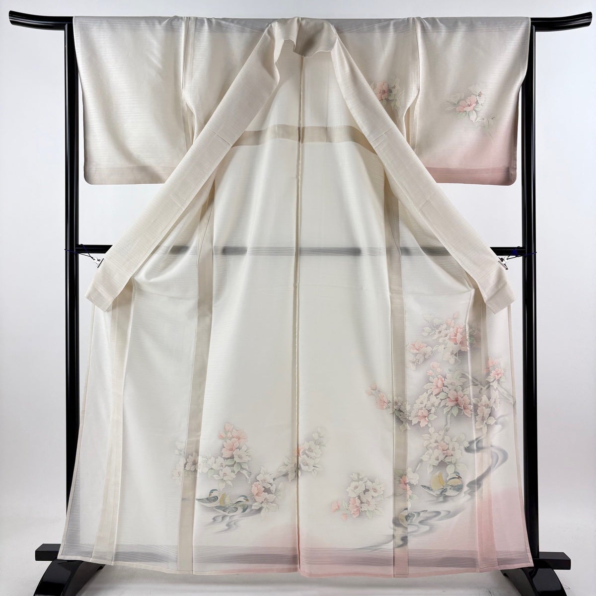【美品】 付下げ 身丈164.5cm 裄丈65cm M 薄物 落款あり 鴛鴦 枝花 ぼかし クリーム 正絹 秀品