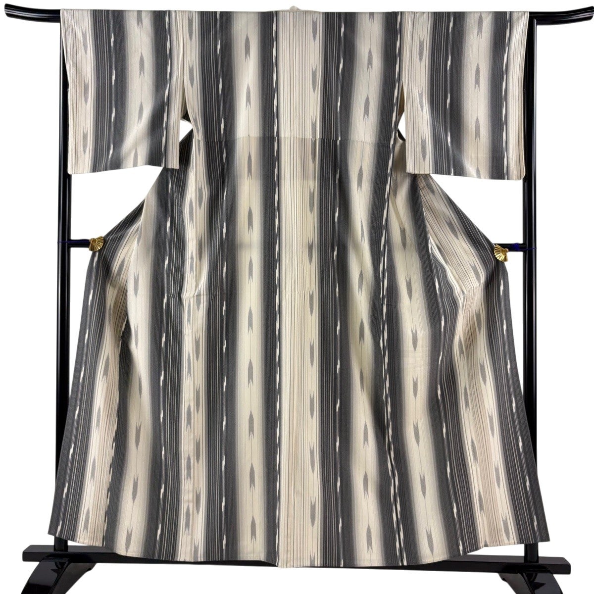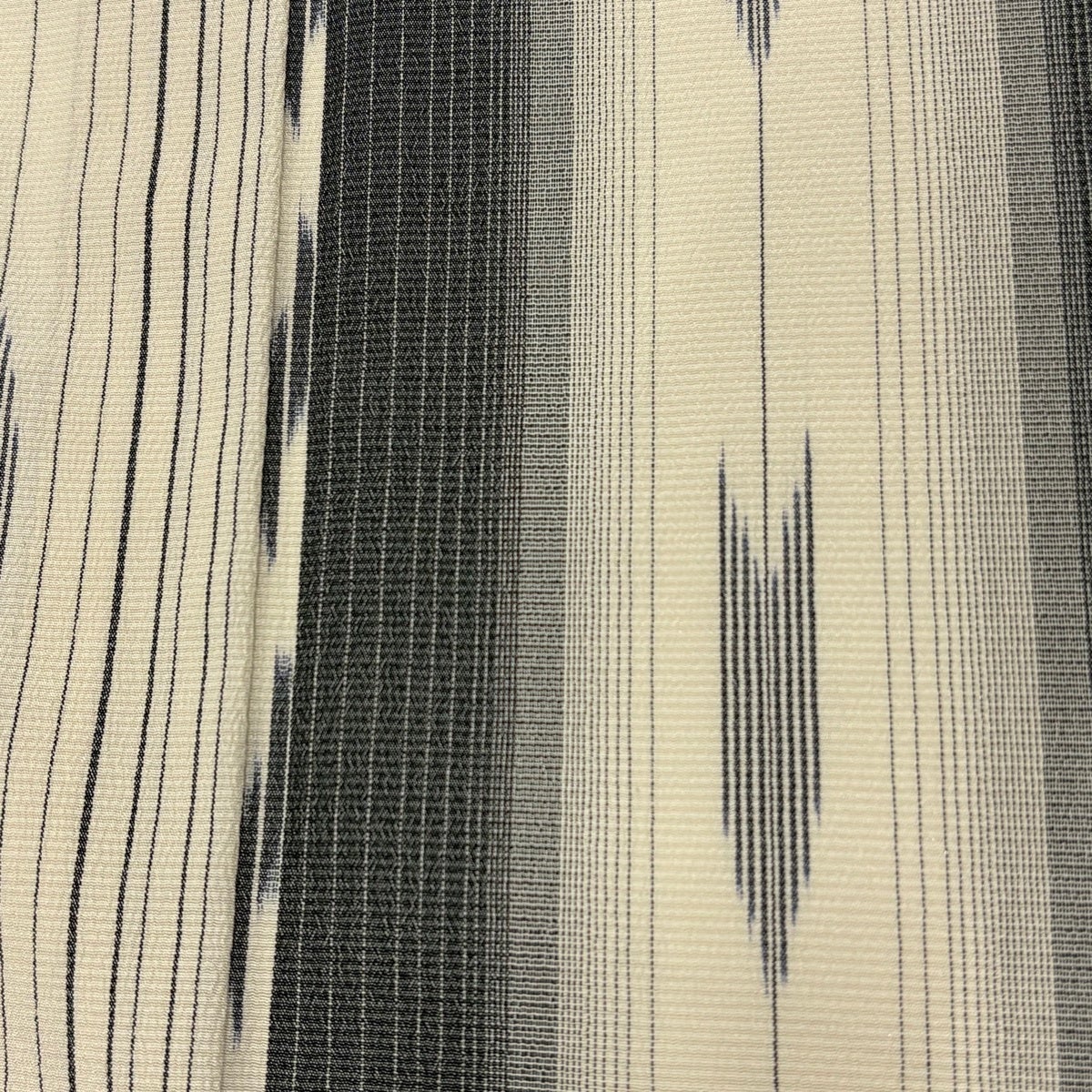 【美品】 紬 身丈158cm 裄丈65cm M 単衣 縞 矢羽 クリーム 正絹 秀品