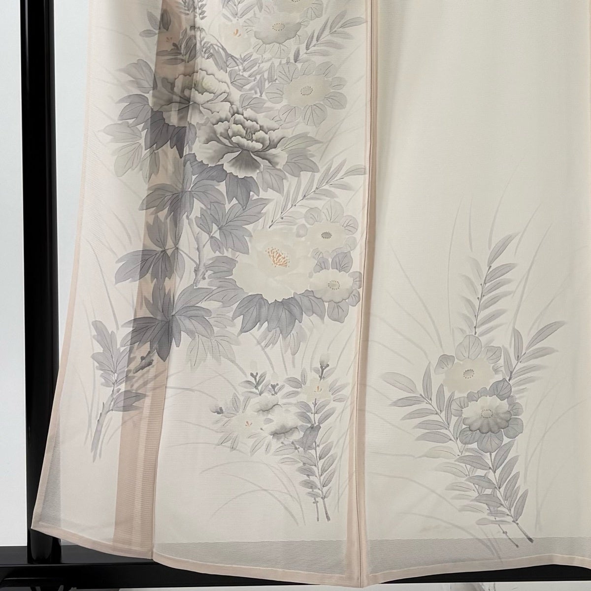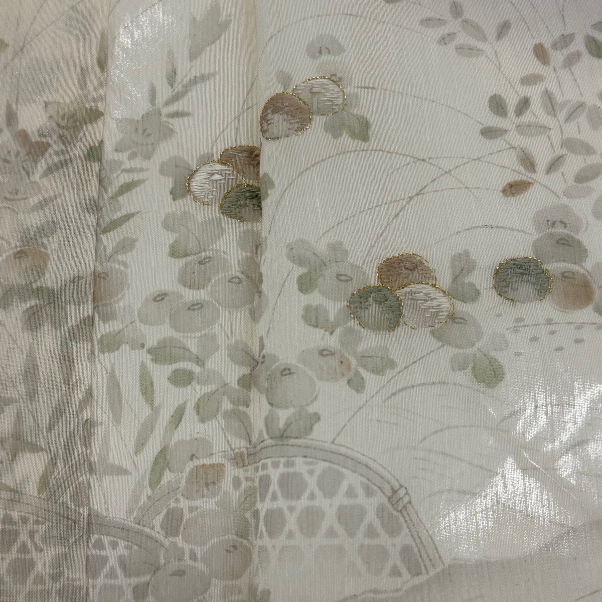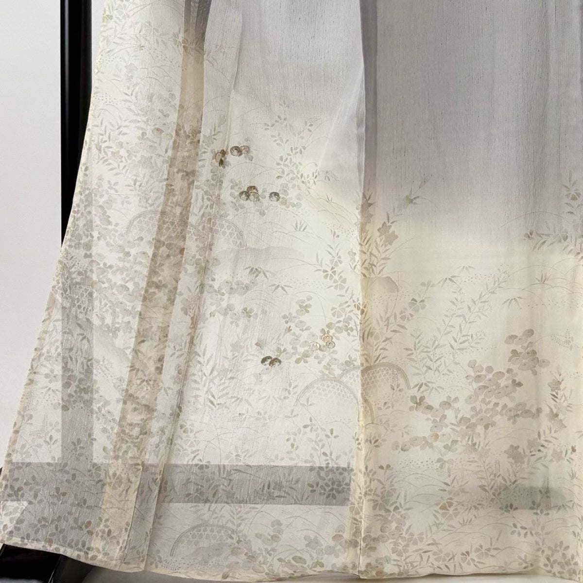 付下げ 身丈168cm 裄丈67cm M 薄物 夏紬地 秋草 光悦垣 刺繍 金糸 灰色 正絹 秀品 一つ紋
