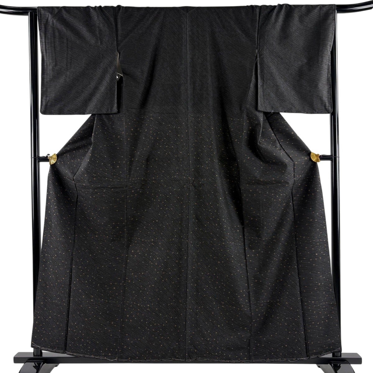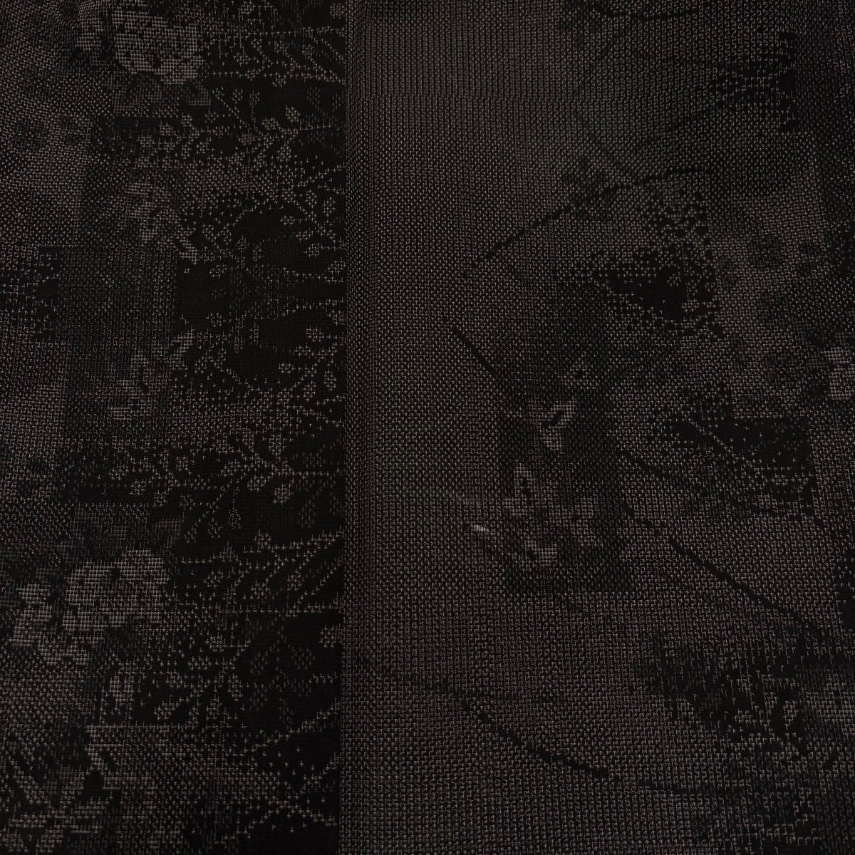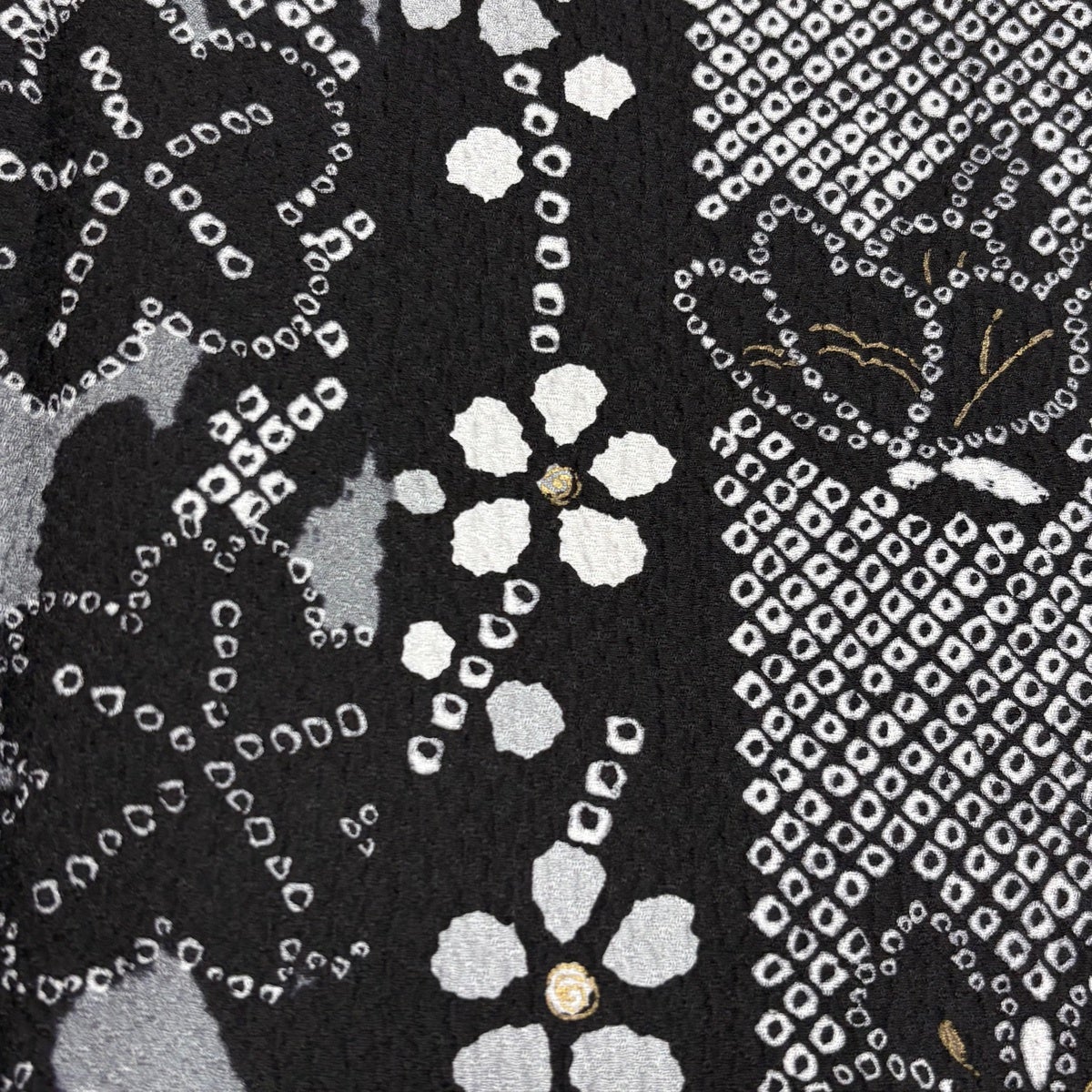【美品】 小紋 身丈160cm 裄丈68cm L 袷 草花 蝶 金彩 黒灰 正絹 秀品