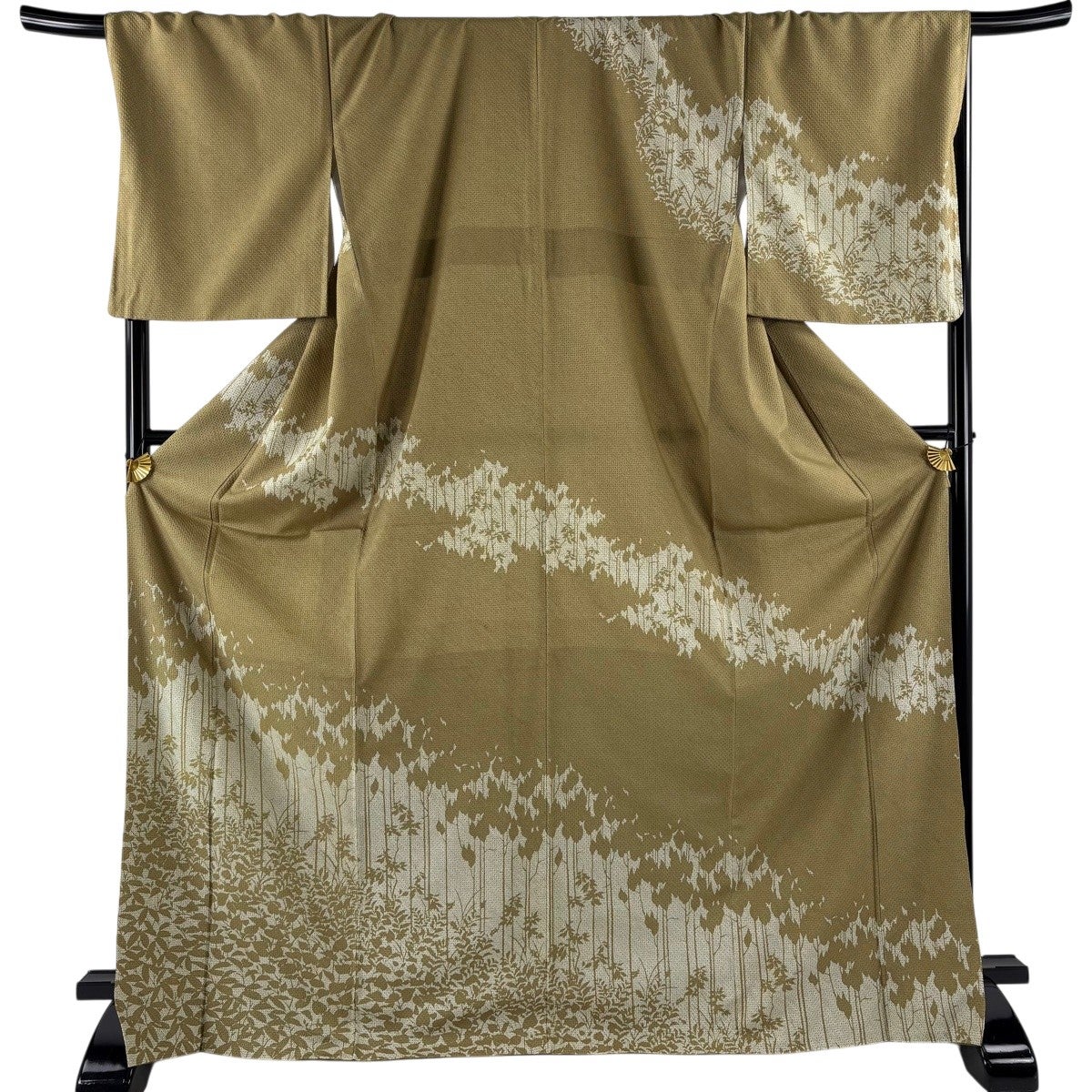 訪問着 身丈171.5cm 裄丈71cm L 袷 葉柄 シルエット 染め分け 鶯色 正絹 秀品