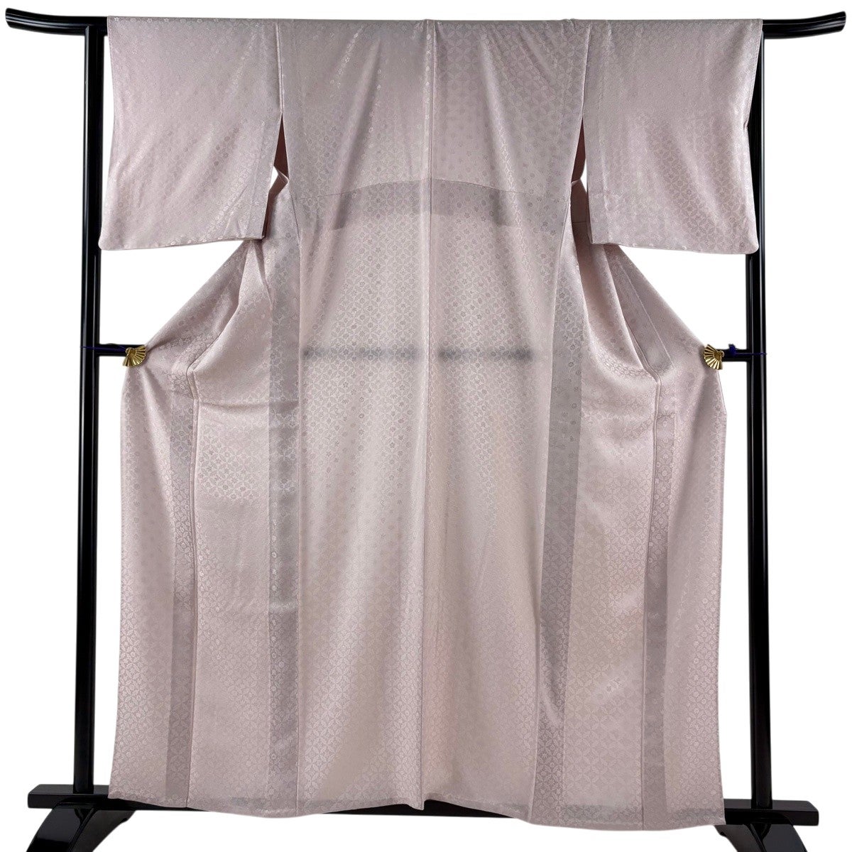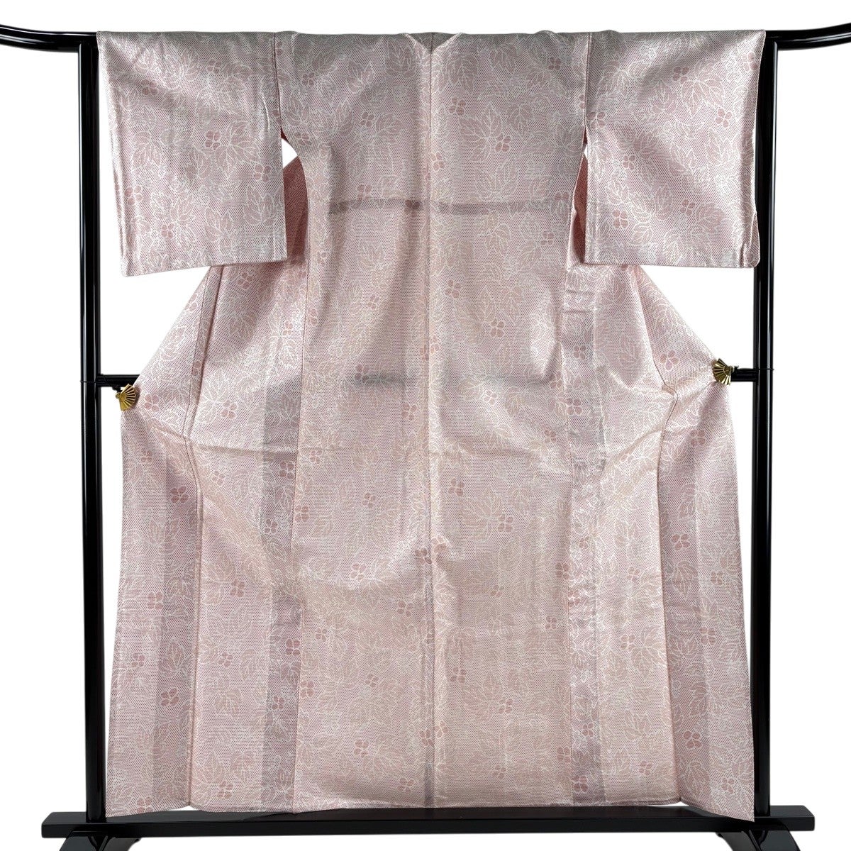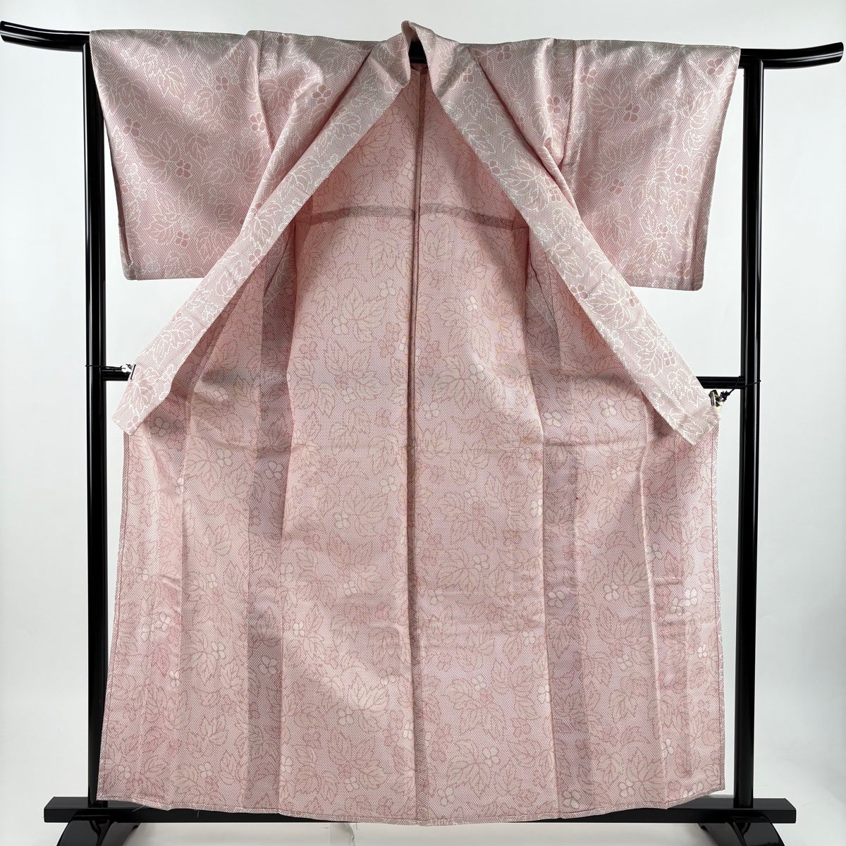 【美品】 色無地 身丈160.5cm 裄丈64cm M 単衣 地紋 薄ピンク 正絹 秀品