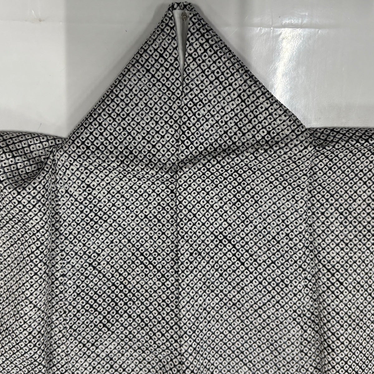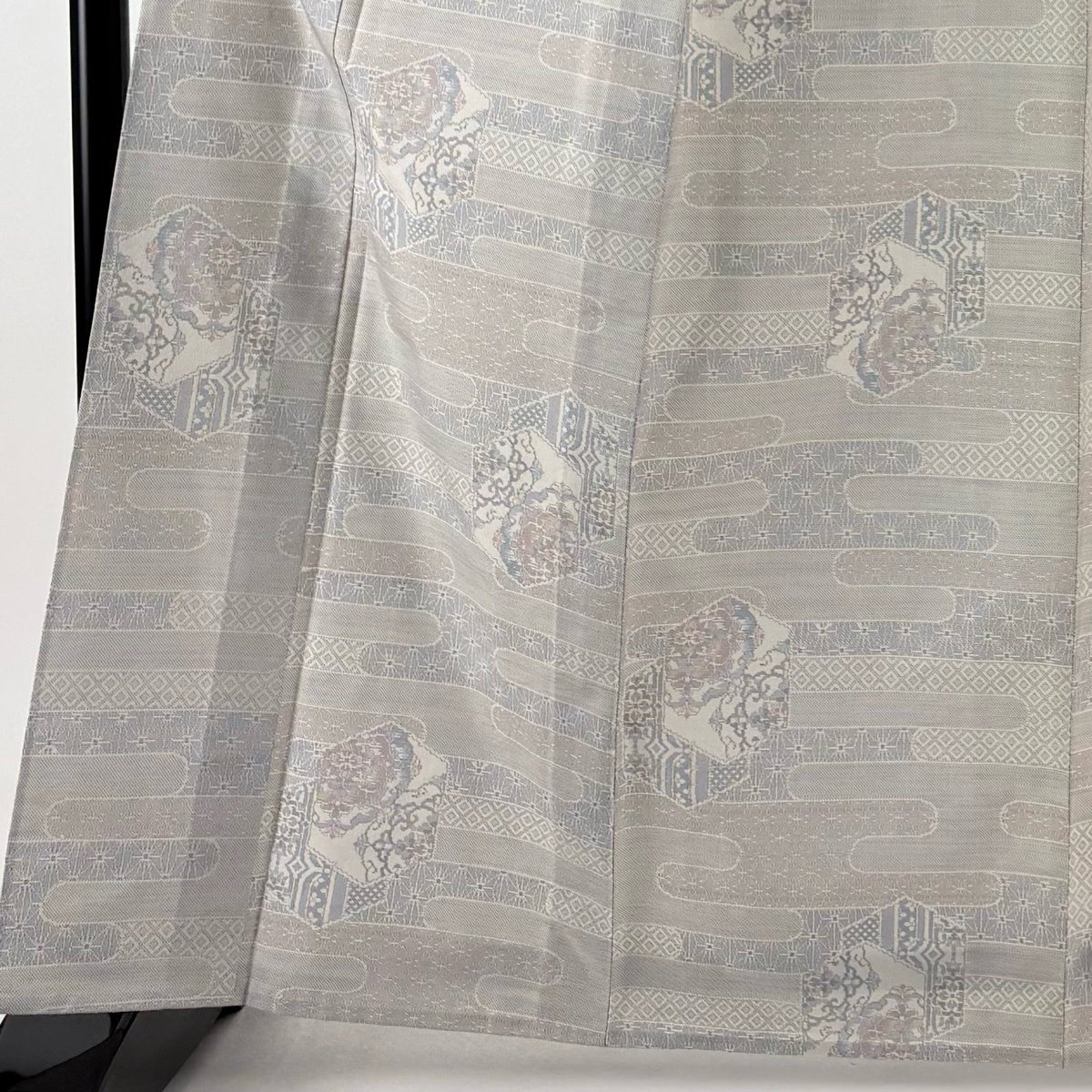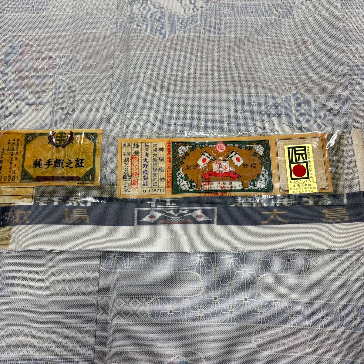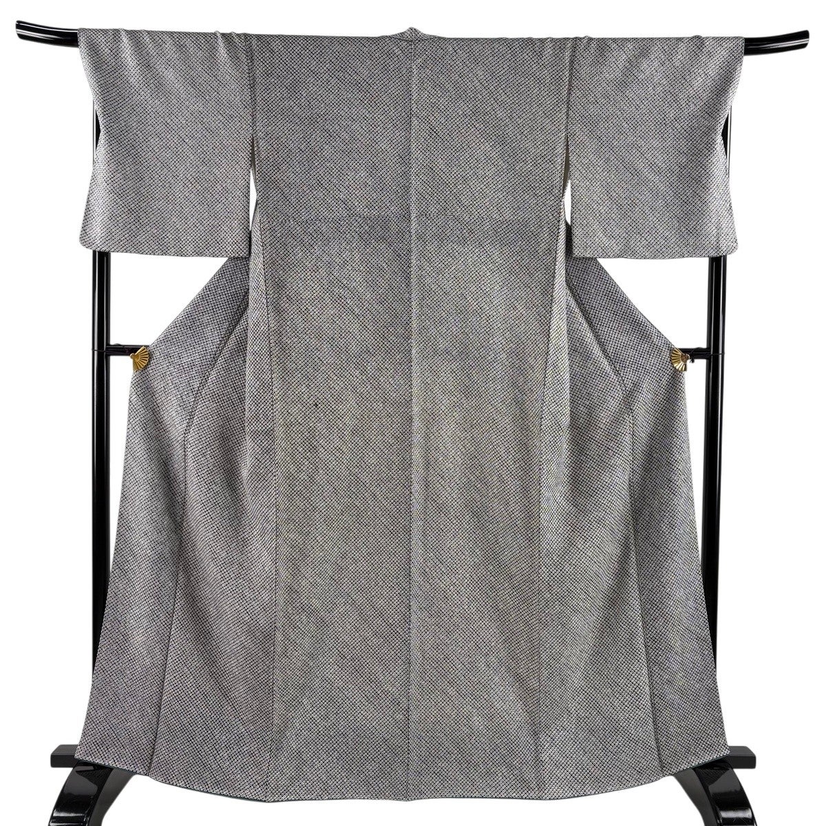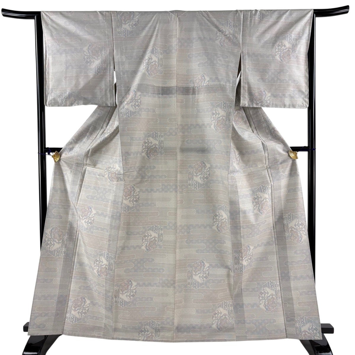 【美品】 大島紬 身丈165cm 裄丈65cm M 単衣 証紙あり ヱ霞 亀甲 灰色 正絹 秀品