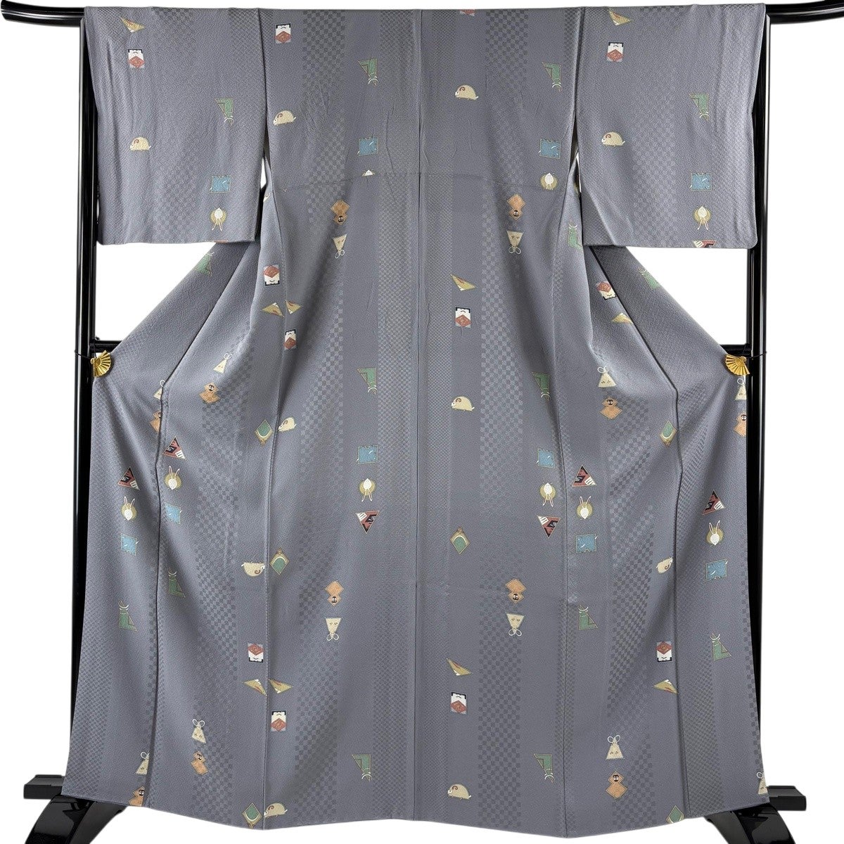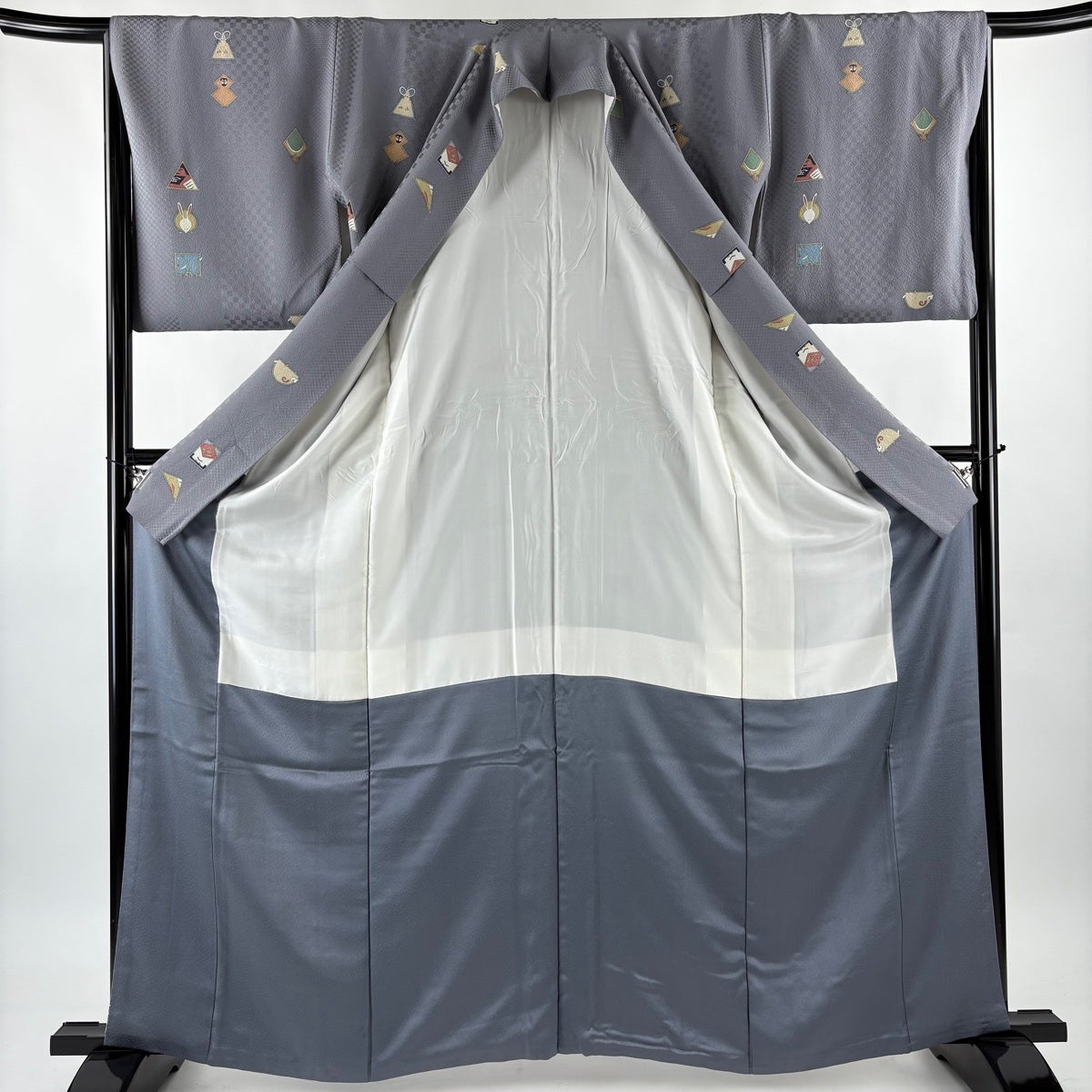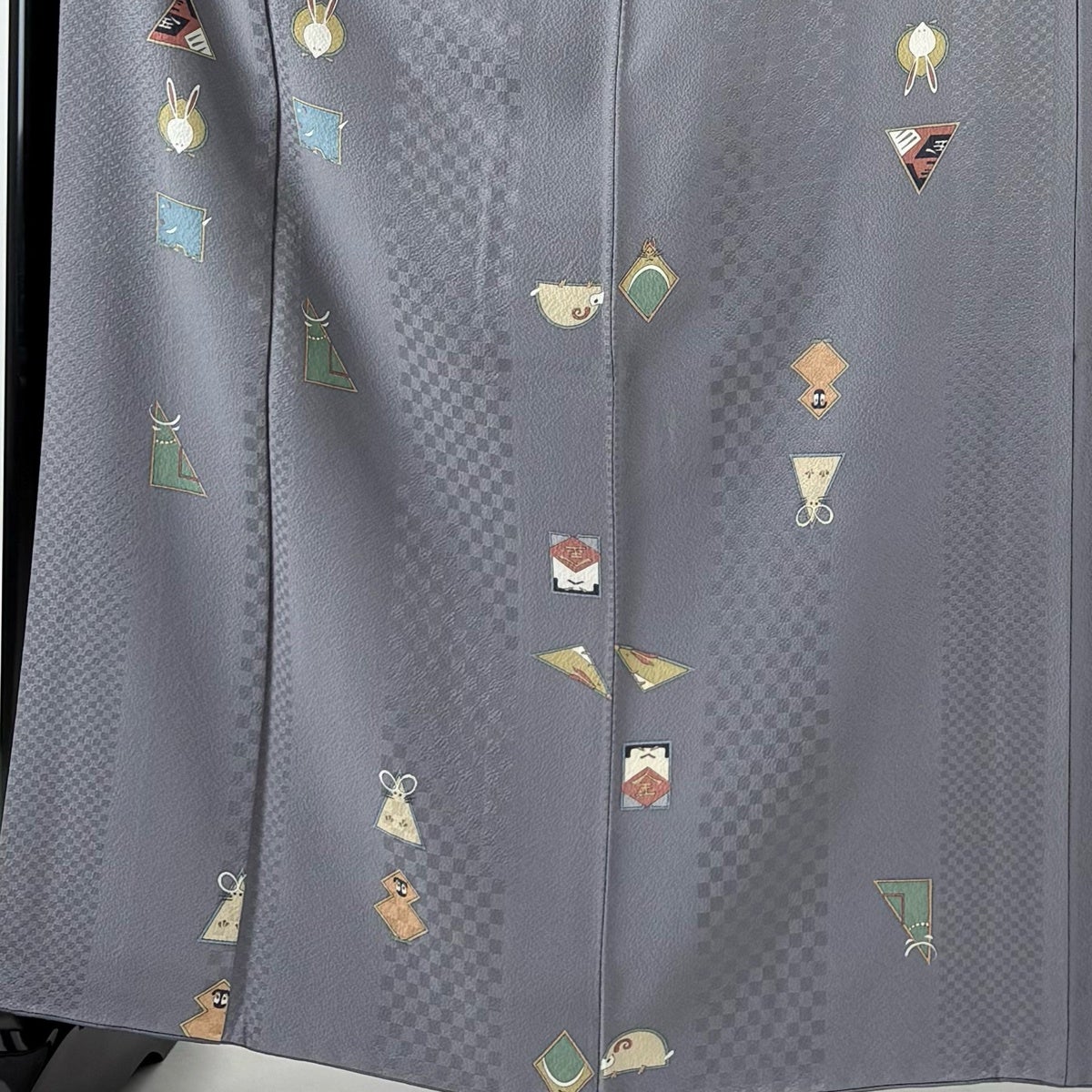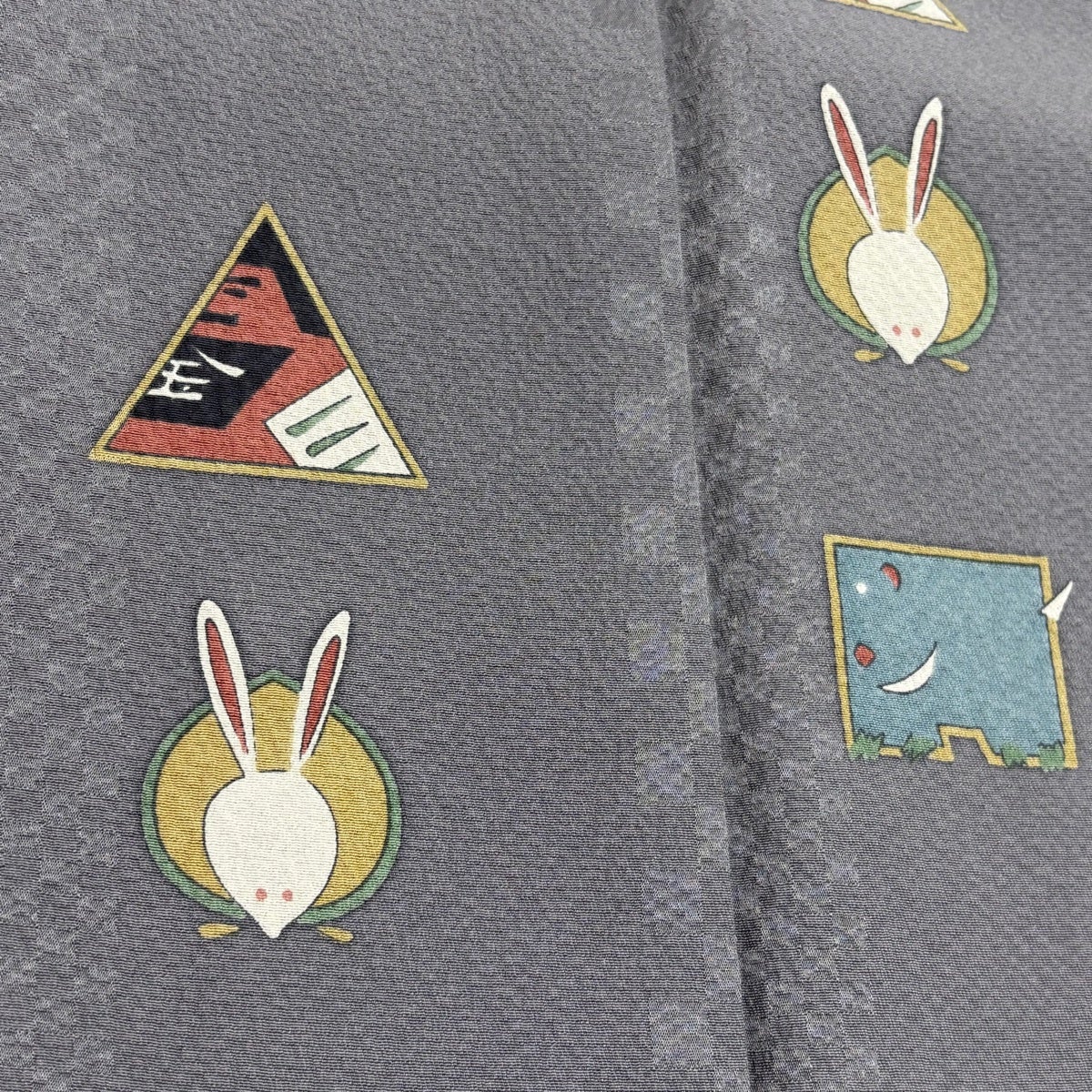 小紋 身丈163.5cm 裄丈66cm M 袷 金太郎 動物 灰色 正絹 秀品