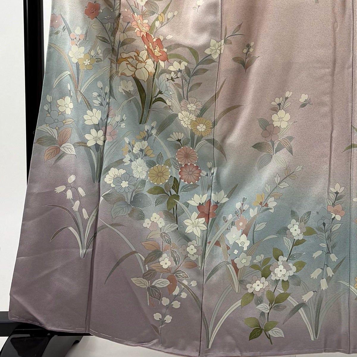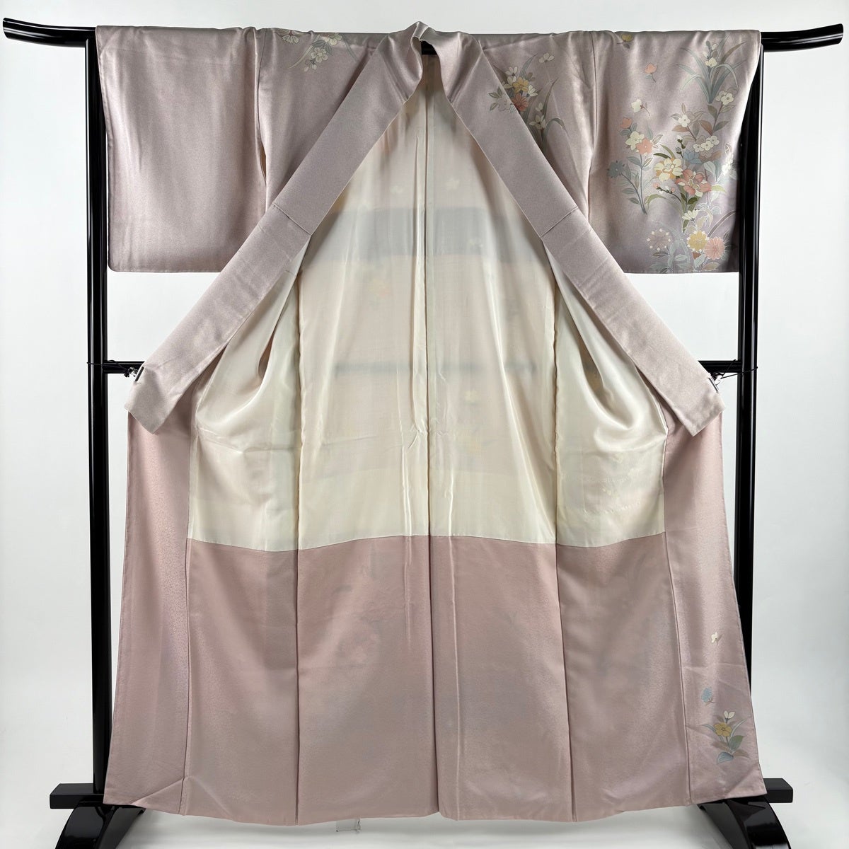 色留袖 身丈160.5cm 裄丈64.5cm M 袷 藤林徳扇 落款あり 胡蝶蘭 銀通し 金銀彩 薄紫 正絹 名品 一つ紋