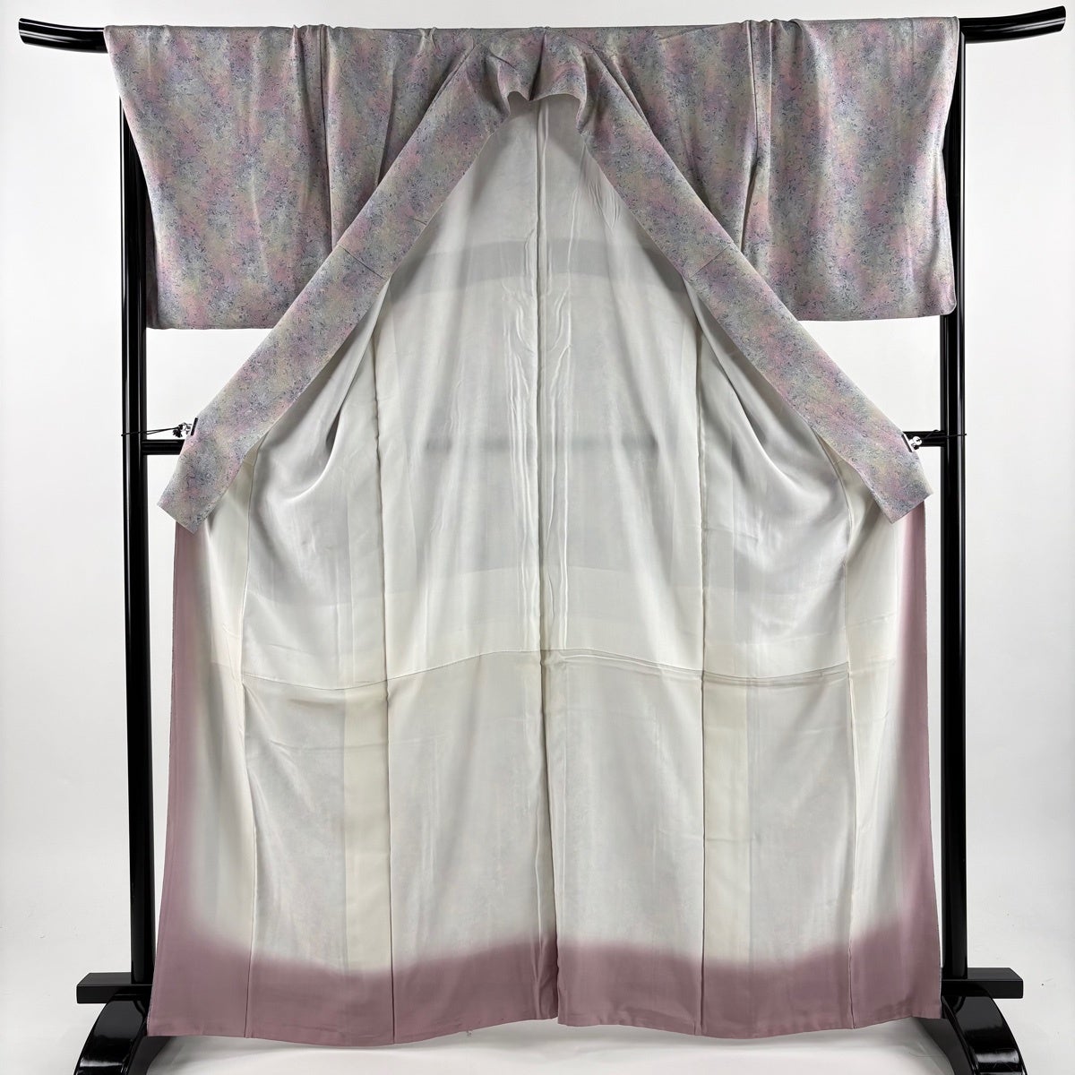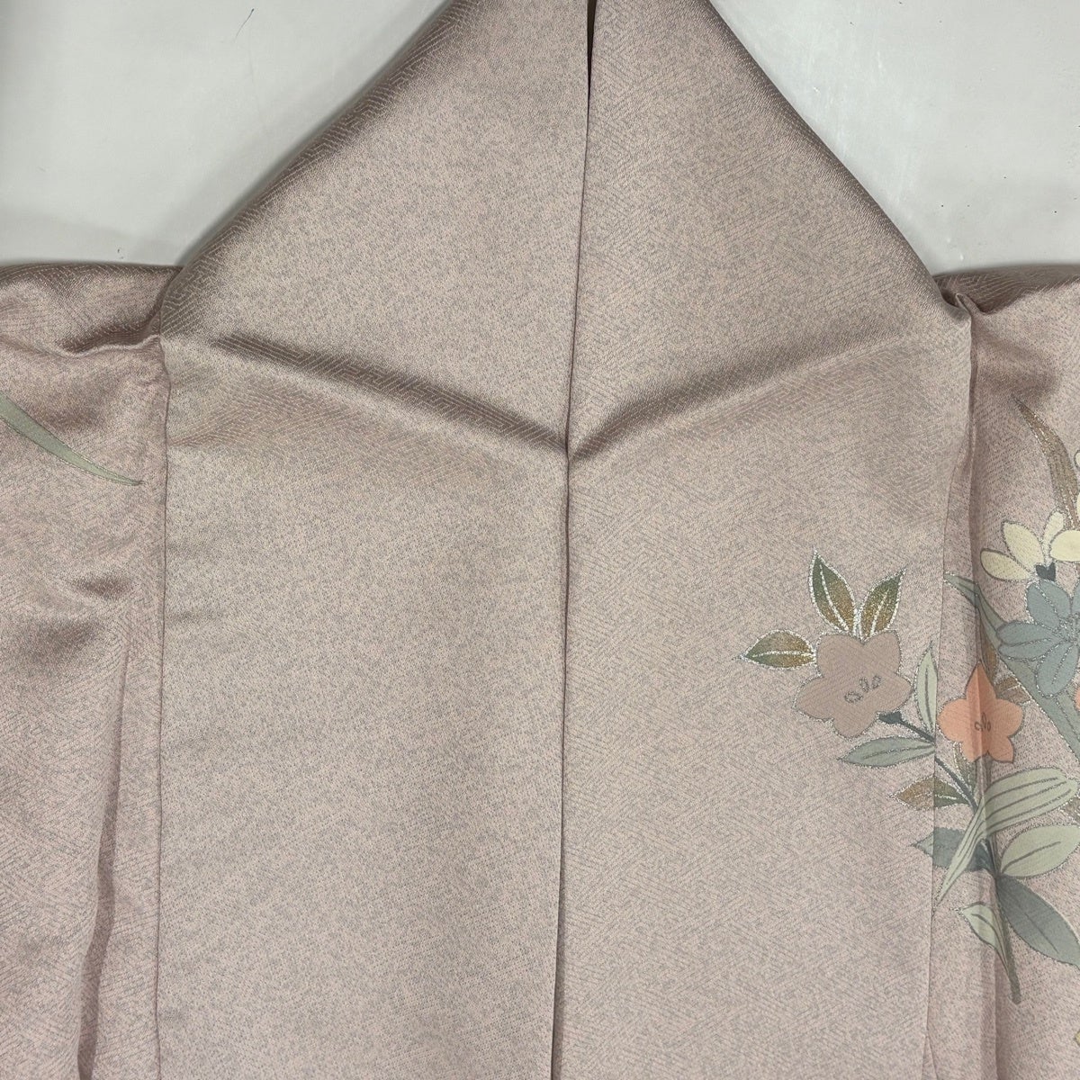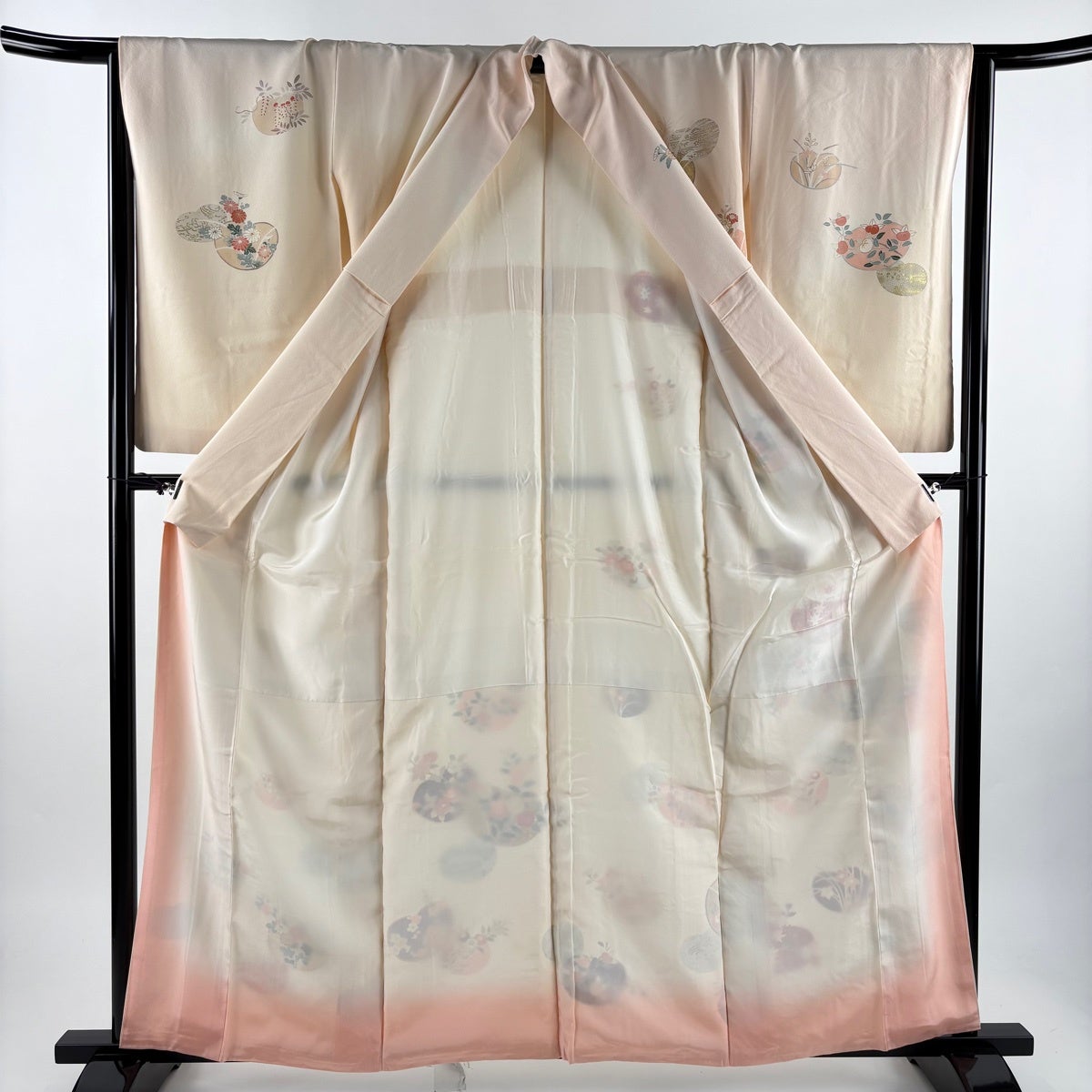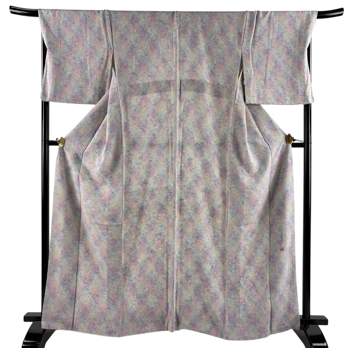 紬 身丈165cm 裄丈67.5cm L 単衣 千地泰弘 落款あり 証紙あり ぼかし柄 薄ピンク 正絹 秀品