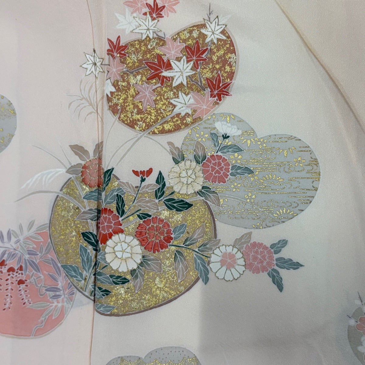 振袖 身丈165cm 裄丈66cm M 袷 花筏 蝶 金彩 ピンク 正絹 秀品