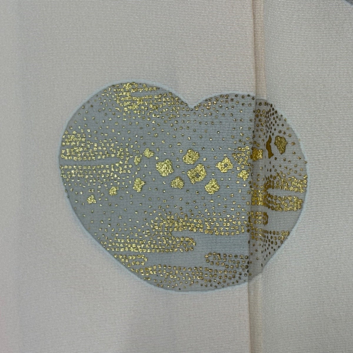 【美品】 色留袖 身丈159cm 裄丈66cm M 袷 袋帯セット 建物 樹木 刺繍 金糸 クリーム 正絹 秀品